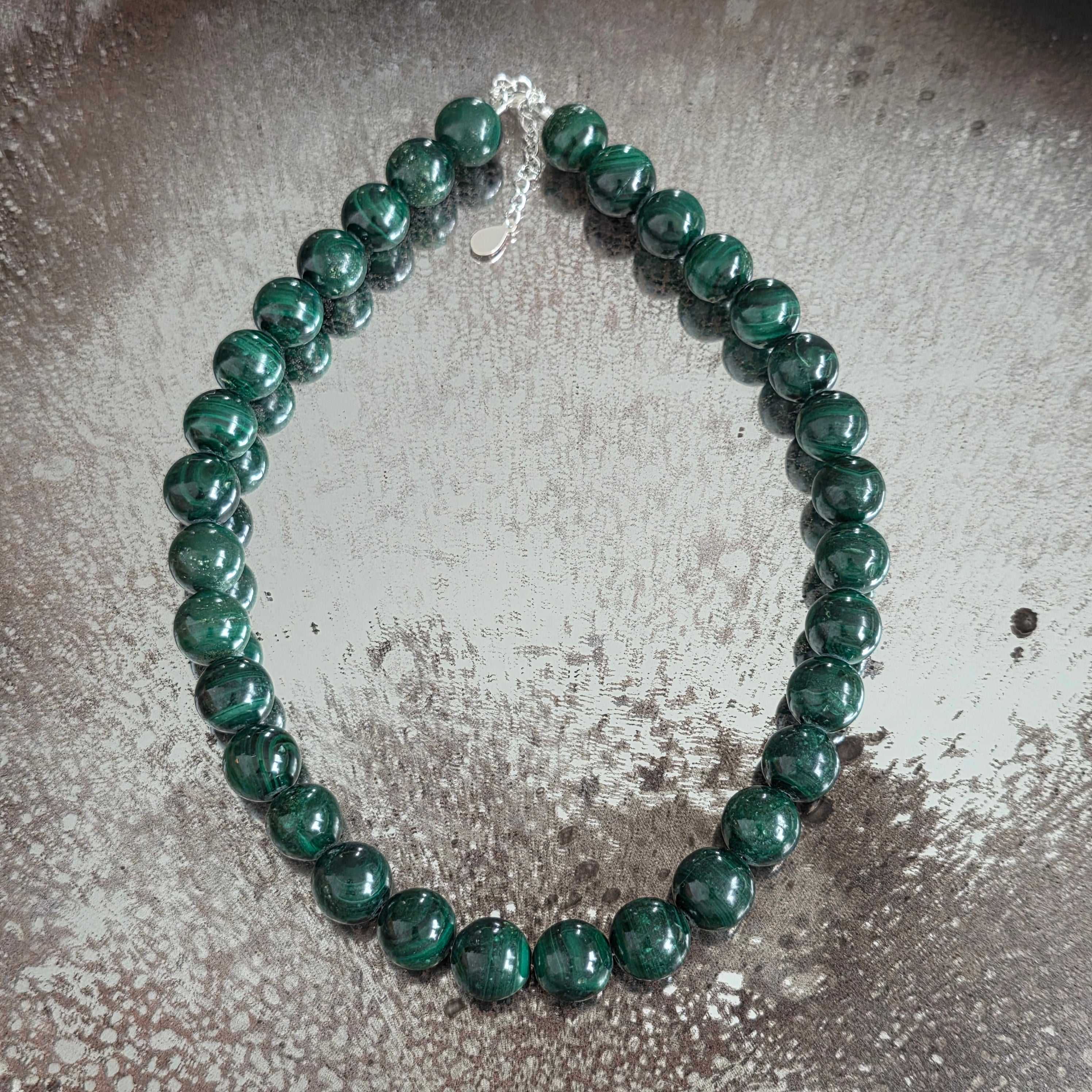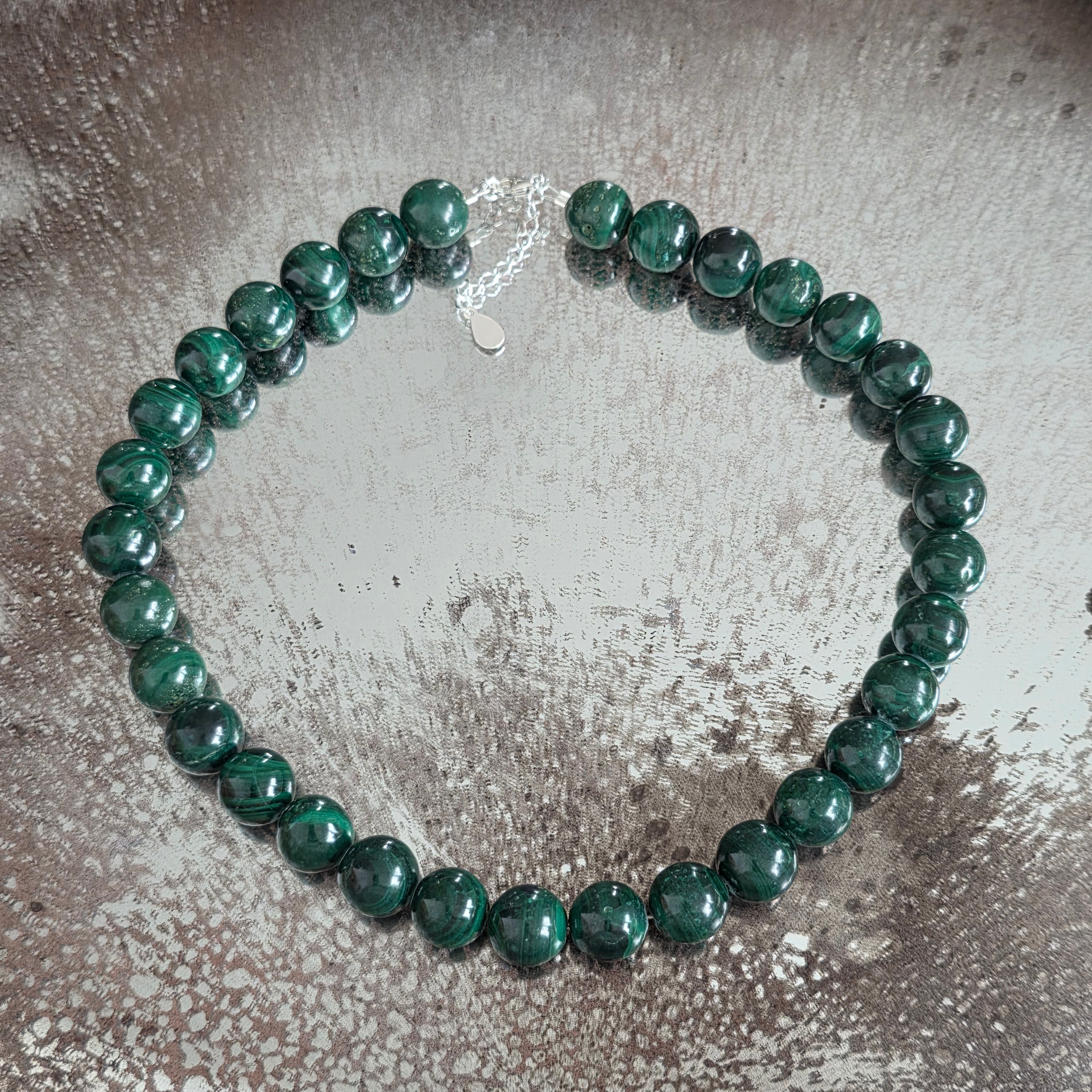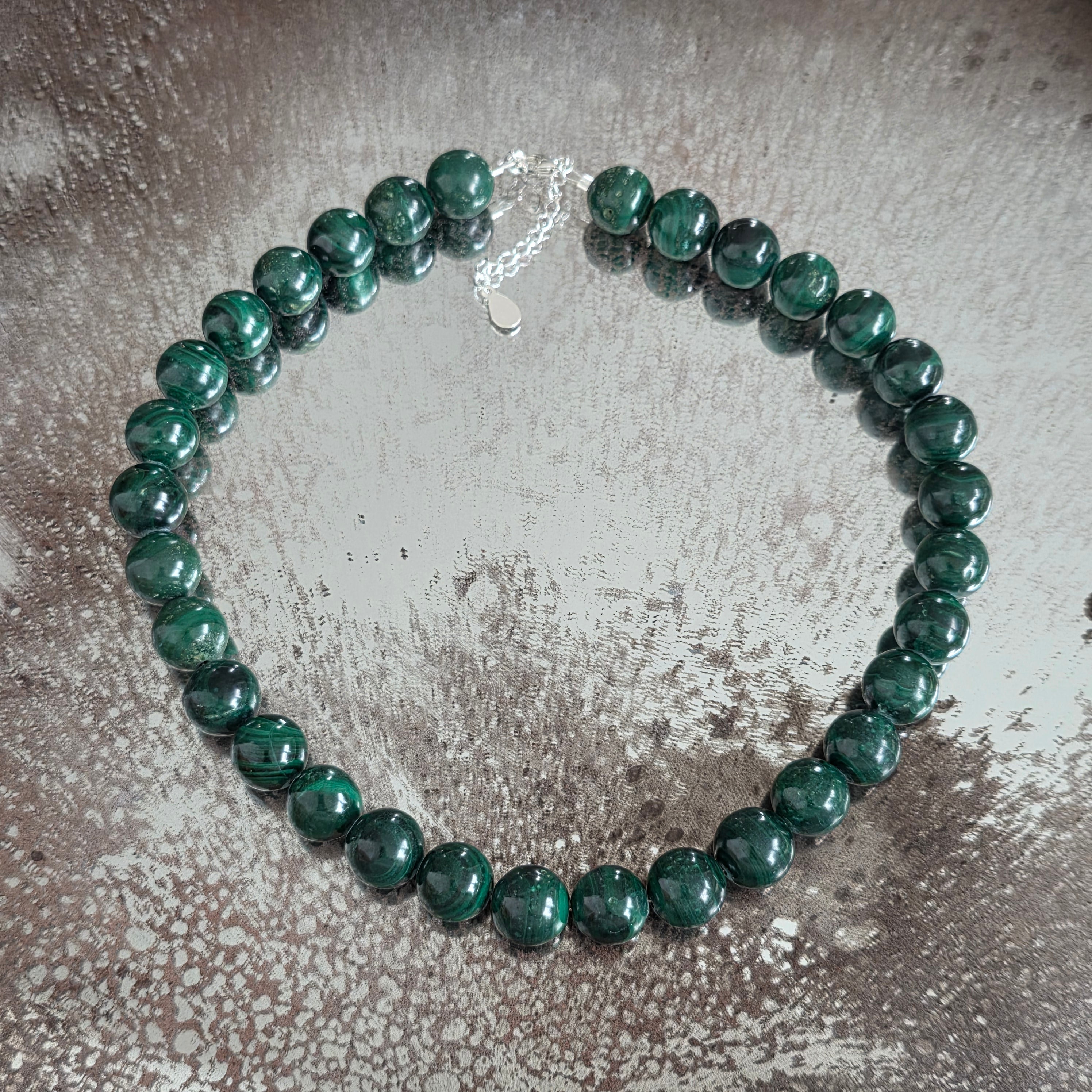 Matériaux :malachite naturelle perles 10-11 mm, argent 925