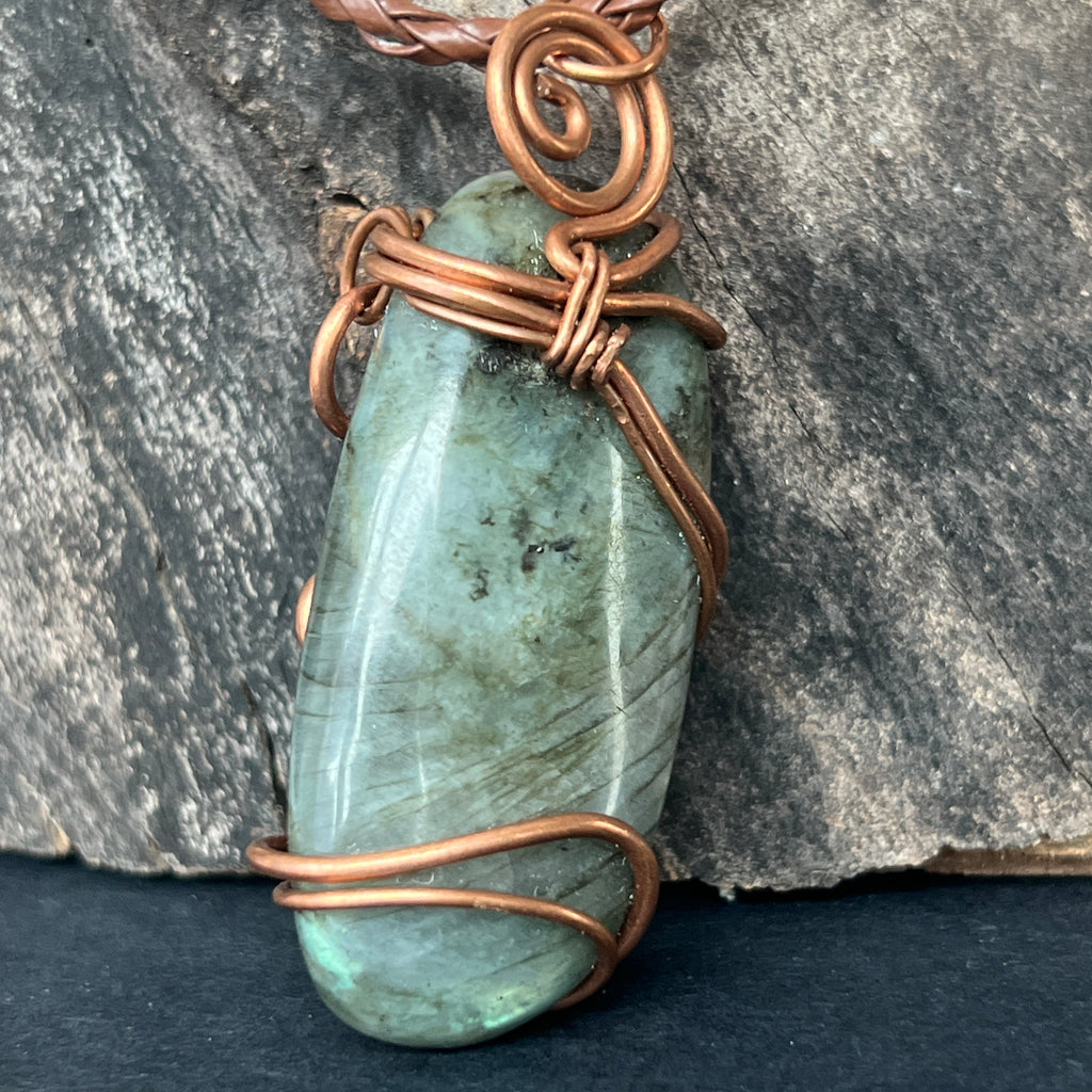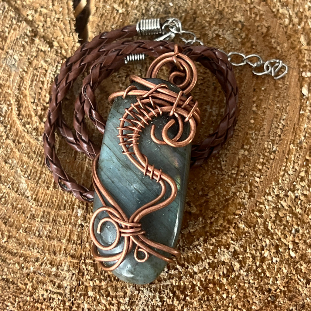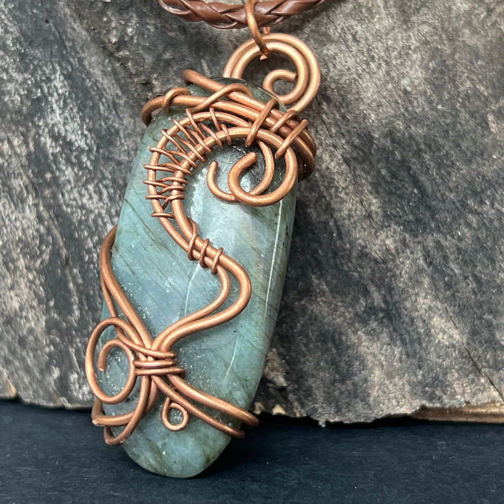 Critiques- Collier pendentif en cuivre labradorite/fil artistique modèle 3