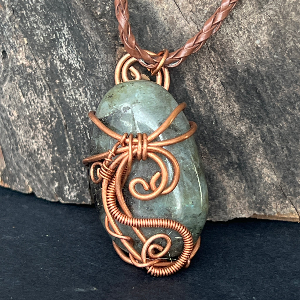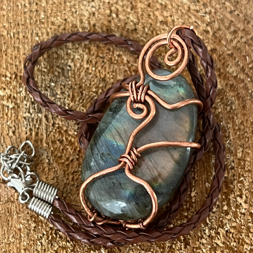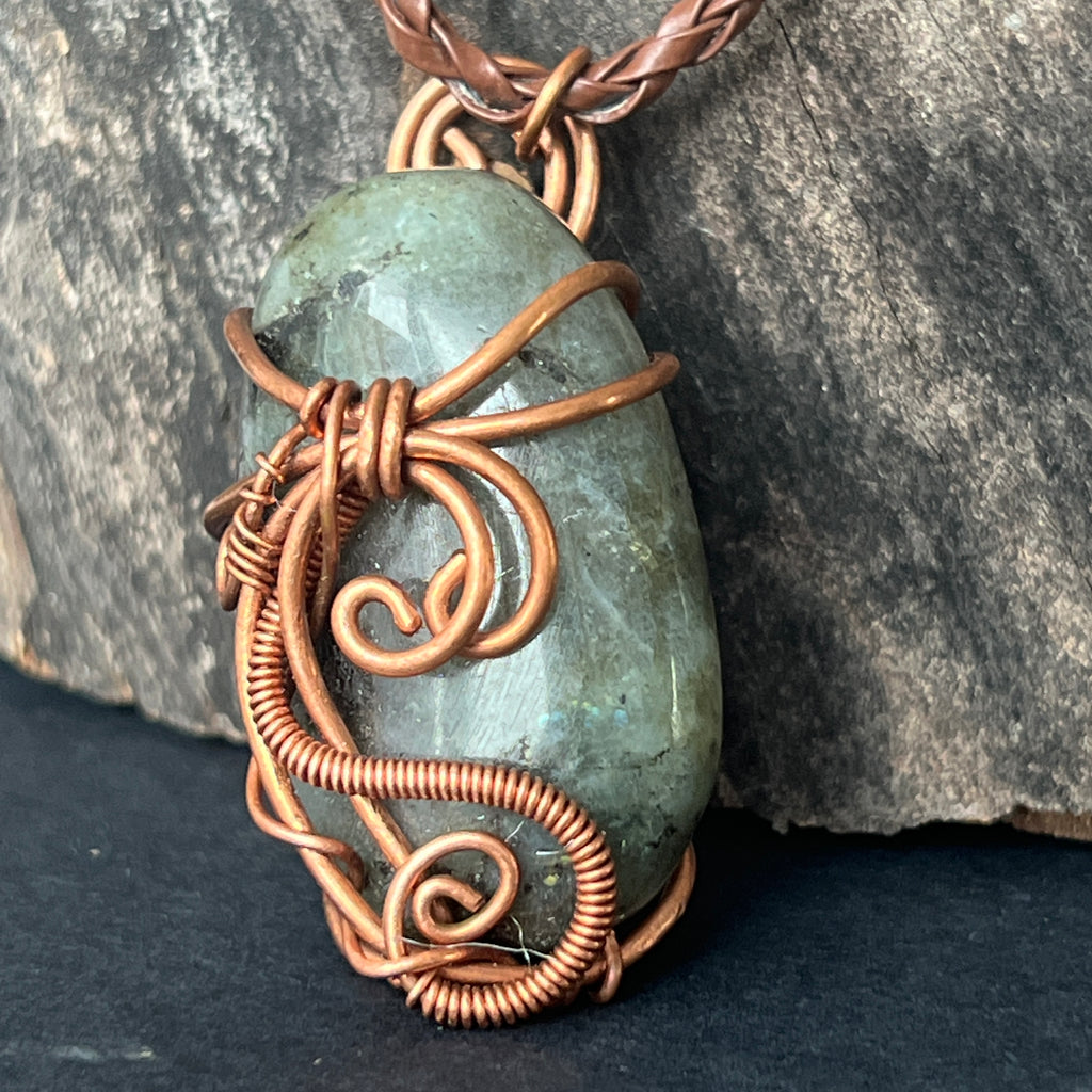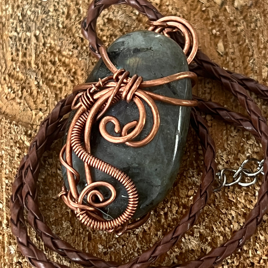 Description - Collier pendentif labradorite en cuivre/fil artistique modèle 2
