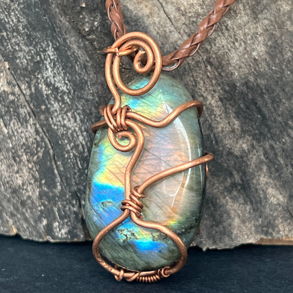 Collier pendentif labradorite en cuivre/fil artistique modèle 2