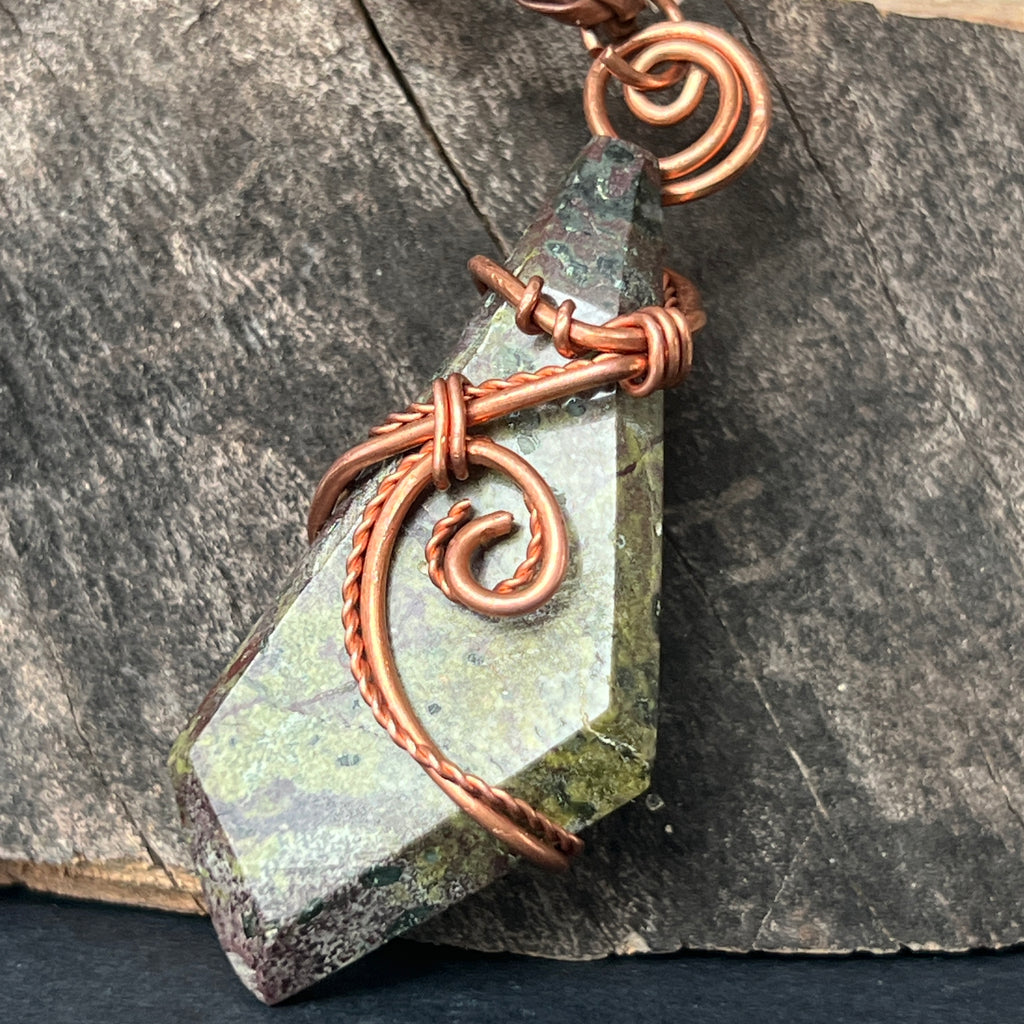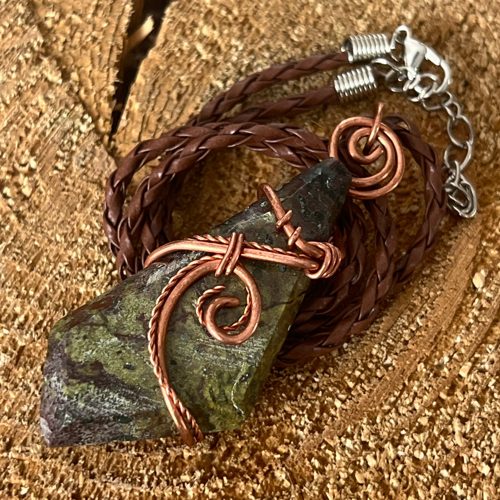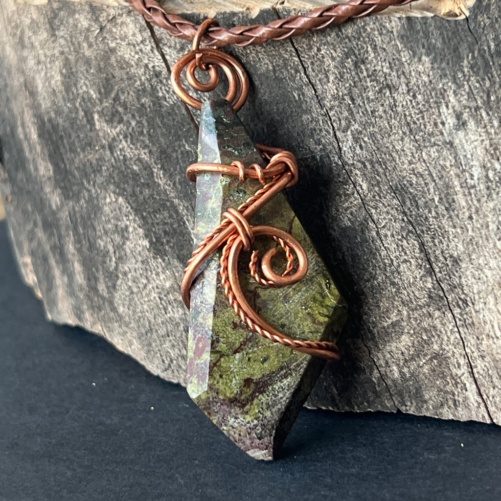 Description - Collier pendentif Sang de Dragon en cuivre/fil artistique m2