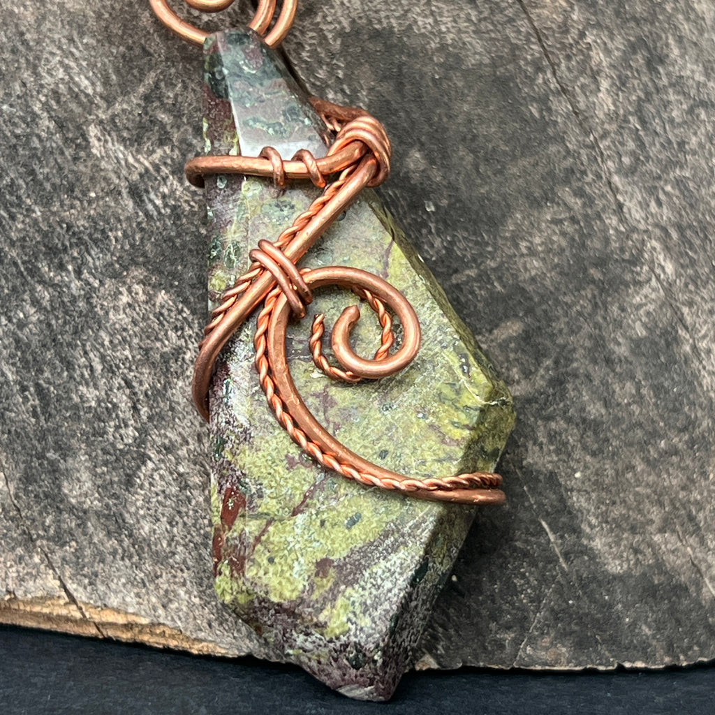 Collier pendentif Sang de Dragon en cuivre/fil artistique m2