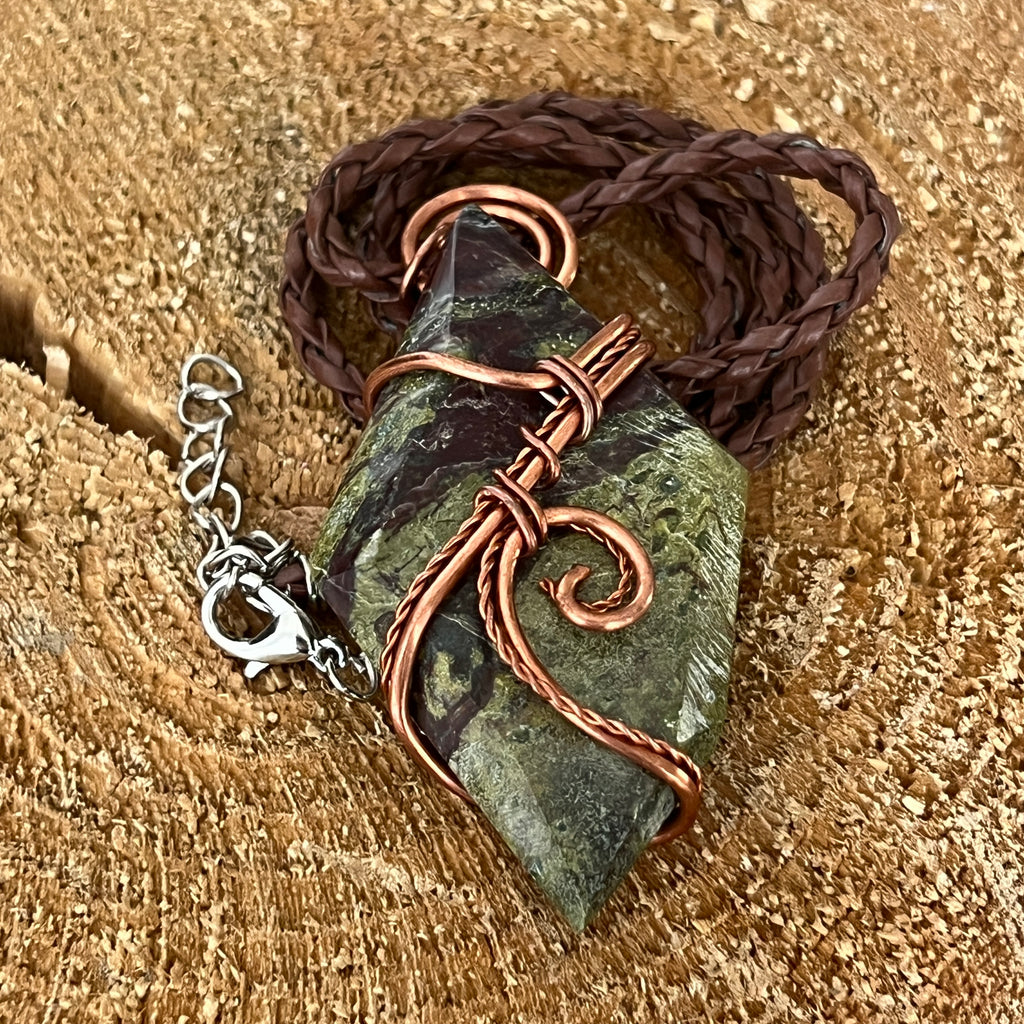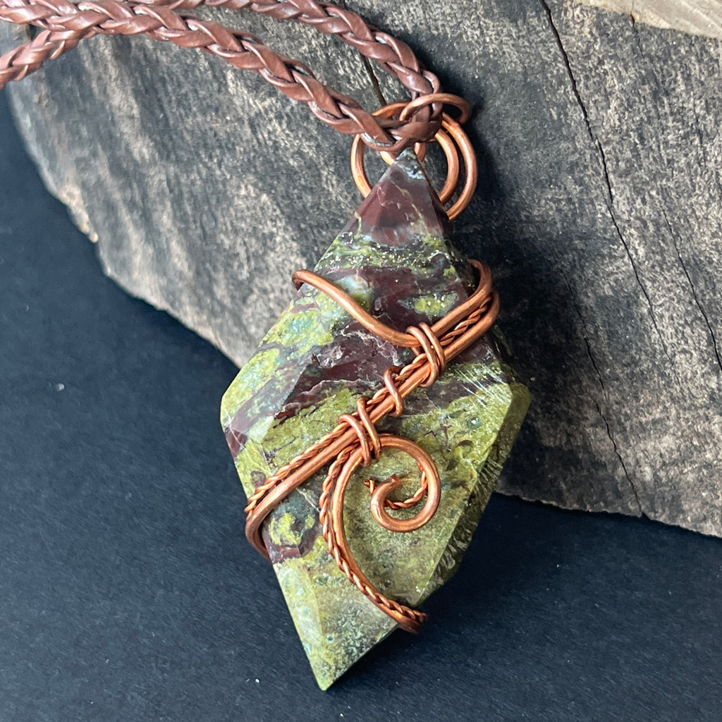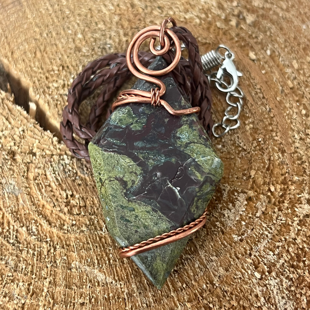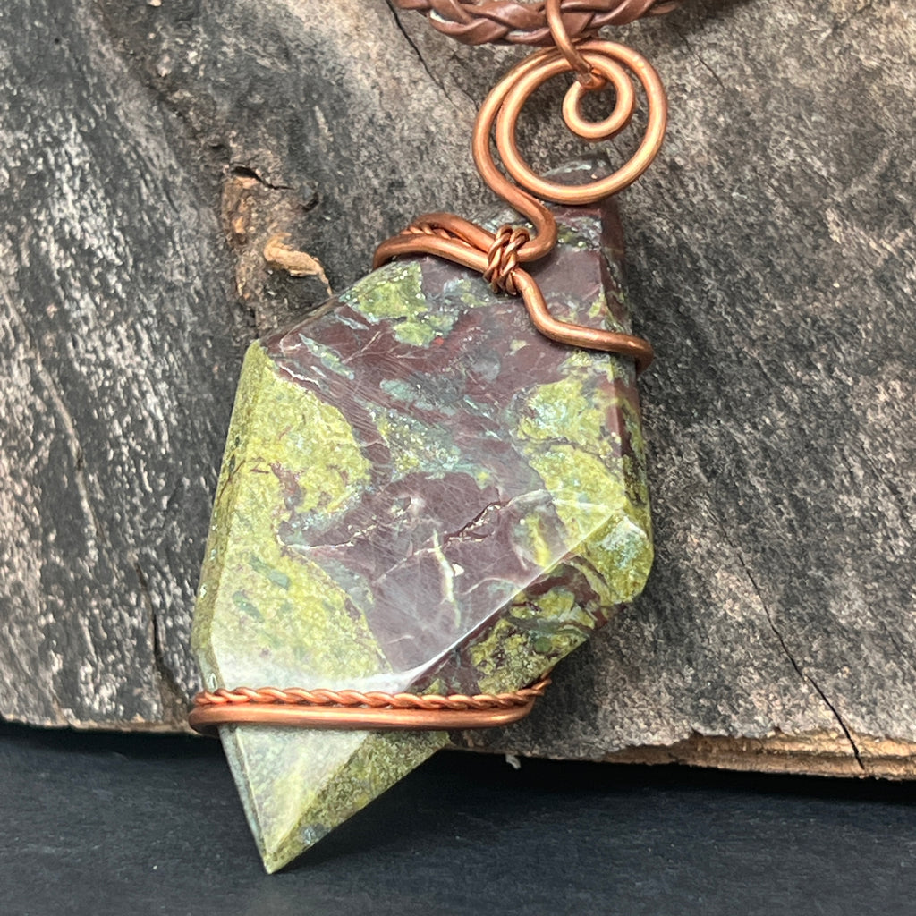 Description - Collier pendentif Sang du Dragon en cuivre/fil artistique m1