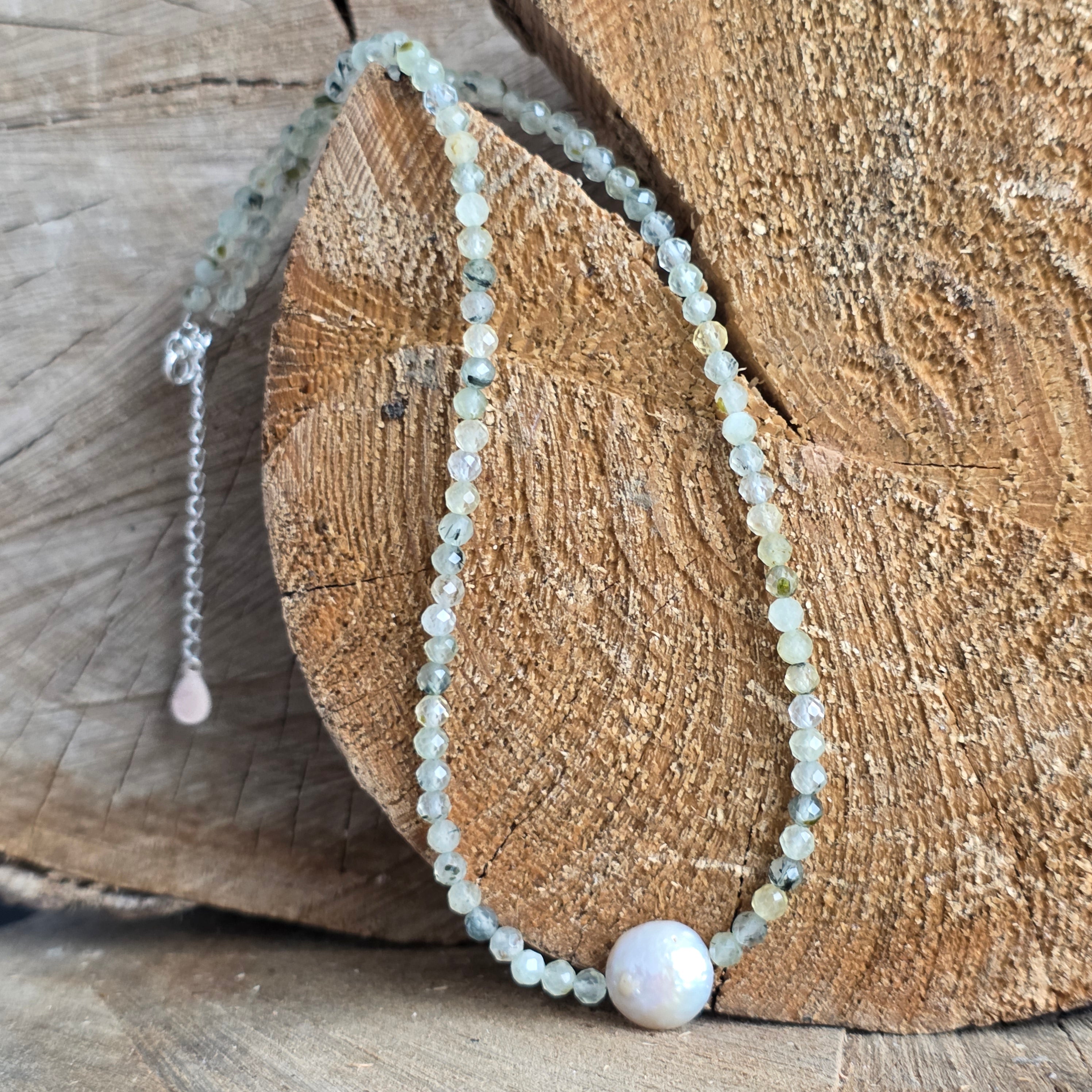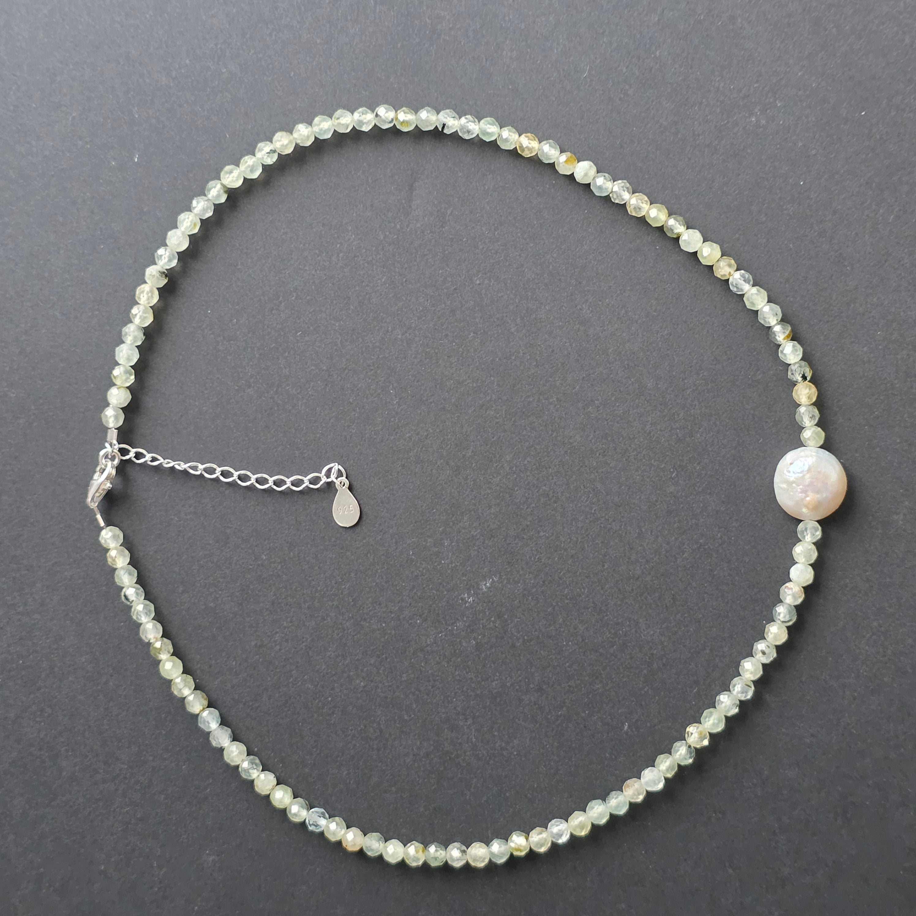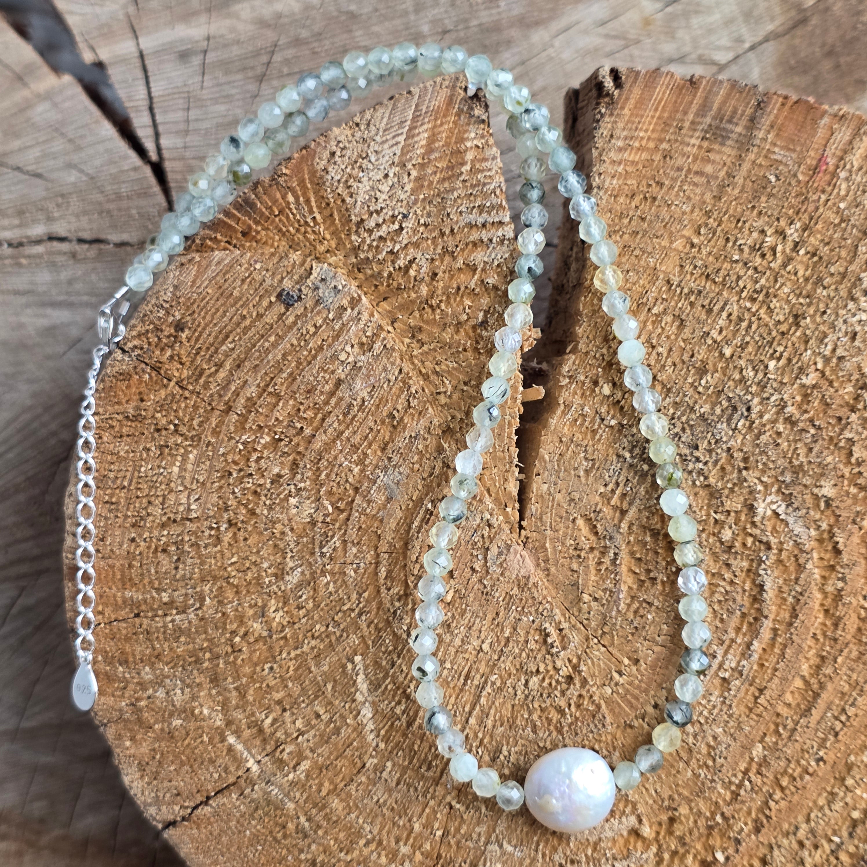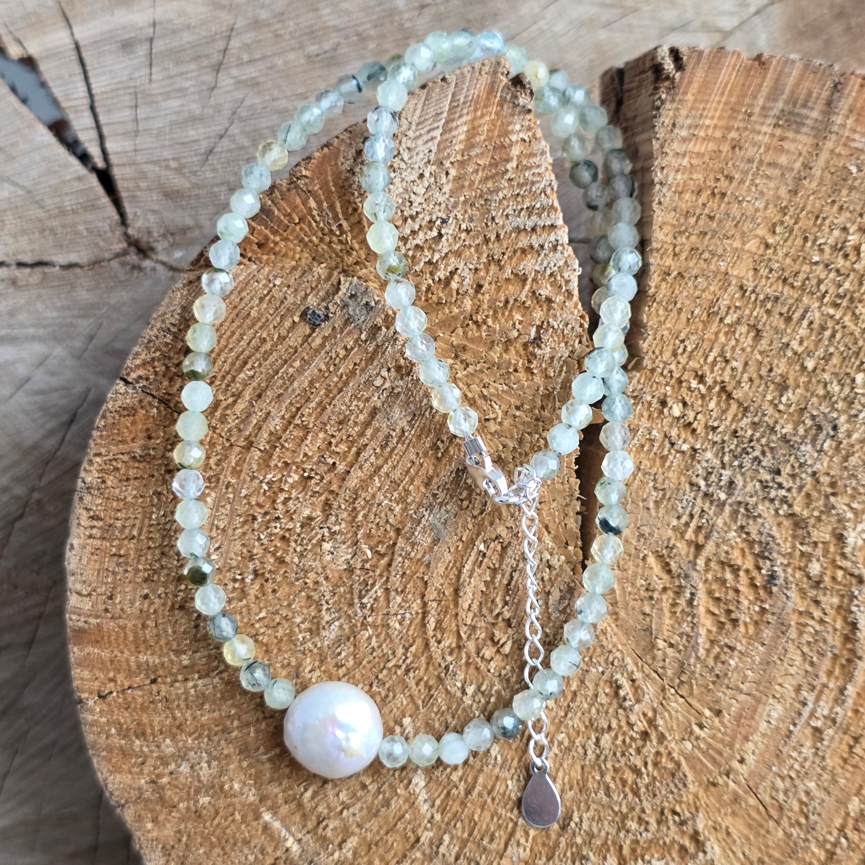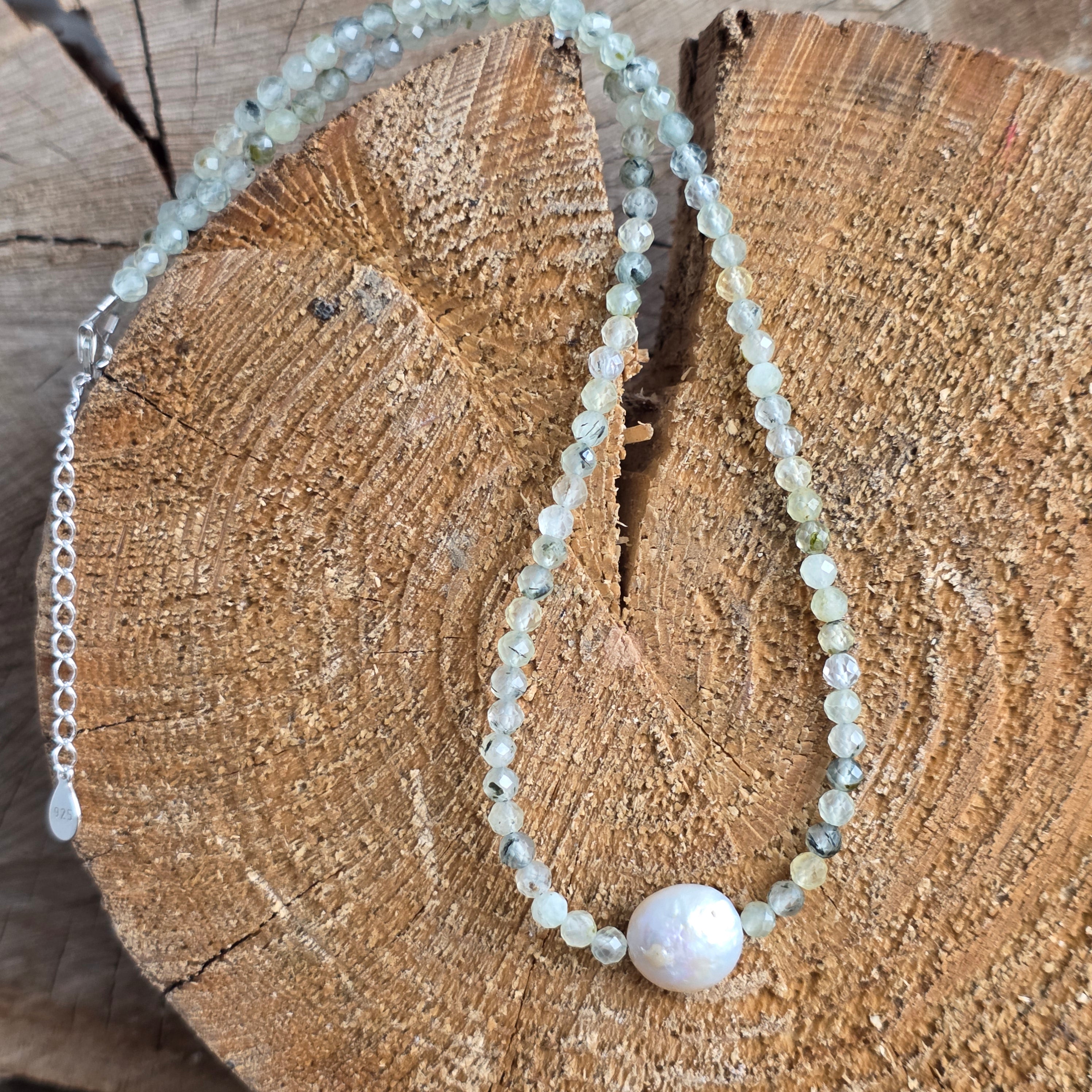 Matériaux : préhite naturelle facettée 4 mm, perle naturelle accent d'environ 1 cm, argent 925