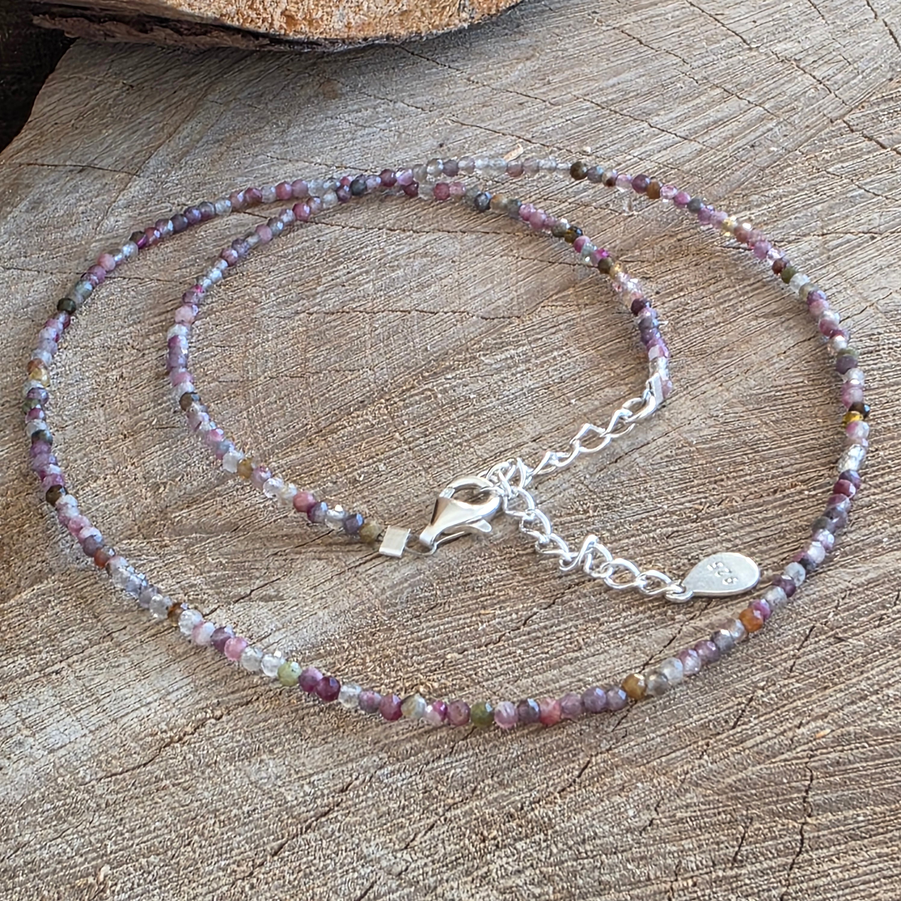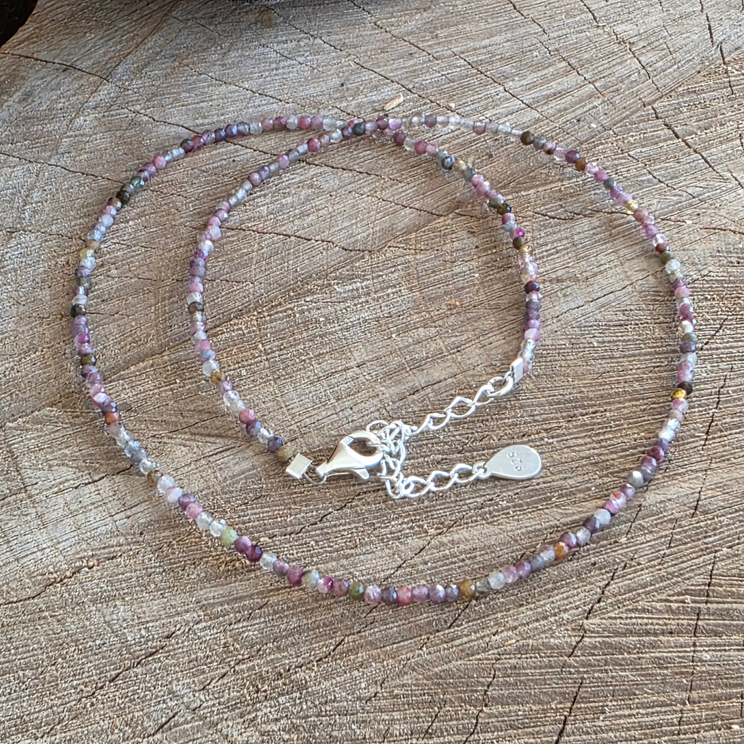 Matériaux : tourmaline rose naturelle, perles facettées 2 mm, argent 925