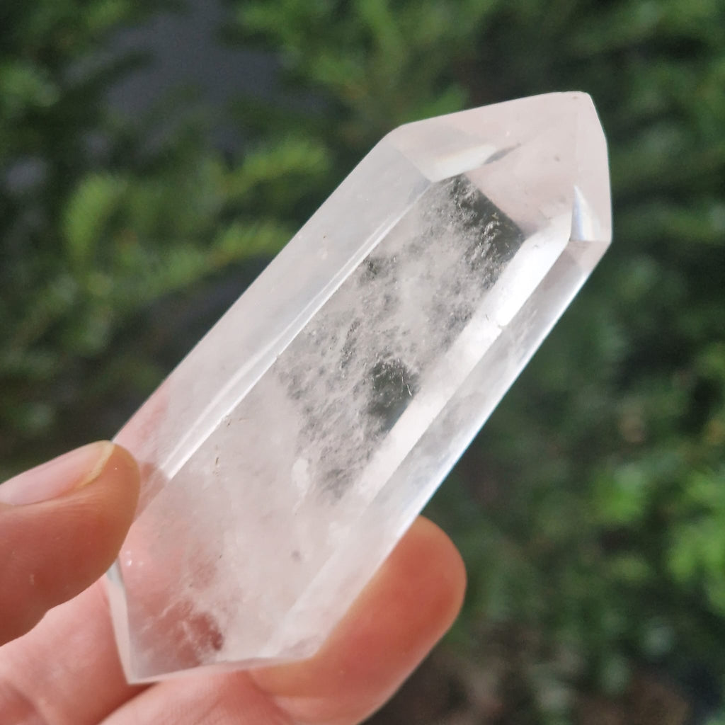 Critiques- Cristal de roche de quartz incolore à double pointe modèle ICY6