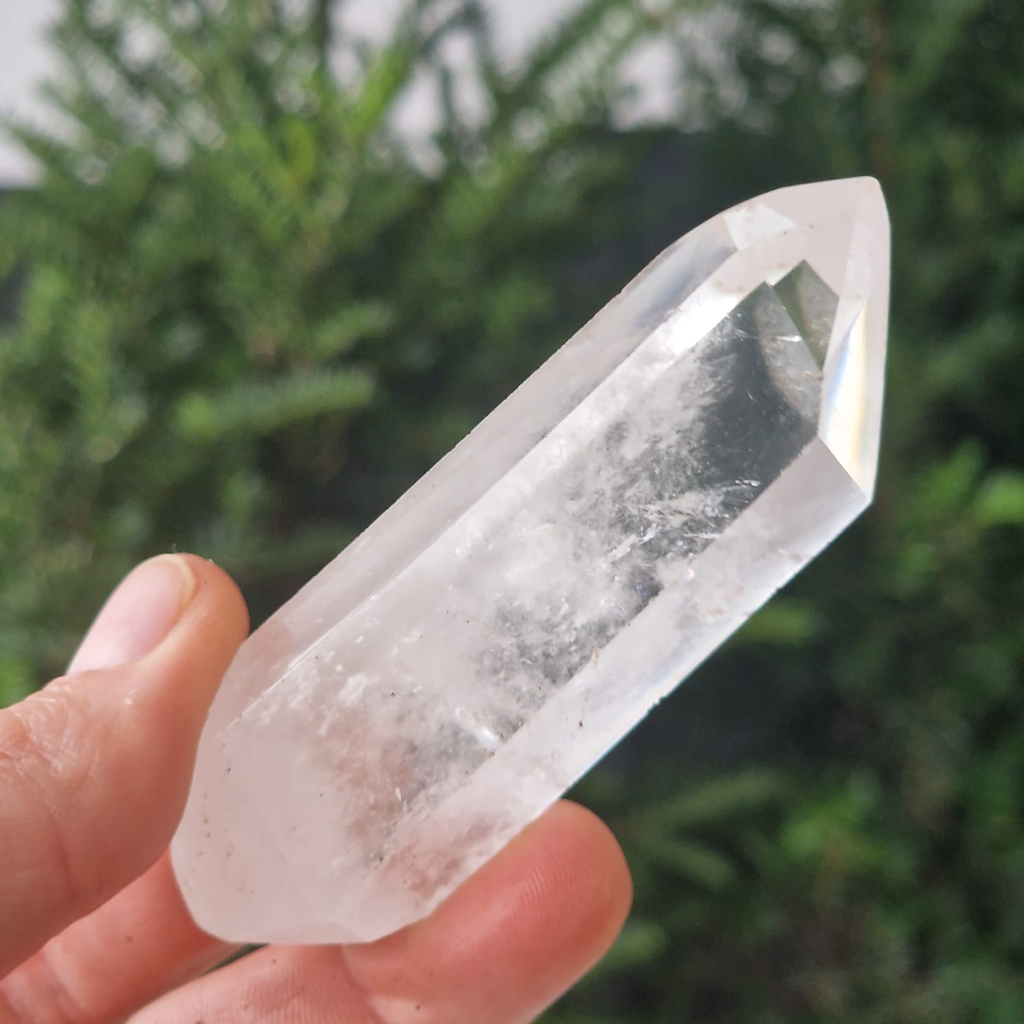 Double pointe en cristal de roche de quartz incolore Modèle icy1