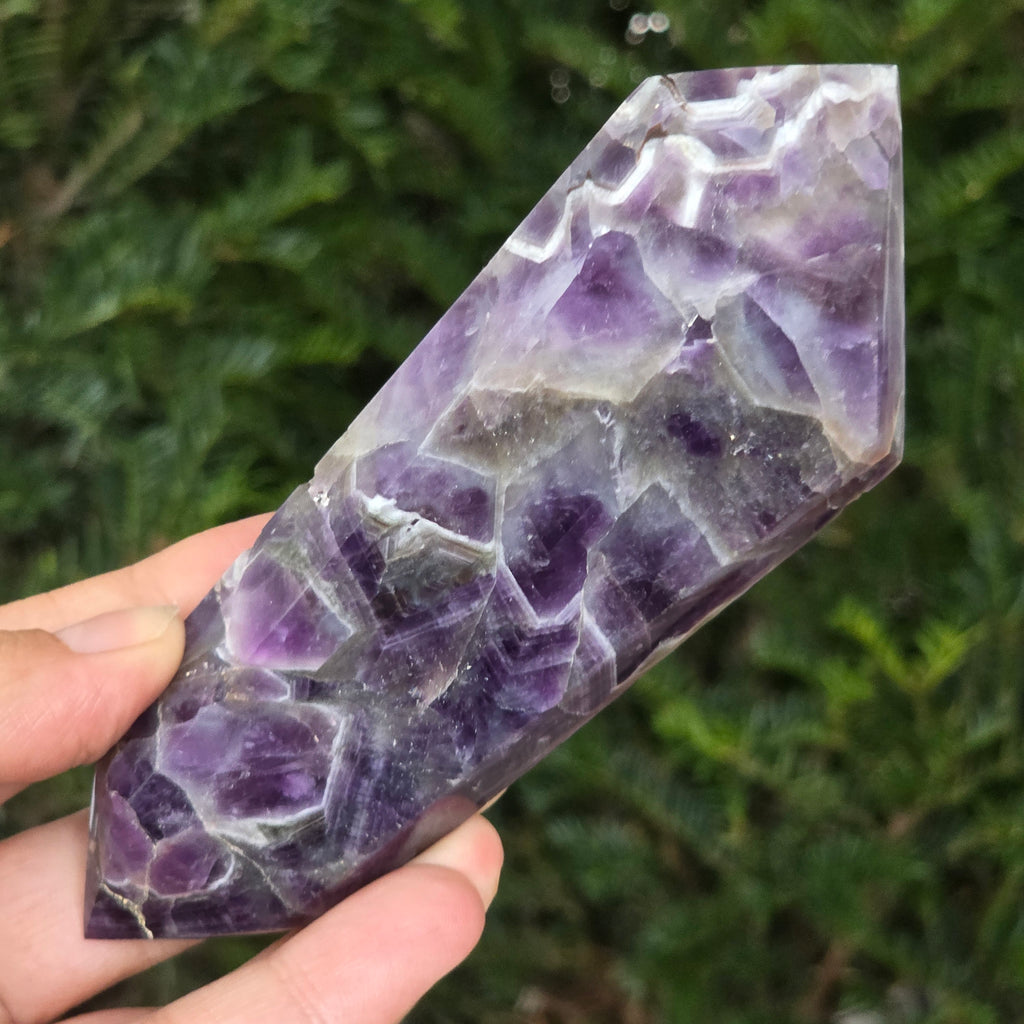 Alege un cristal dublu vârf de ametist chevron și lasă-l să devină un aliat al echilibrului, al purificării și al conectării cu înțelepciunea interioară.