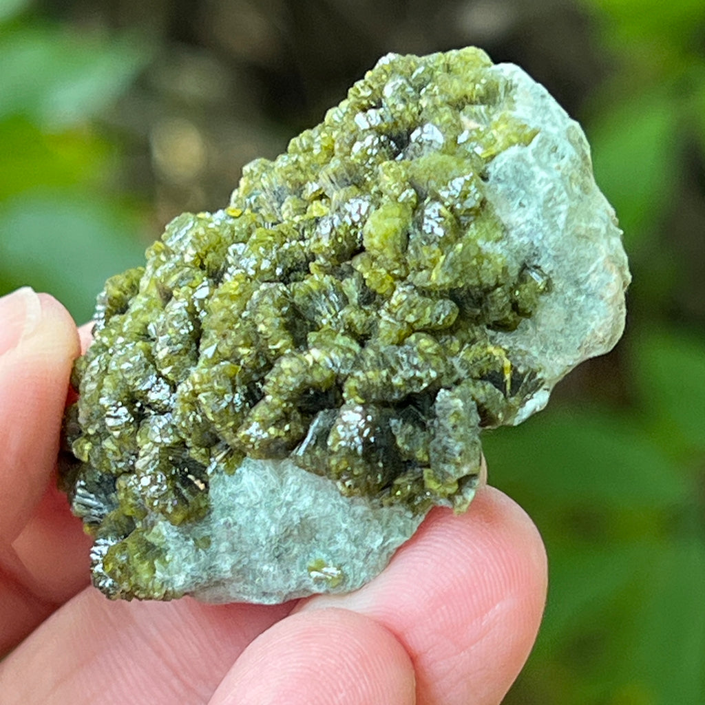 Epidotul se formează în roci metamorfice și în cavități hidrotermale, ca rezultat al transformării lente a mineralelor primare sub presiunea Pământului. Cristalele sale prismatice, lucioase, pot varia de la verde măsliniu la verde intens sau chiar brun-verzui, în funcție de conținutul de fier.