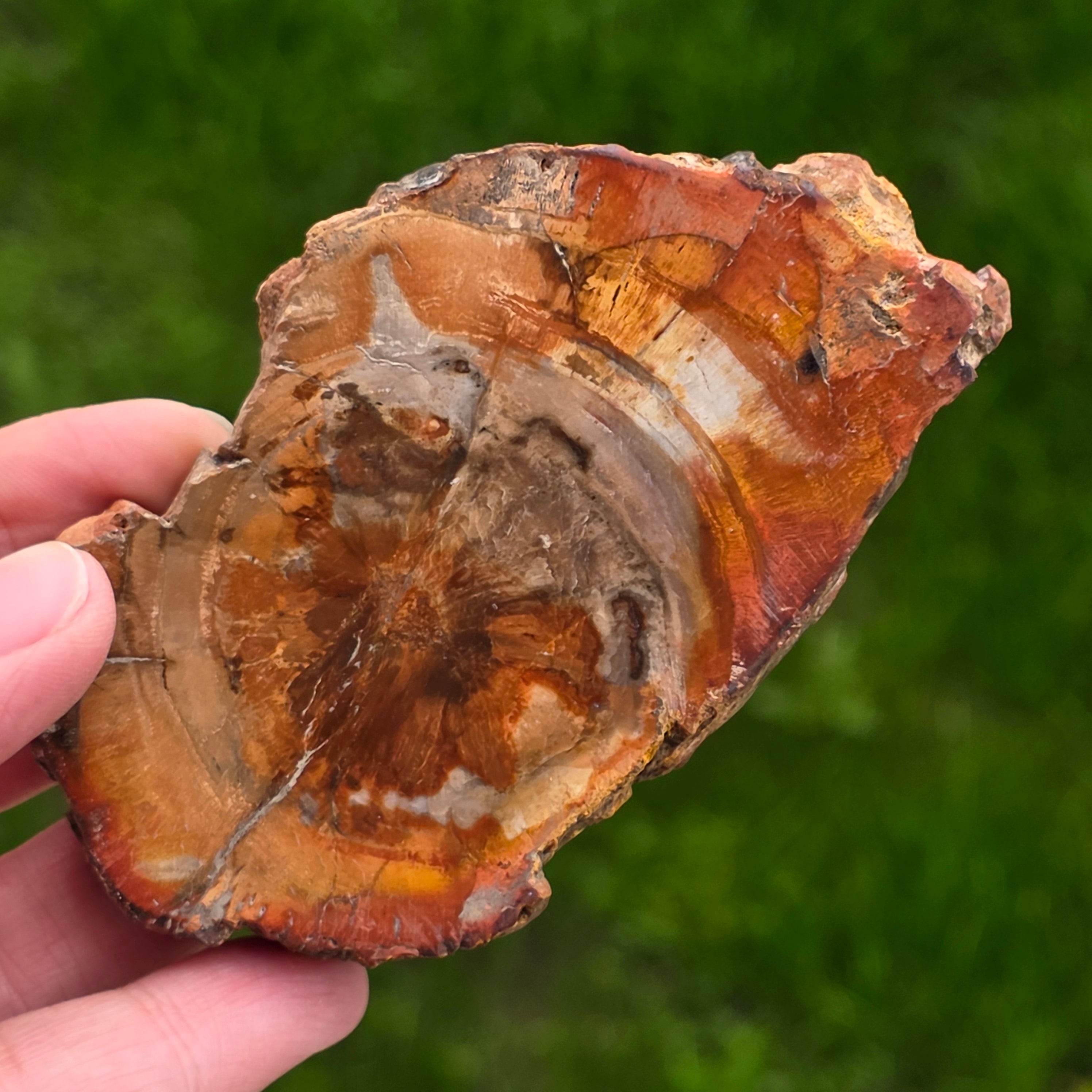 Lemnul pietrificat, cunoscut și sub numele de lemn silicifiat sau fossilized wood, este o piatră născută din răbdare geologică și din ciclurile tăcute ale pământului. Se formează atunci când trunchiurile copacilor antici sunt îngropate rapid sub sedimente vulcanice sau nămoluri bogate în minerale, lipsindu-le de oxigen. În acest mediu, procesul de petrificare are loc lent – moleculele organice ale lemnului sunt înlocuite treptat cu silice (în principal cuarț), dar textura și structura originală a fibrei lemnoase se păstrează în mod miraculos.