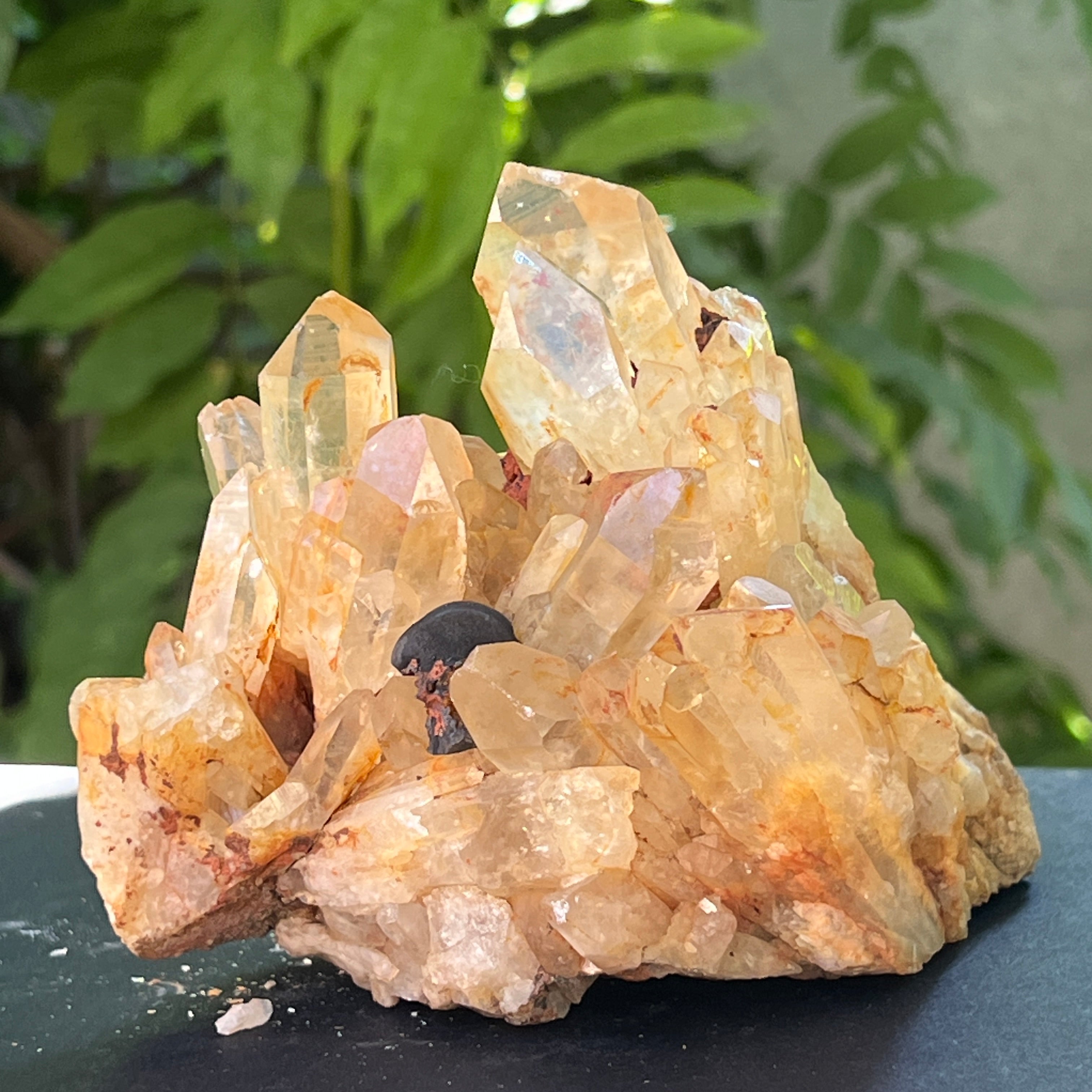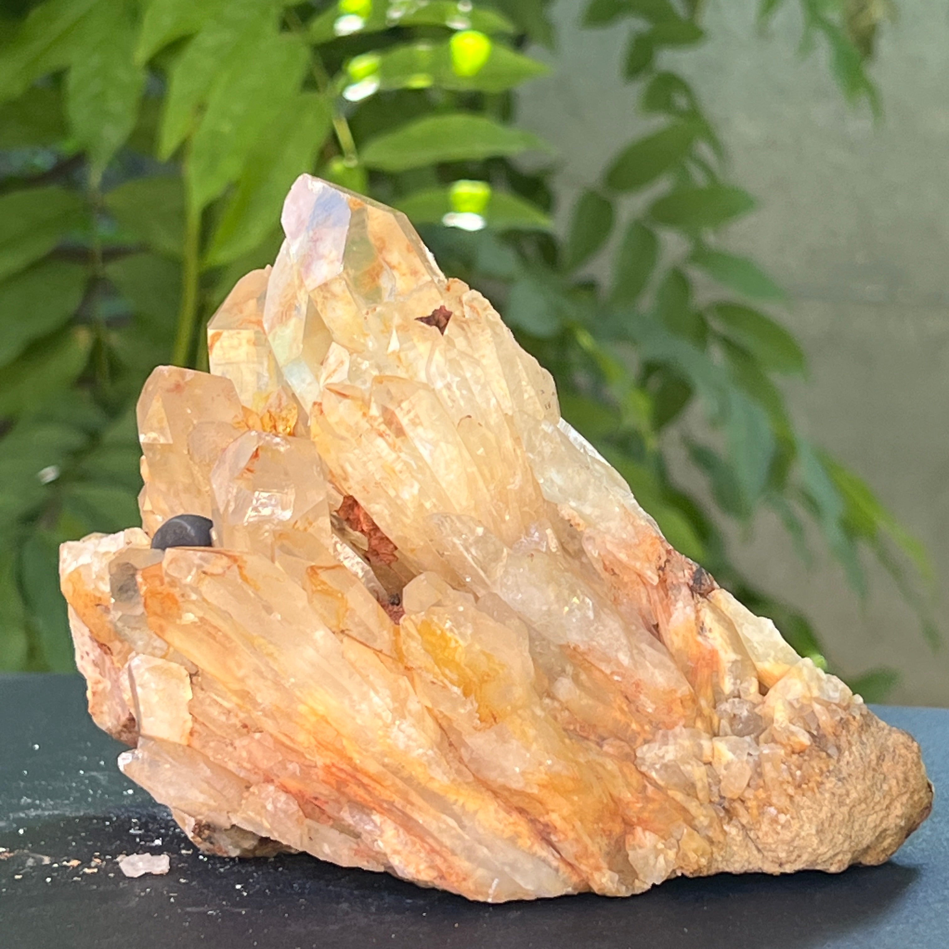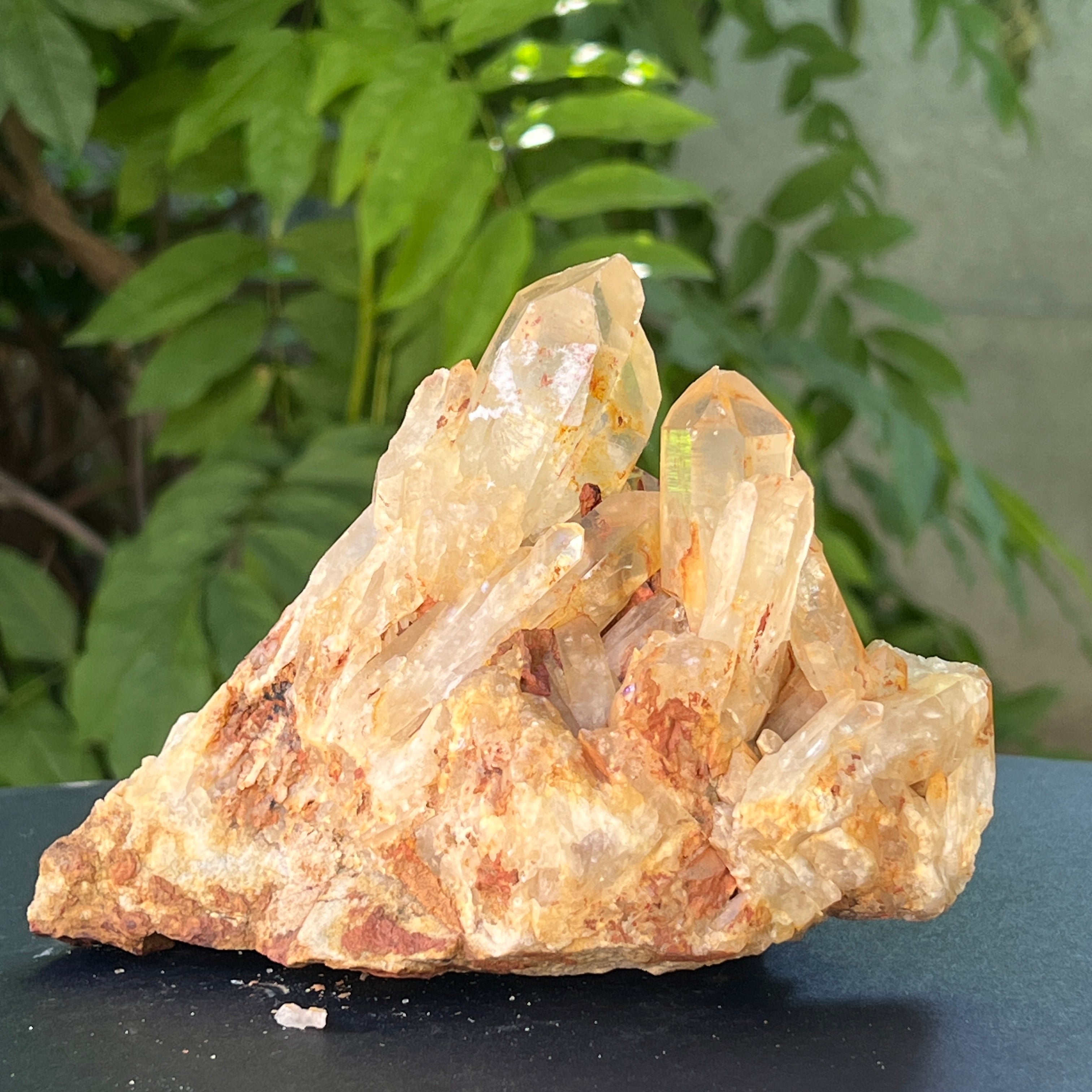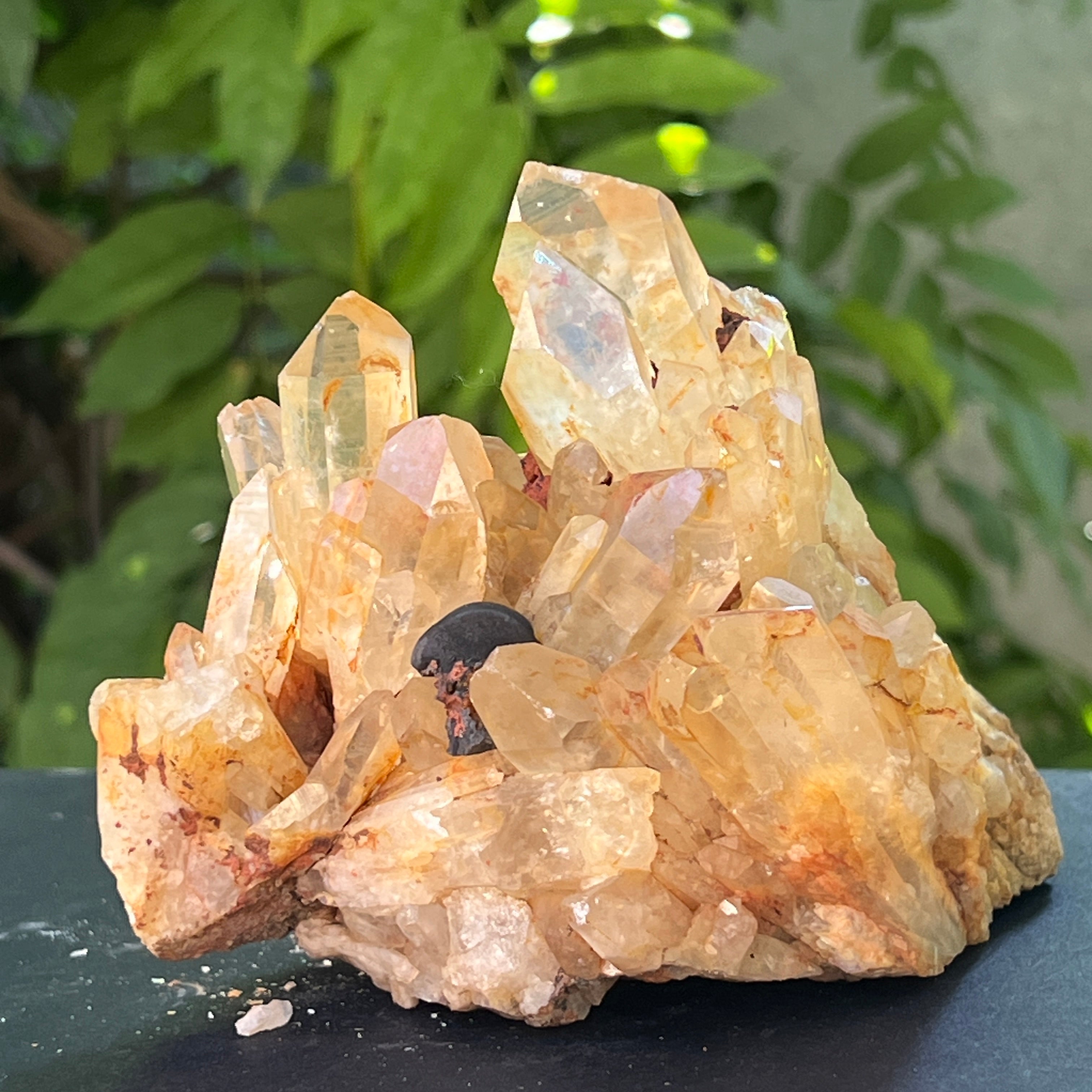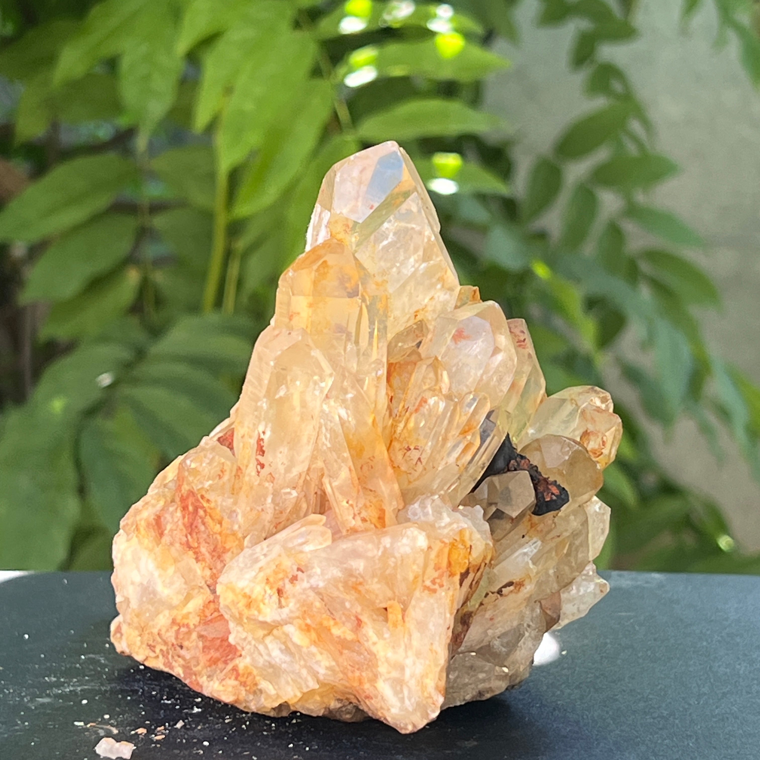 Dans les profondeurs du continent africain, où la terre terrestre de la vie primordiale, cette citrine fumée est née - une pierre rare et mystérieuse, extraite des sols riches du Congo. Avec des nuances chaudes, qui pèlent entre les nuances de fumée en or jaune et discrètes, ce spécimen naturel porte l'empreinte du temps et des transformations lentes de la terre.