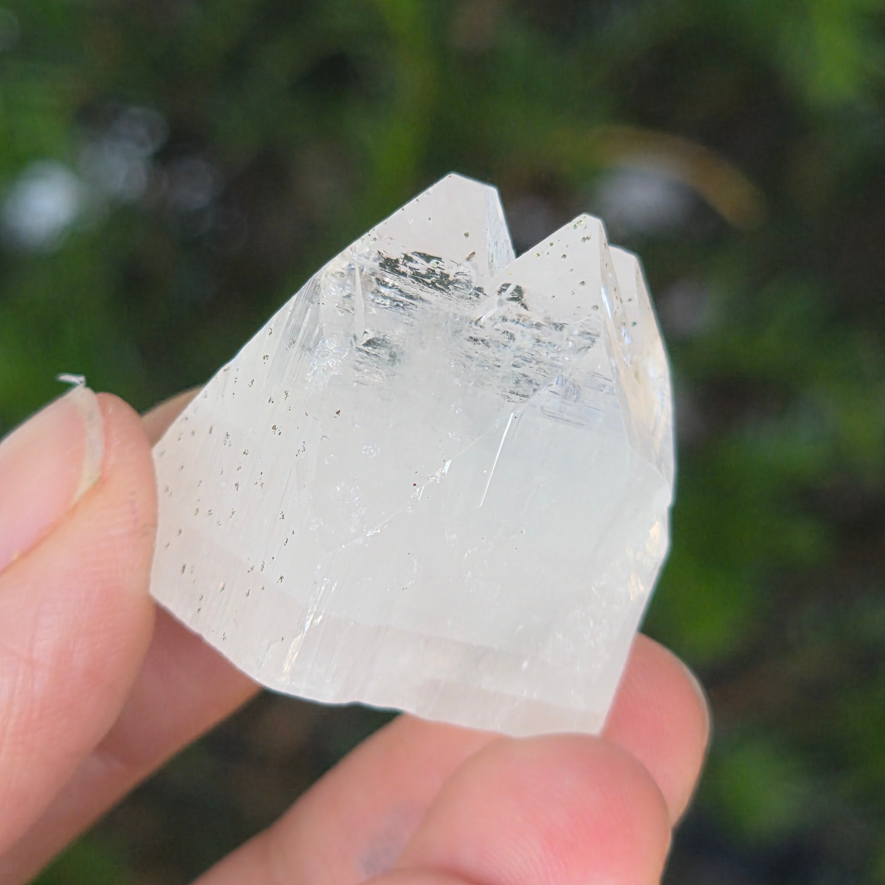 L’apophyllite est un minéral de la famille des tectosilicates, dont la composition chimique principale est le silicate de potassium et le calcium hydraté. En raison de sa teneur en eau, l’apophyllite peut présenter une clarté et une transparence remarquables, et parfois ses surfaces réfléchissent exceptionnellement la lumière, créant un effet proche du miroir.