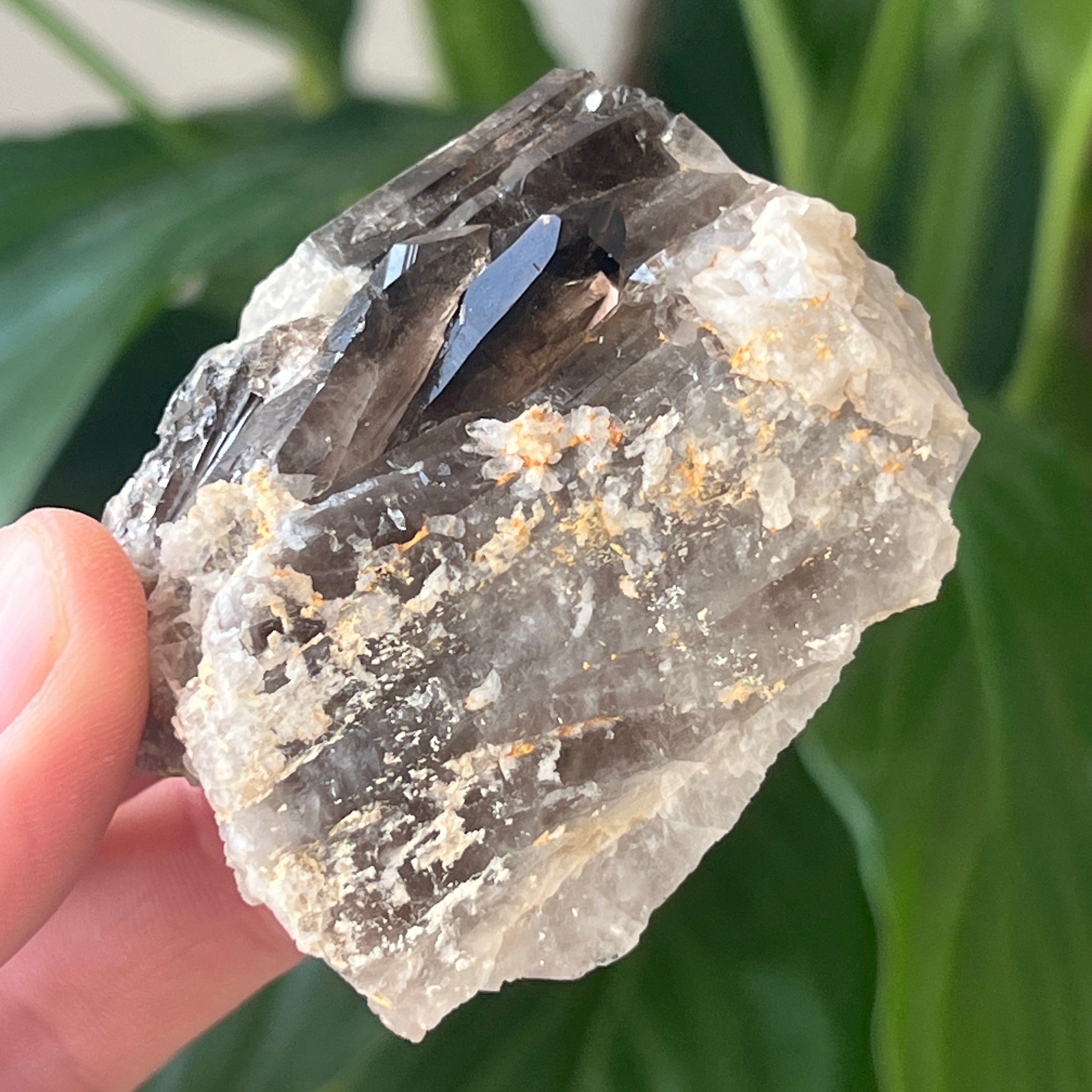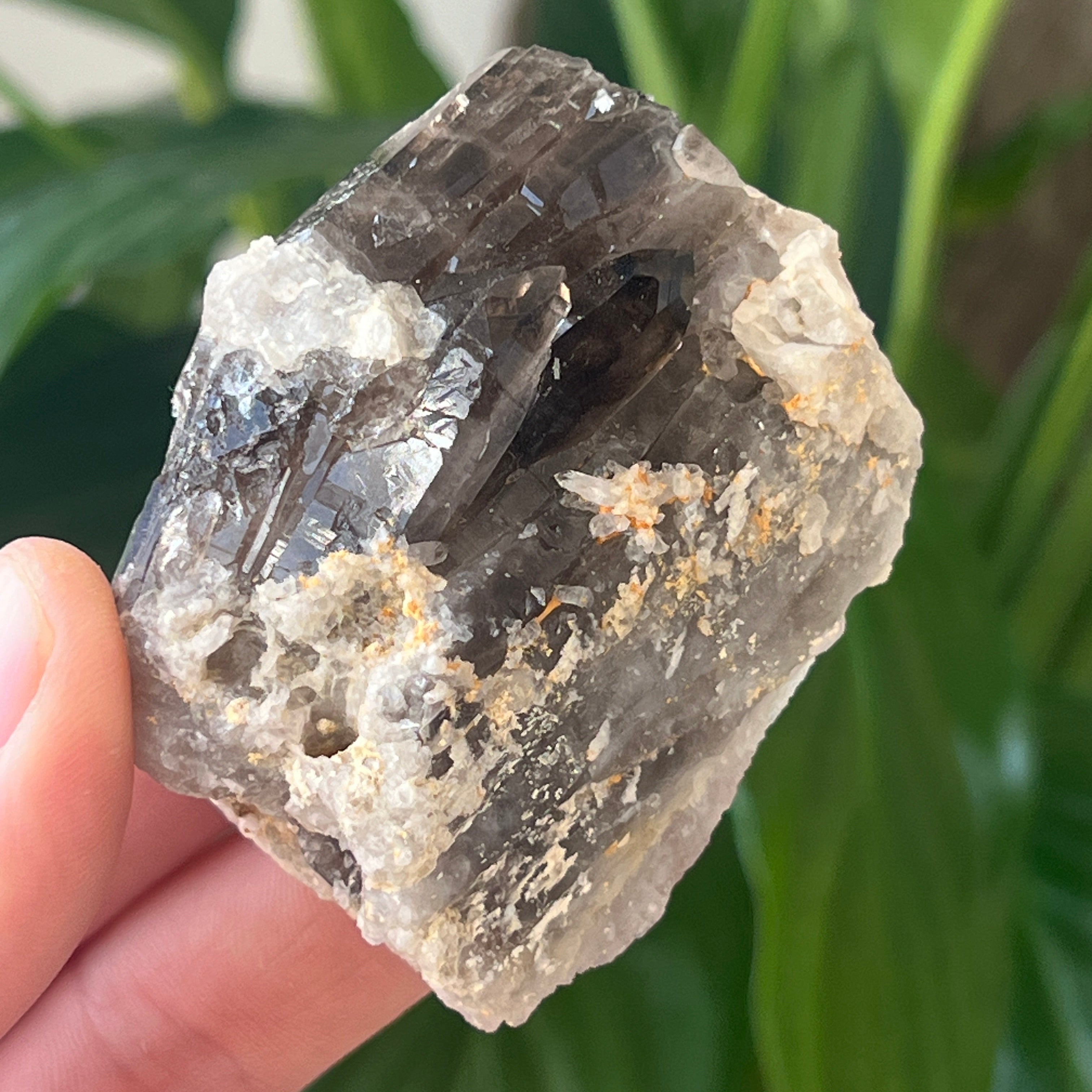Le quartz fumé de cette région est particulièrement apprécié pour sa clarté naturelle, ses nuances chaudes allant du brun translucide au brun foncé et ses formes parfaitement développées dans le système trigonal. Certains cristaux présentent des terminaisons doubles, des formes de sceptre ou des inclusions fascinantes – depuis les vapeurs hydrothermales et les bulles mobiles jusqu'aux traces d'hématite ou de rutile. La présence naturelle du rayonnement des roches environnantes lors de la formation des cristaux donne cette teinte fumée authentique sans traitements thermiques ni intervention humaine.