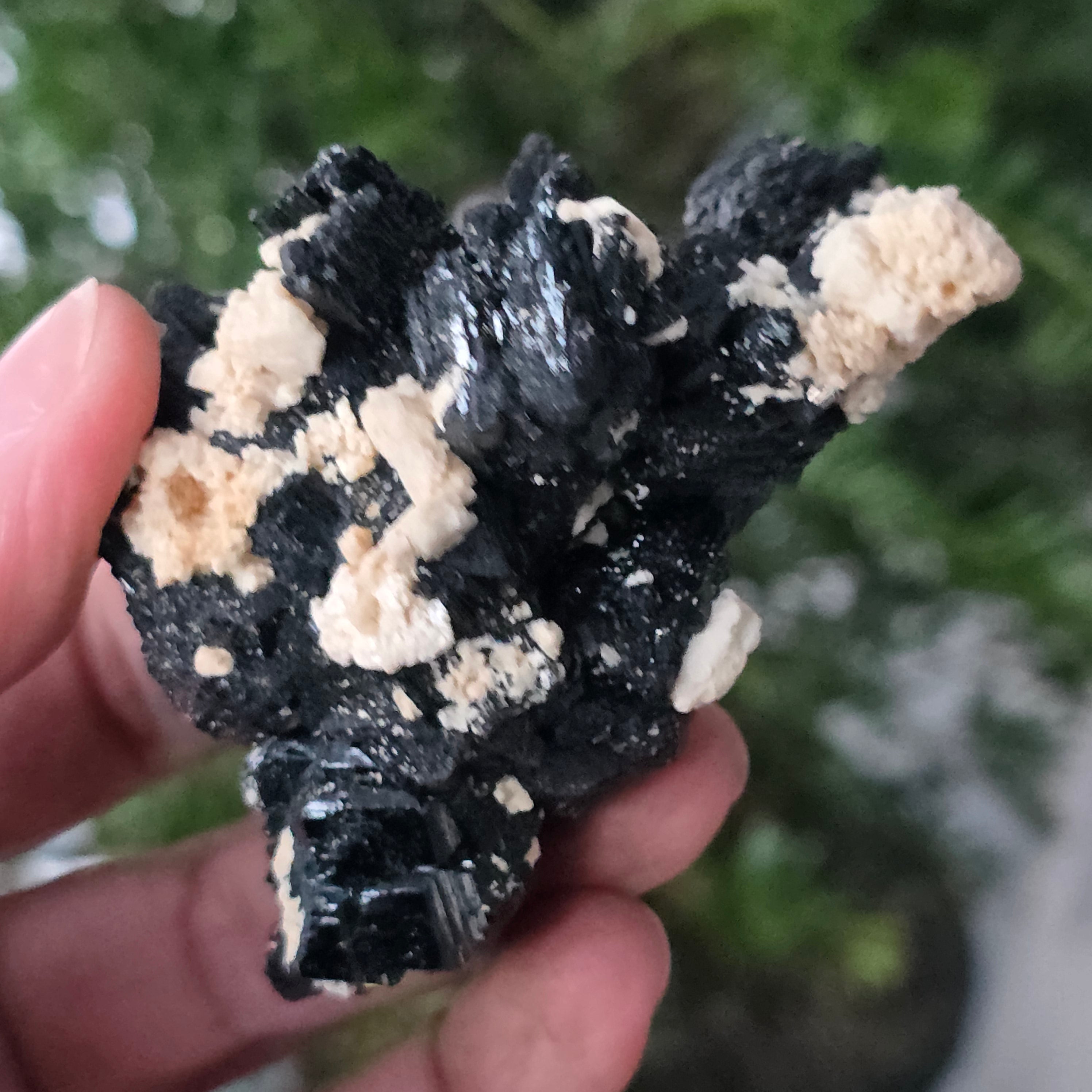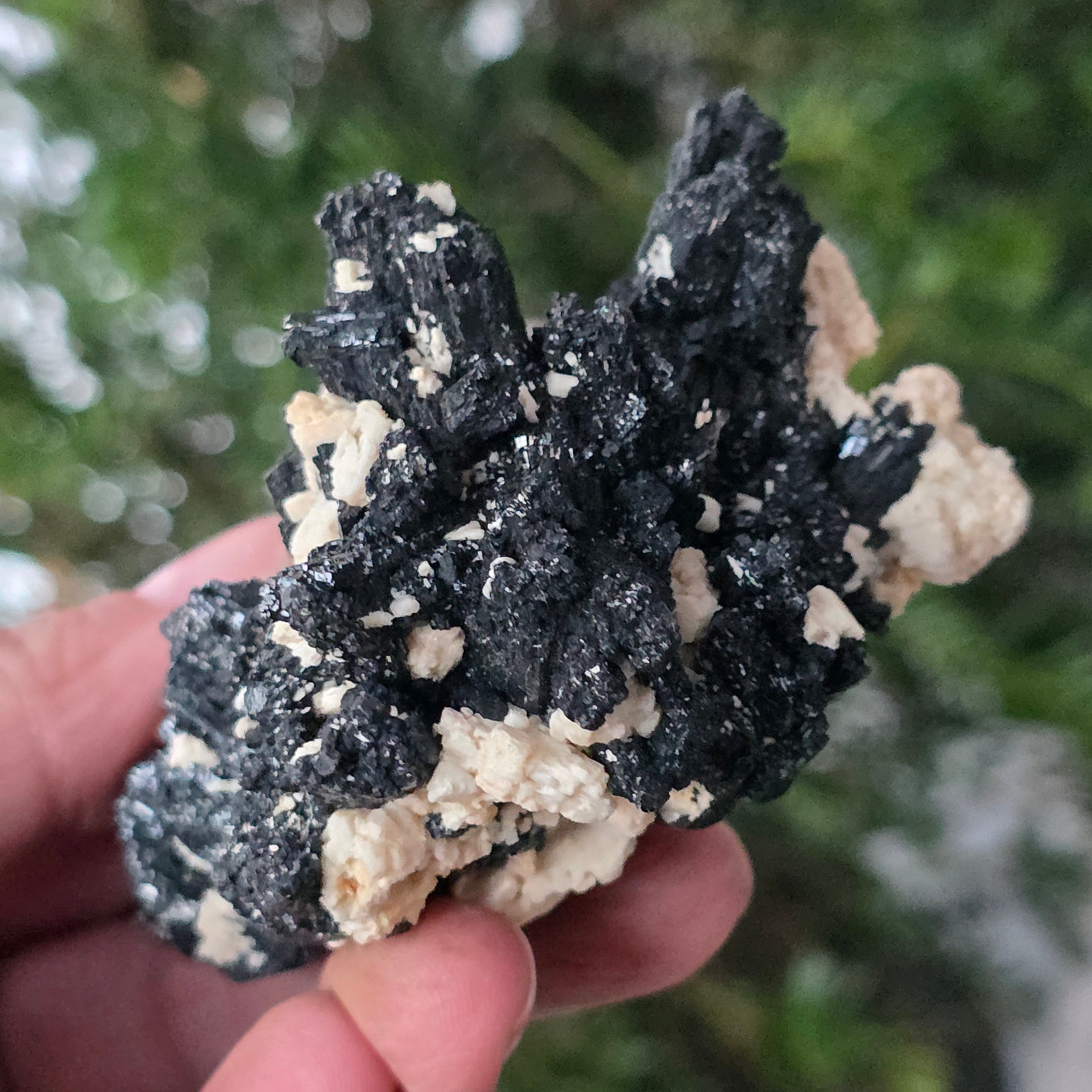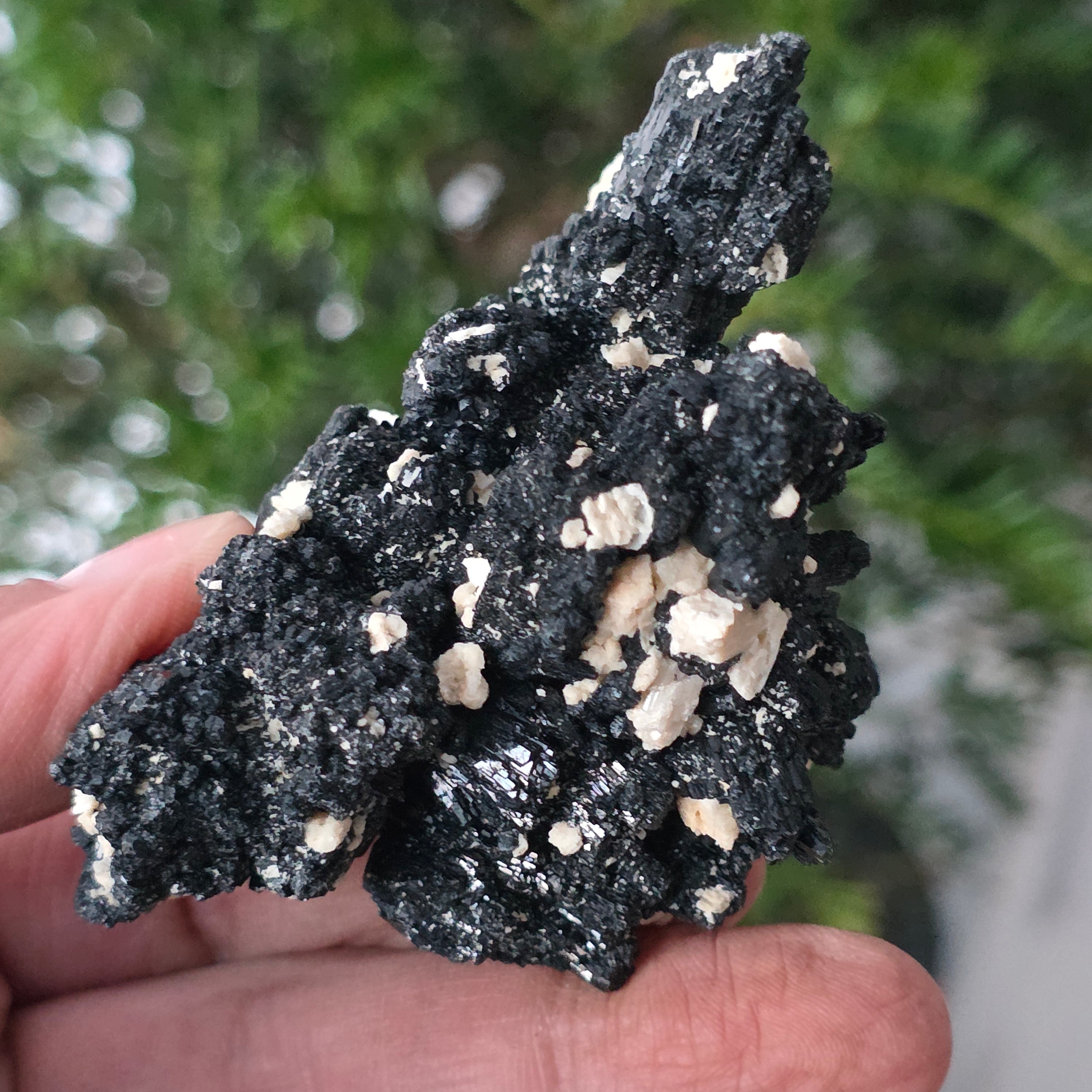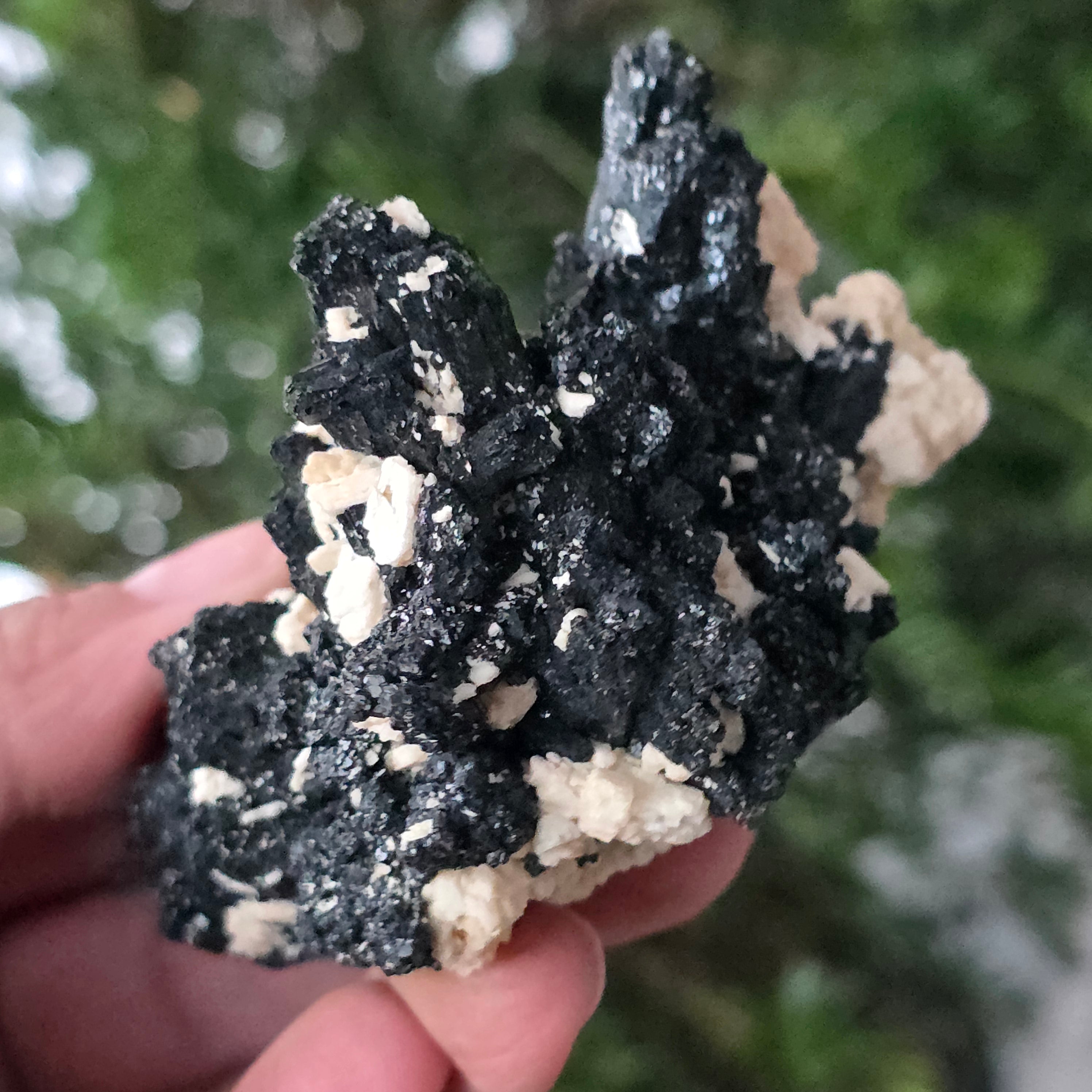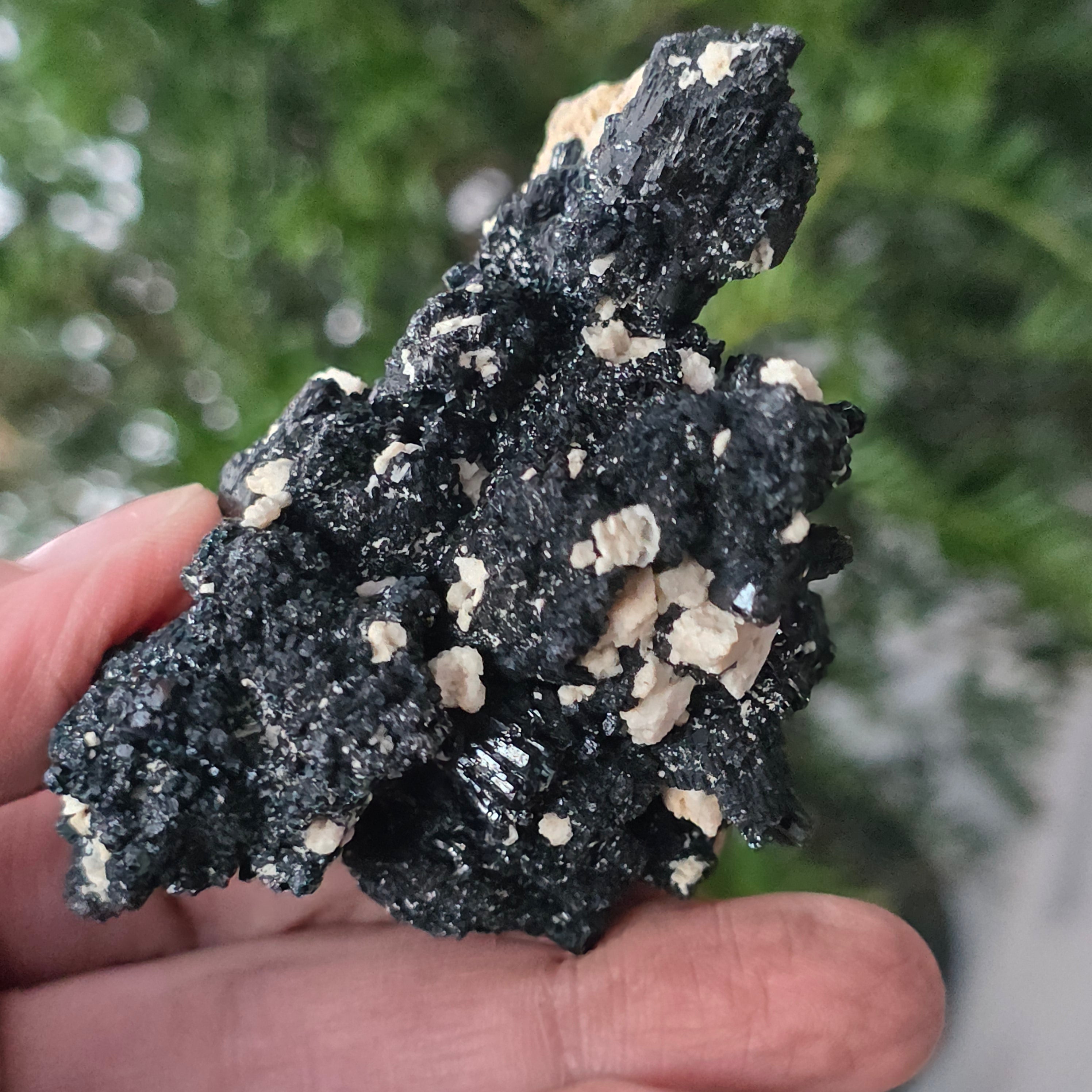 La tourmaline noire, également connue sous le nom de schorl, est constituée d'un mélange complexe de borosilicates et se présente sous diverses formes cristallines. C'est un minéral très dur et doté d'une grande résistance aux rayures et à l'usure.