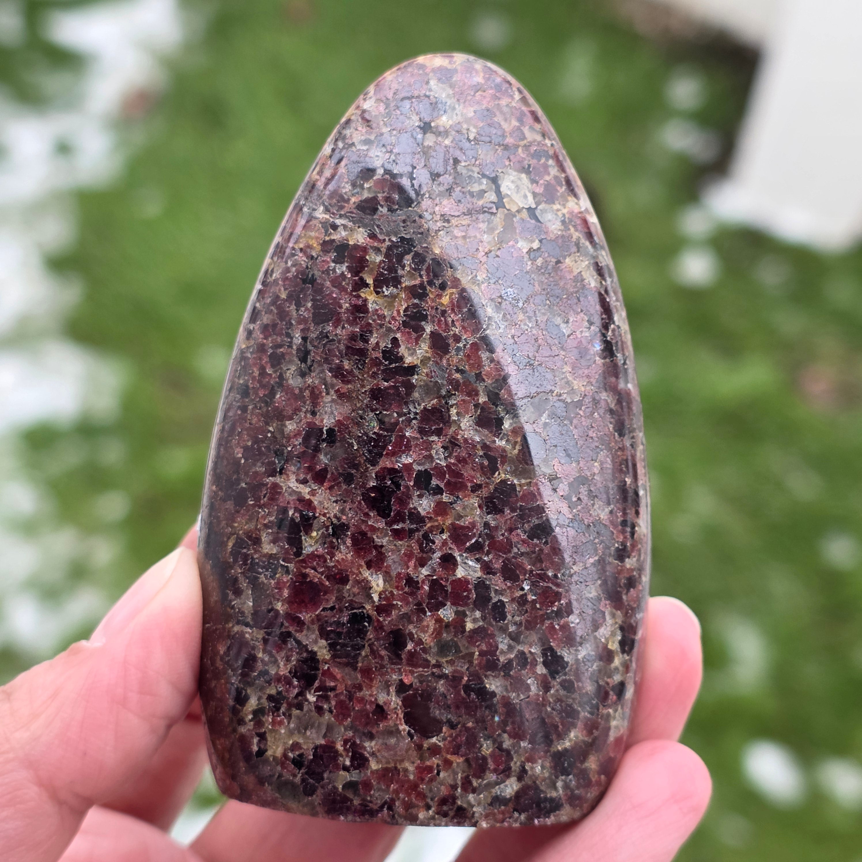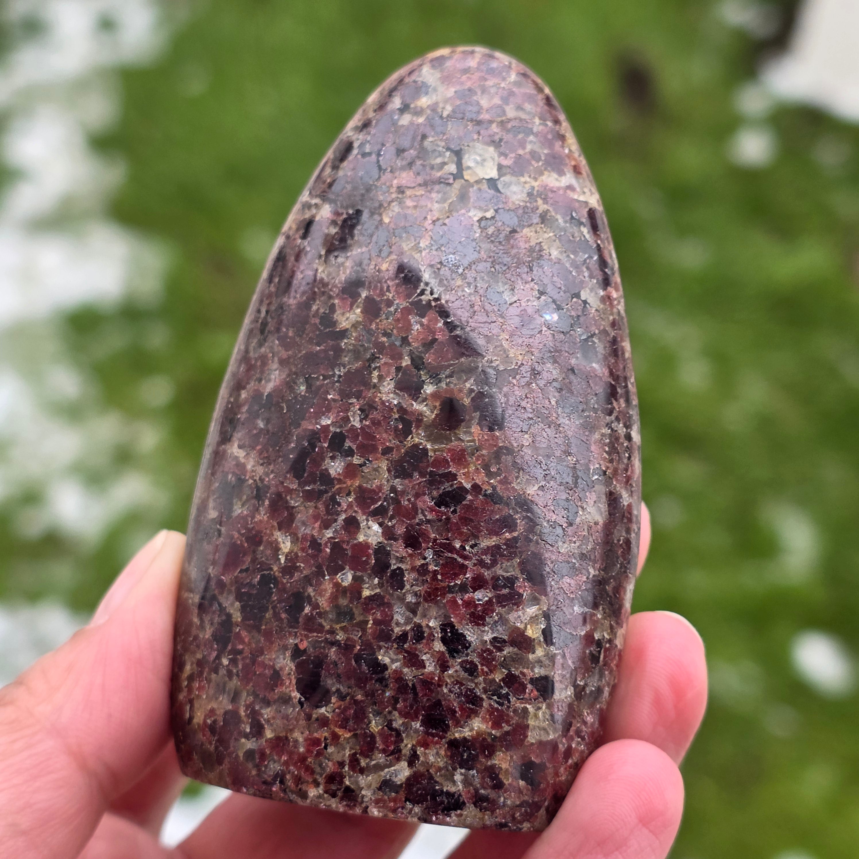 Celui-ci morceau de grenat naturel de Madagascar, à structure de forme libre, il conserve le caractère authentique du cristal, mettant en évidence l'équilibre entre les surfaces polies et les zones naturelles. C'est une pièce adaptée pour une collection, des espaces de méditation ou un bureau, possédant une présence forte et stabilisante. Le grenat est associé à la vitalité, l'enracinement et la force intérieure, et est souvent choisi pour soutenir l'énergie pendant les périodes d'effort, de transformation et de reconnexion avec sa propre puissance. La forme libre permet une expression naturelle de l'énergie, conférant à cette pièce un caractère unique et authentique. Le grenat est également considéré comme une pierre de passion et d'énergie sexuelle et est souvent porté pour augmenter le niveau d'énergie et de vitalité.