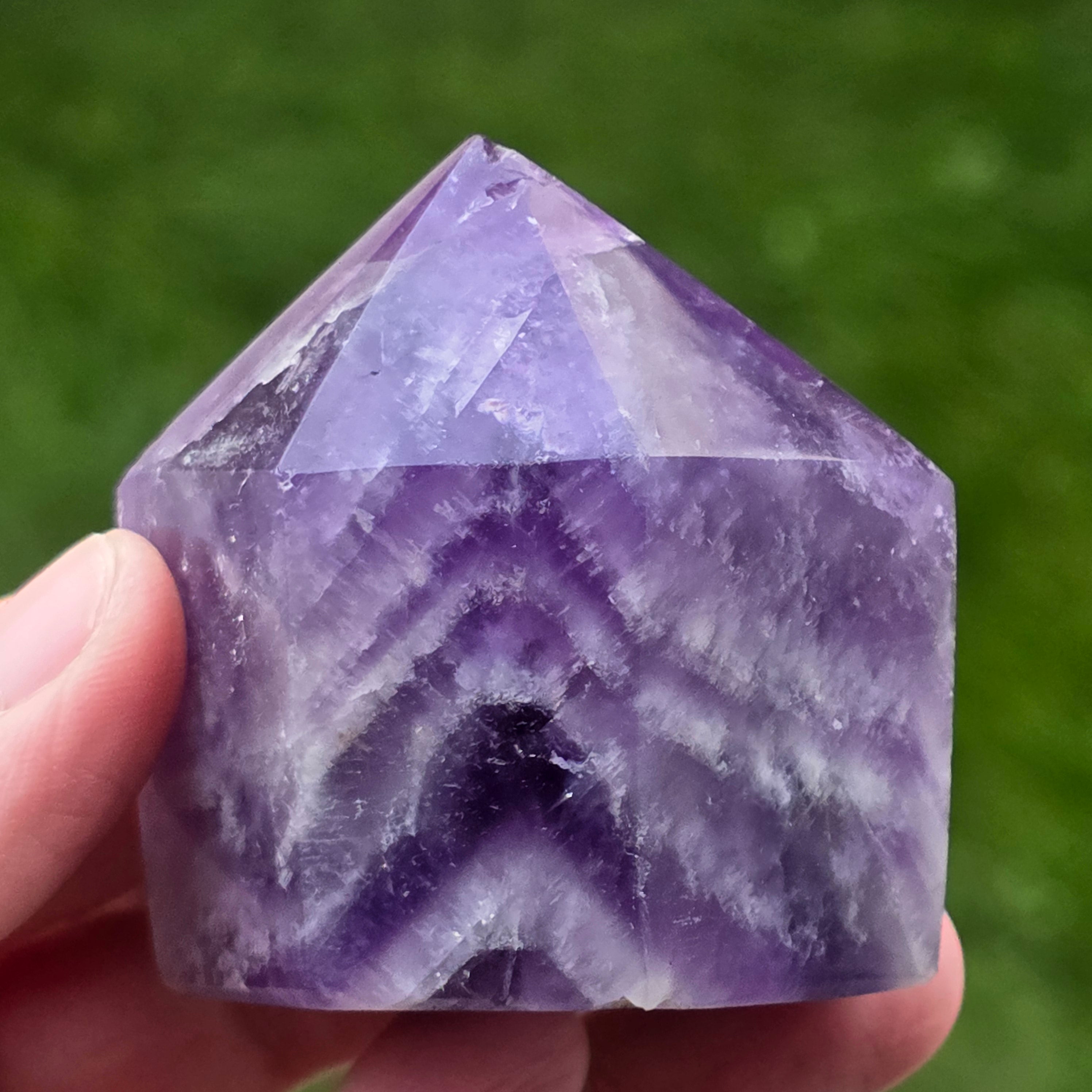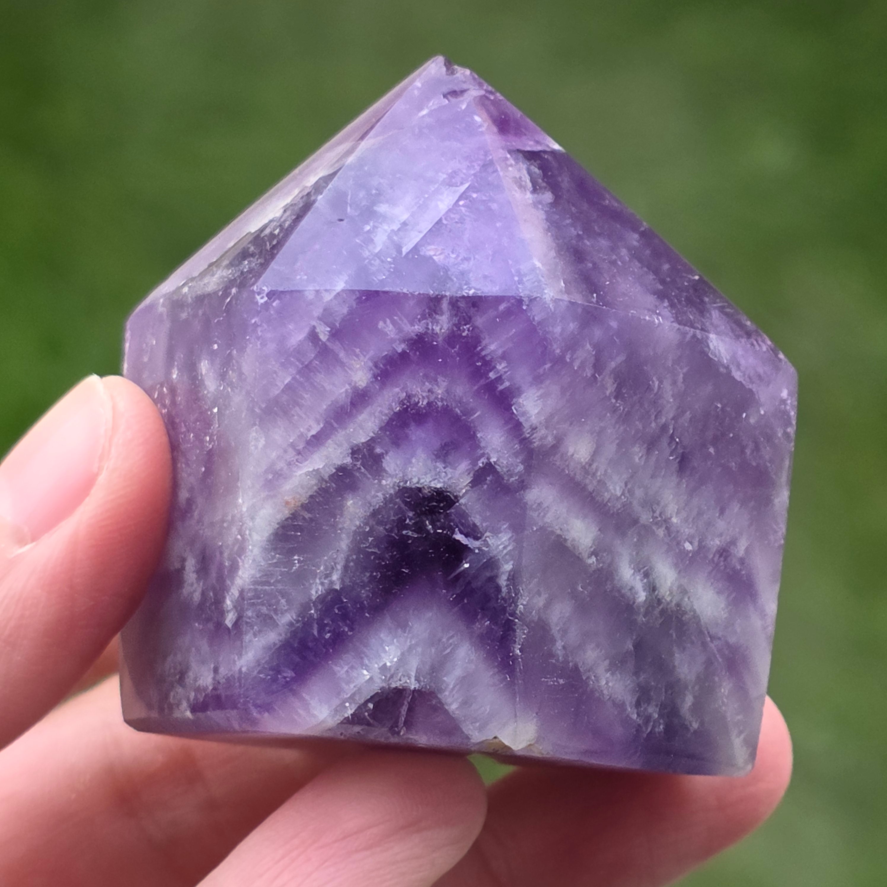 L'améthyste Chevron est connue pour ses associations avec les chakras de la couronne et du troisième œil, augmentant l'intuition et la capacité de prendre des décisions.