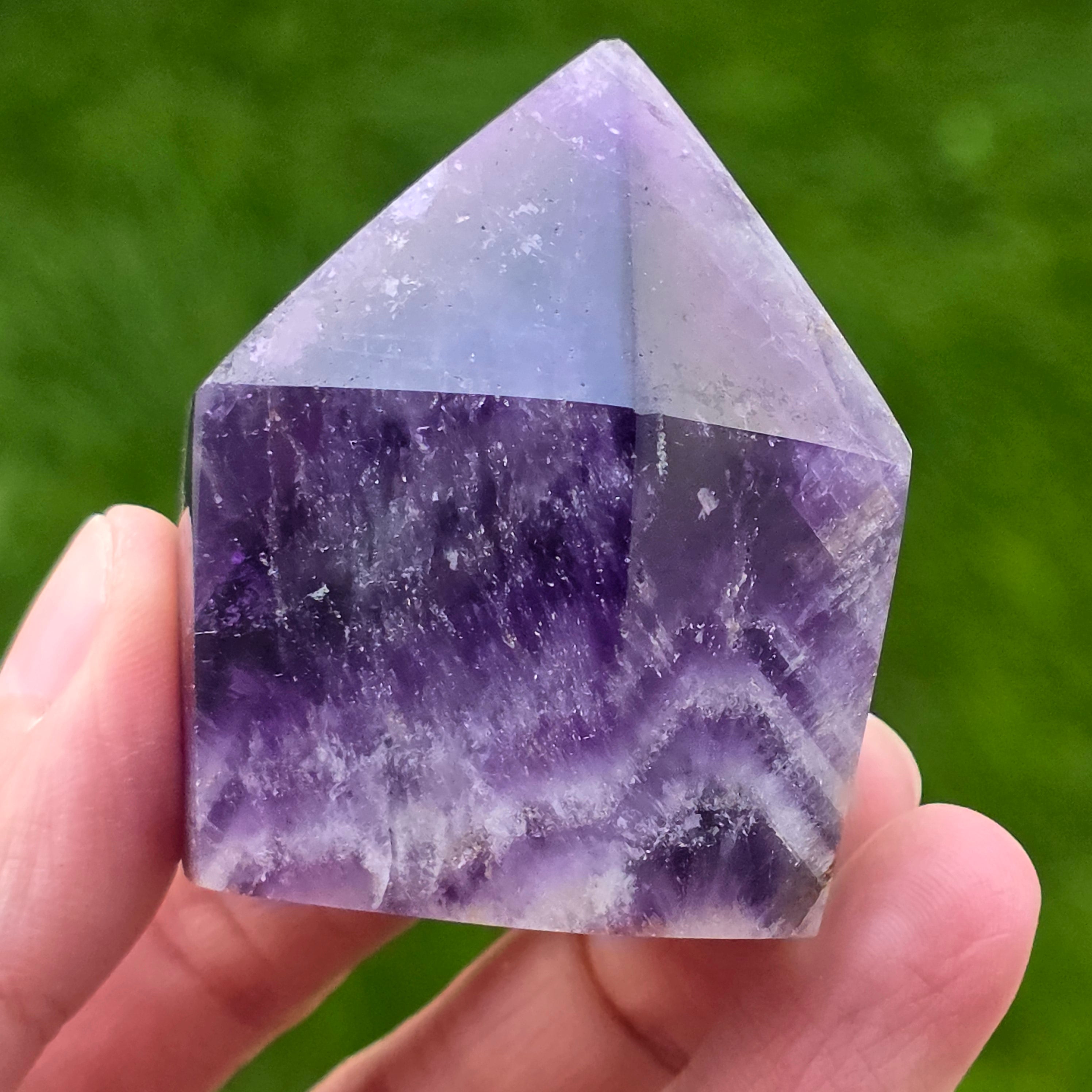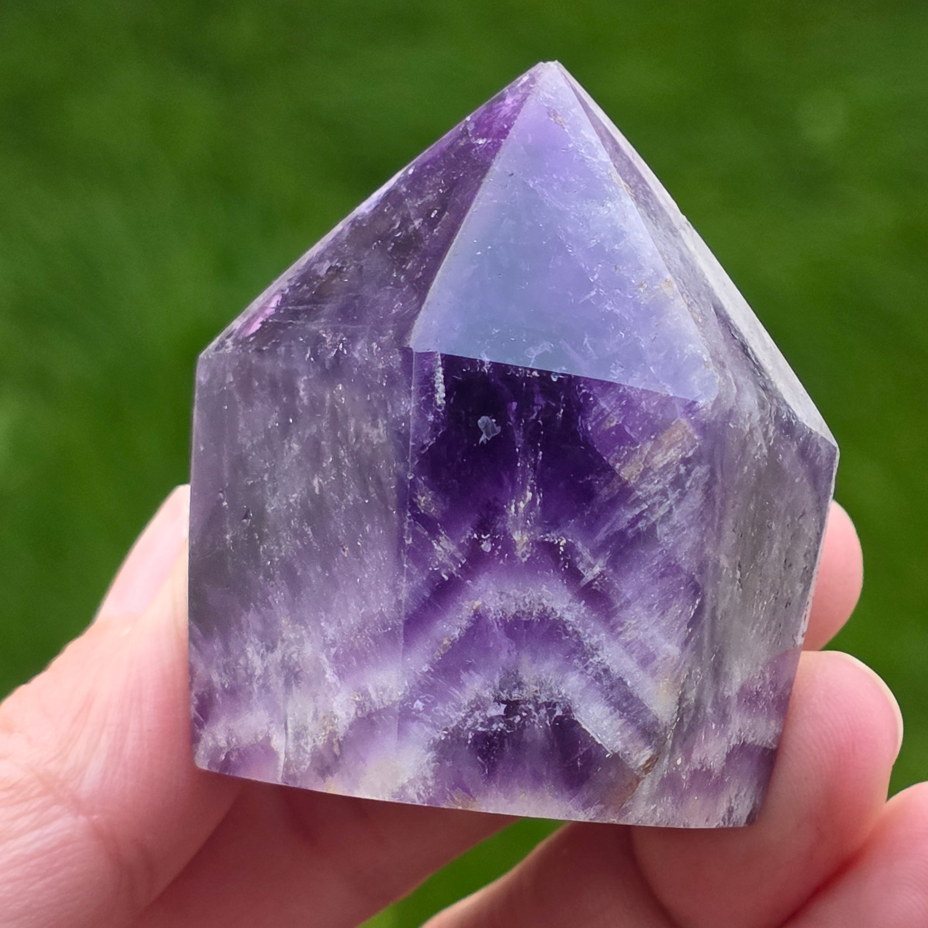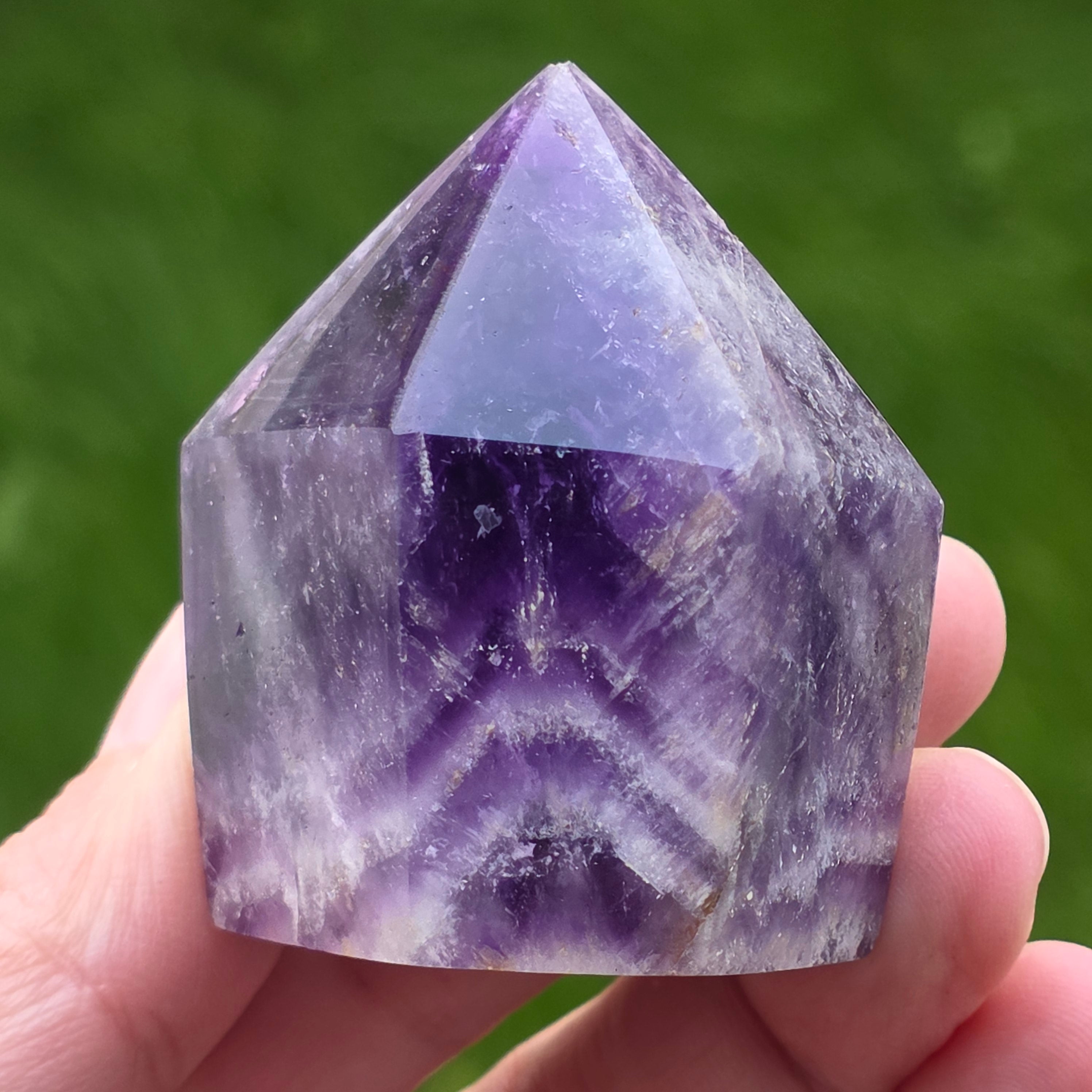 L'améthyste Chevron est connue pour ses associations avec les chakras de la couronne et du troisième œil, augmentant l'intuition et la capacité de prendre des décisions.
