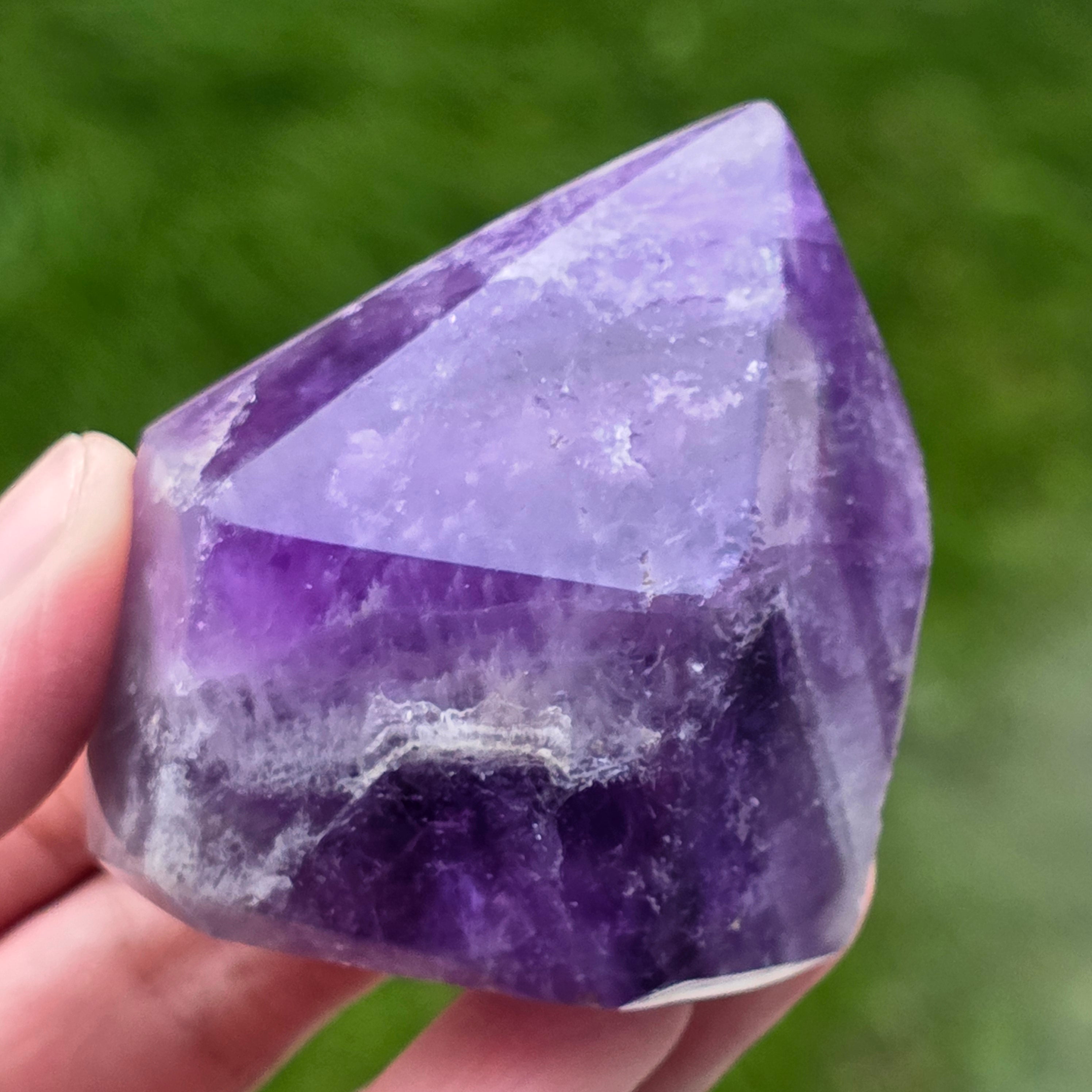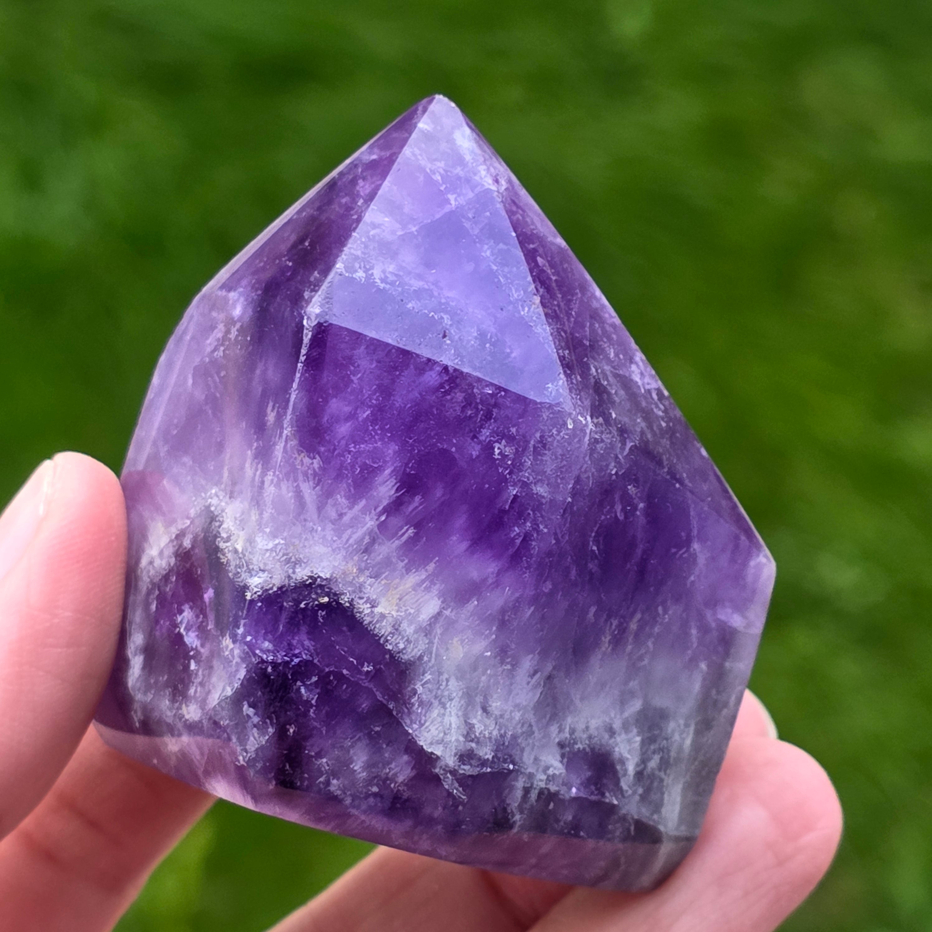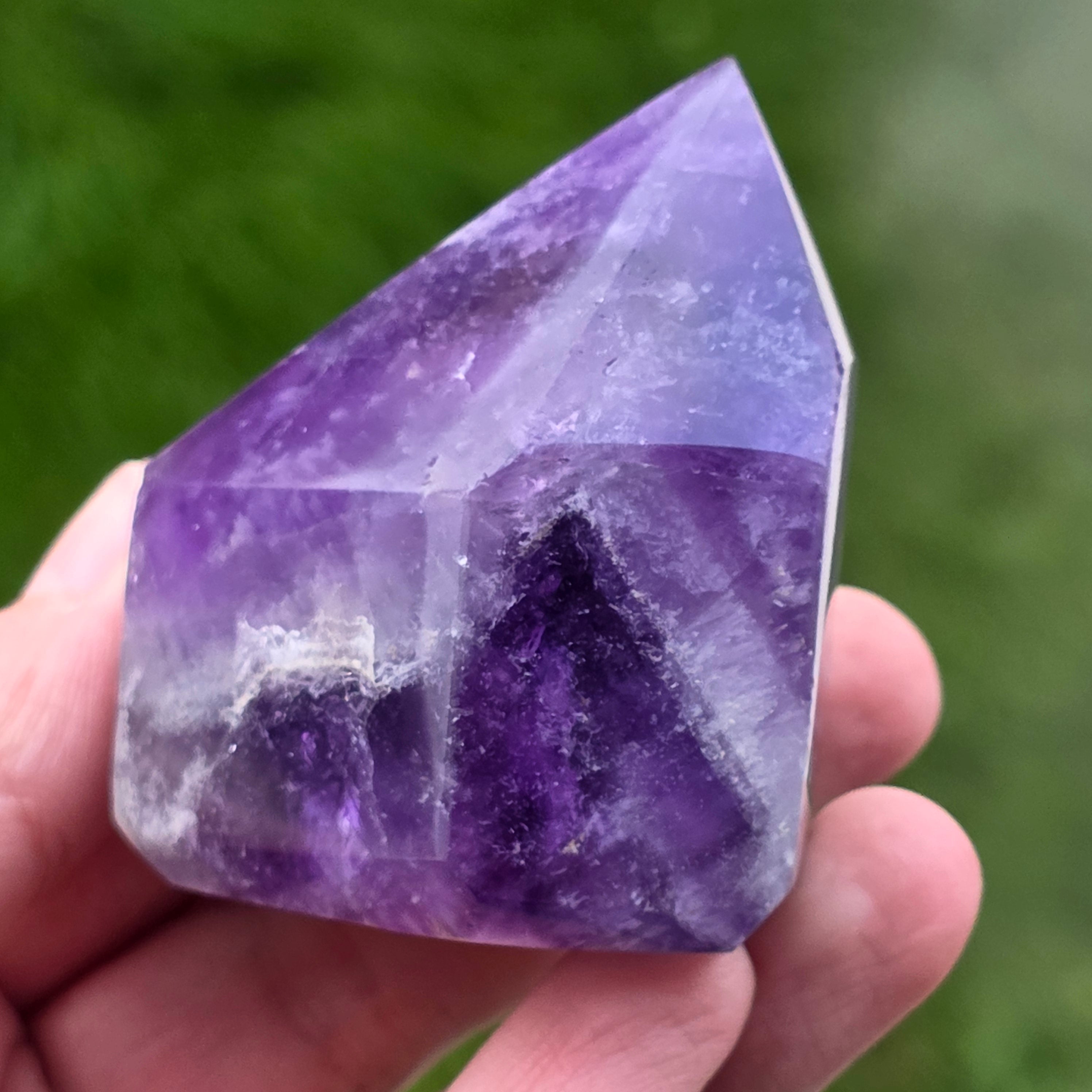 L'améthyste Chevron est connue pour ses associations avec les chakras de la couronne et du troisième œil, augmentant l'intuition et la capacité de prendre des décisions.
