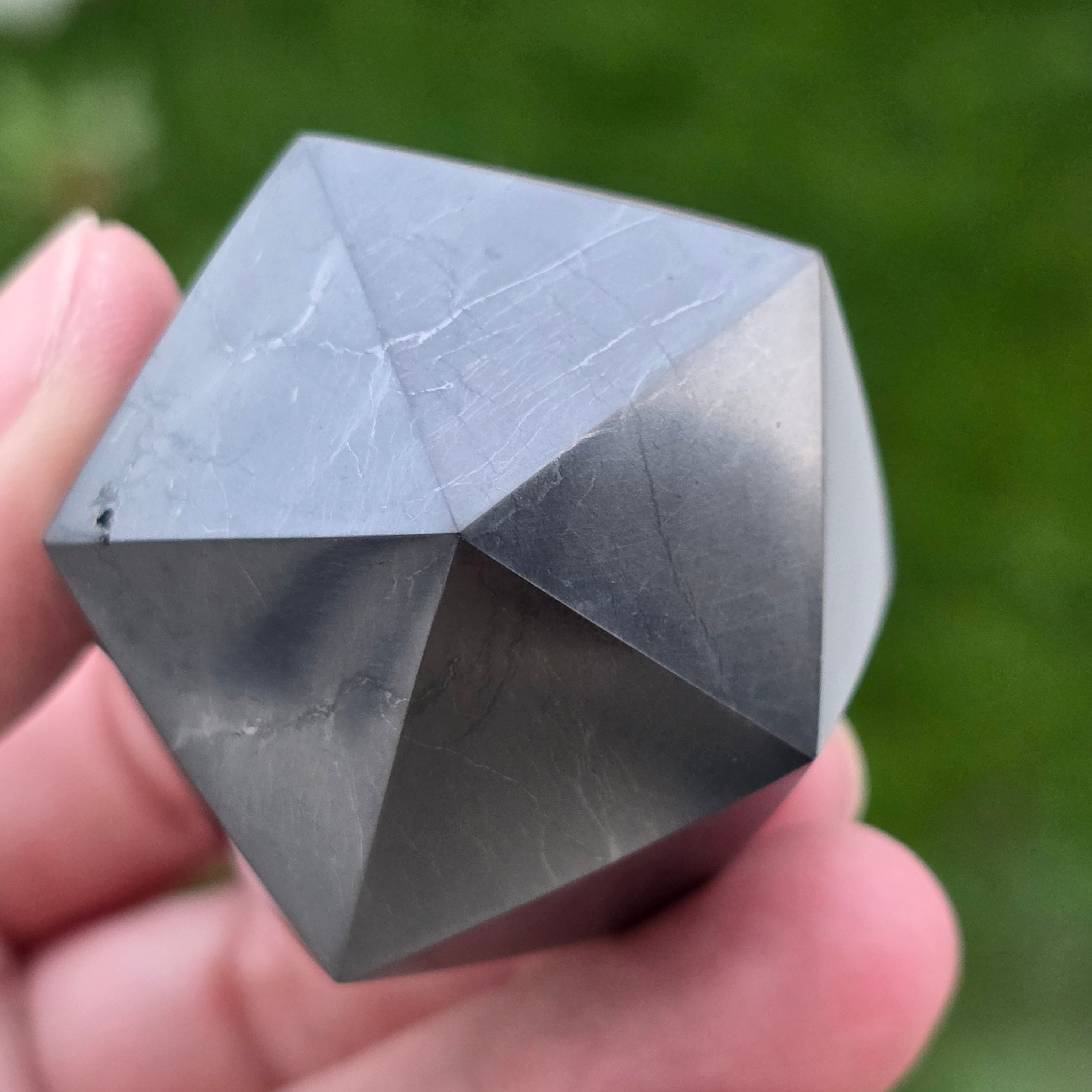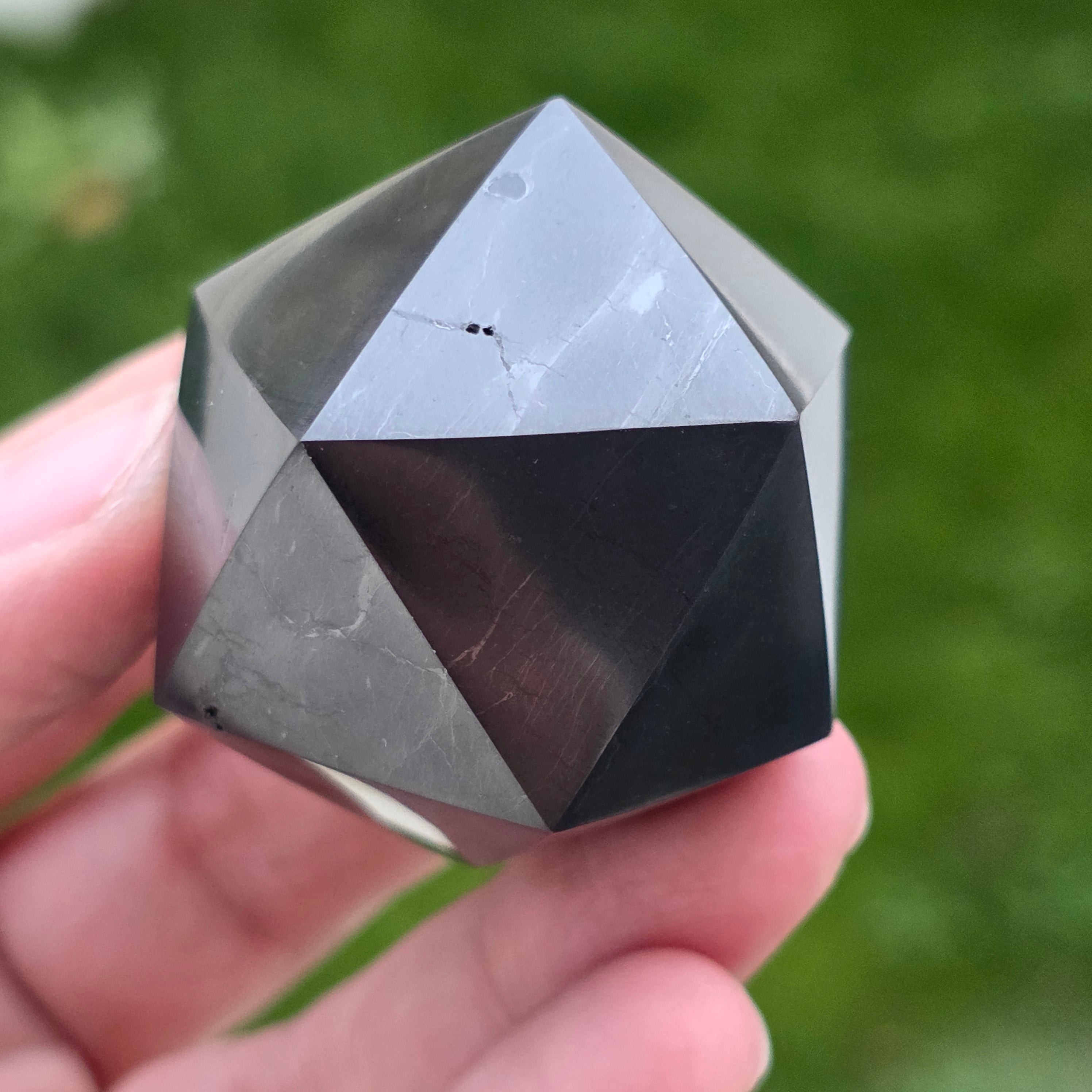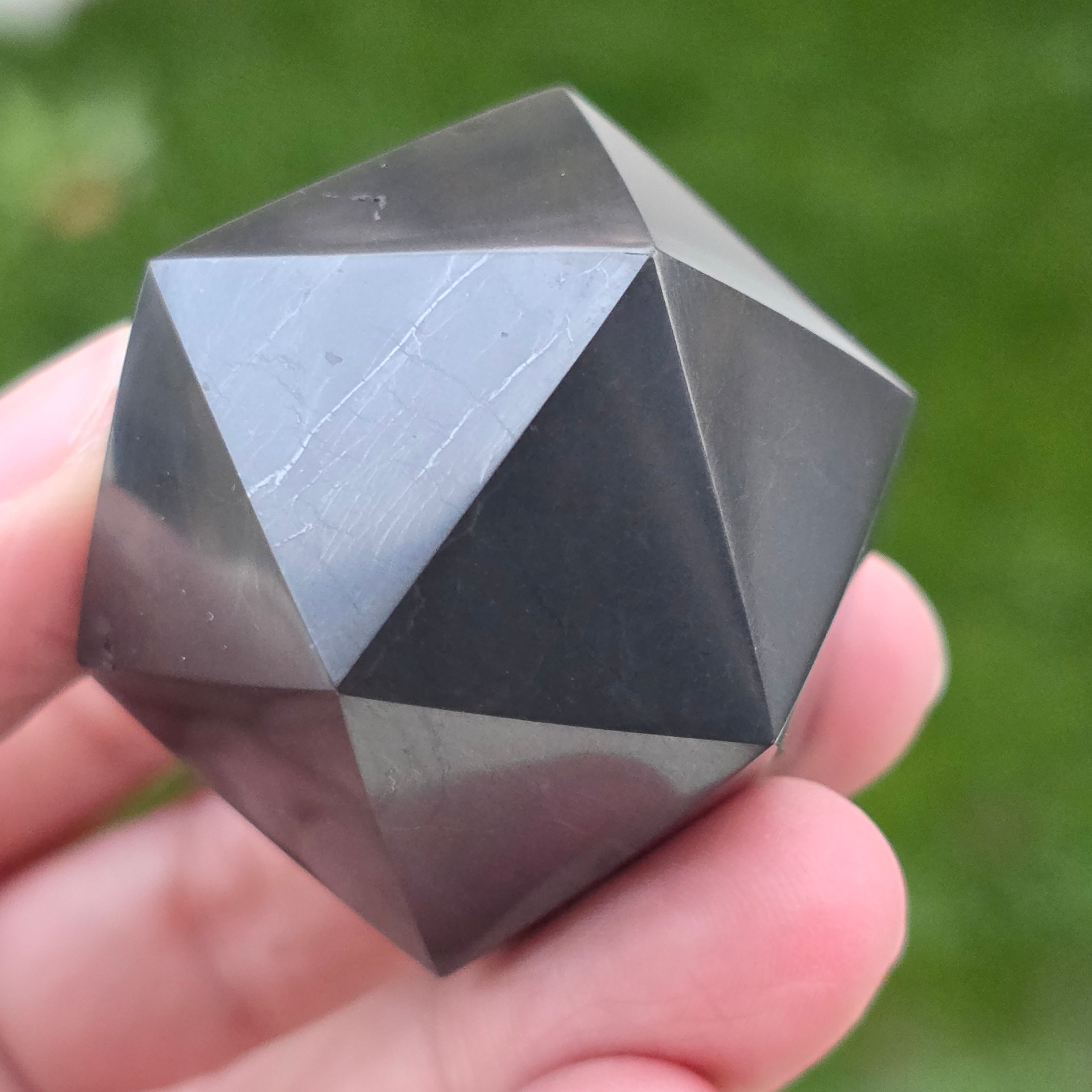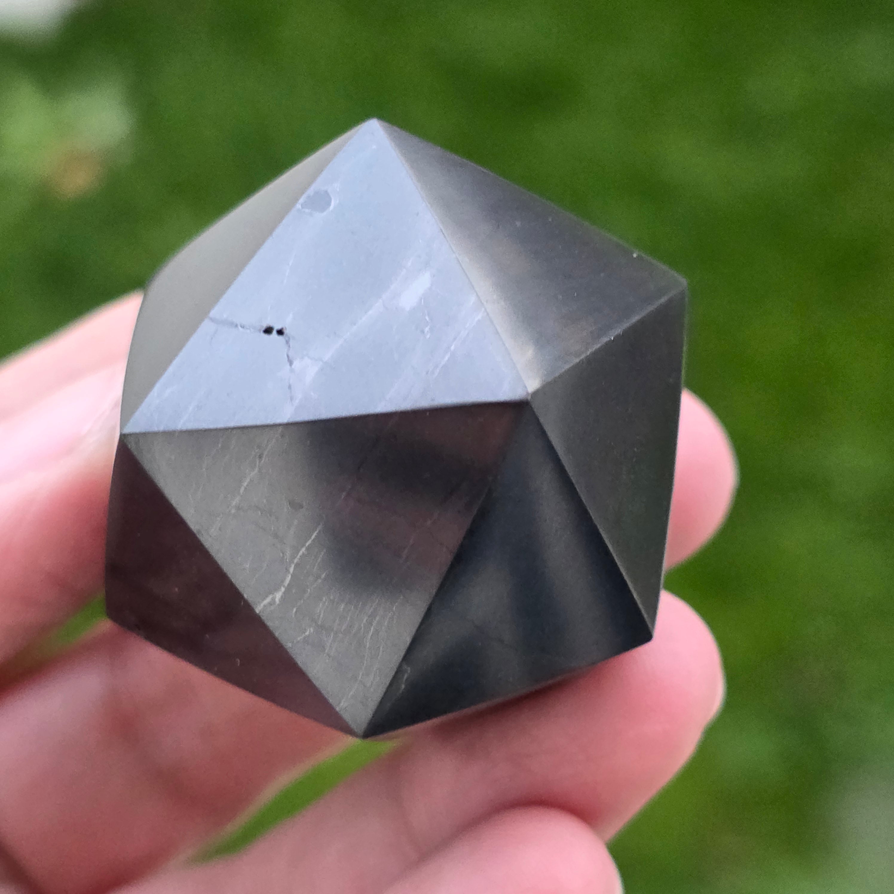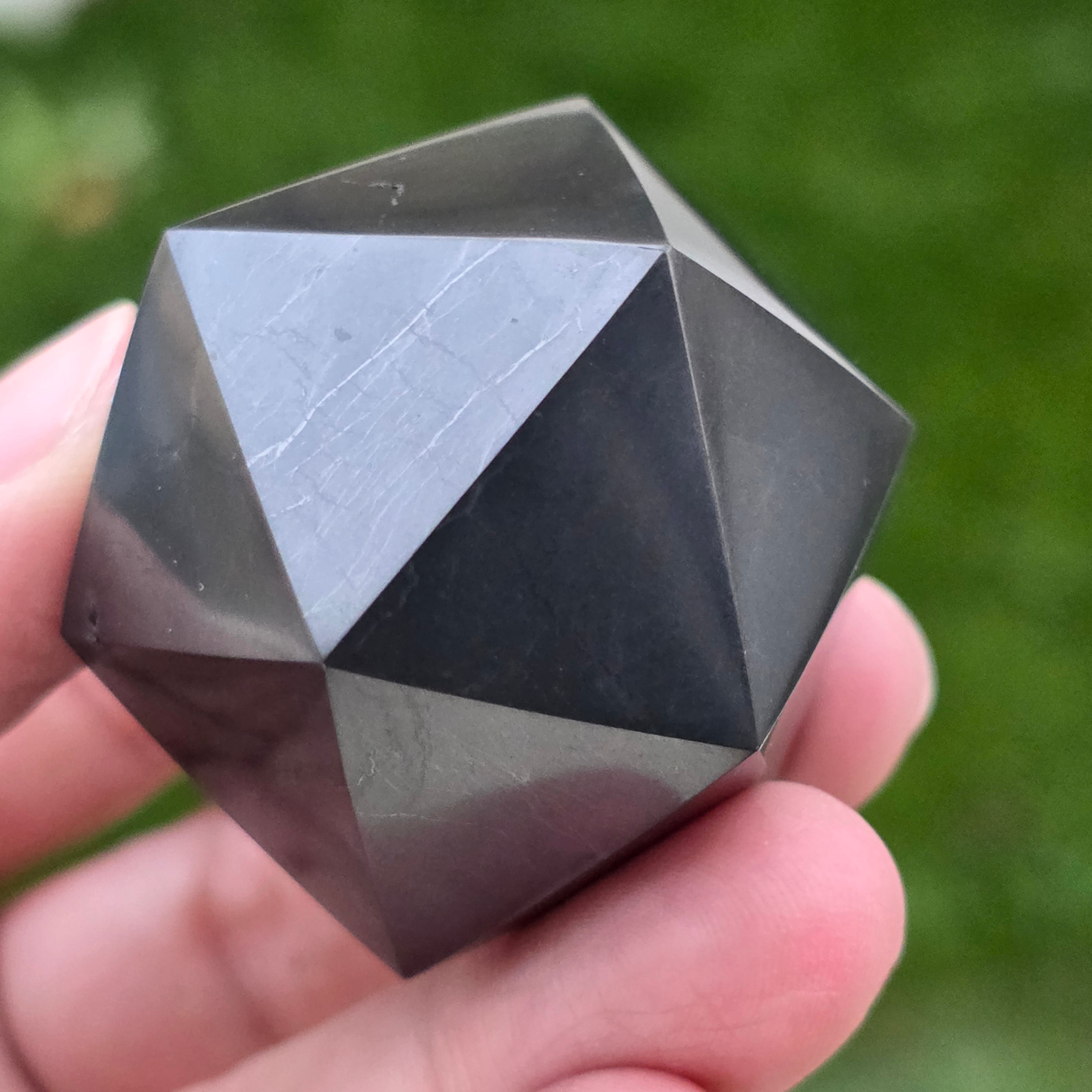 L'icosaèdre en shungite peut être utilisé dans les espaces de détente, pendant la méditation ou placé dans des lieux dédiés à l'équilibre émotionnel et à la tranquillité intérieure.