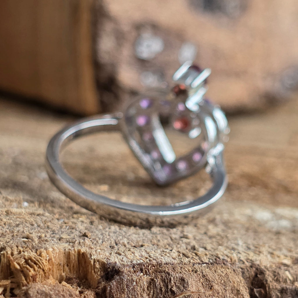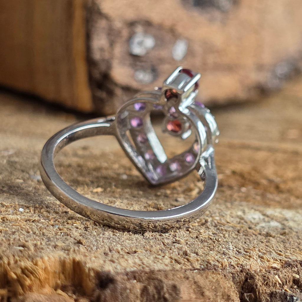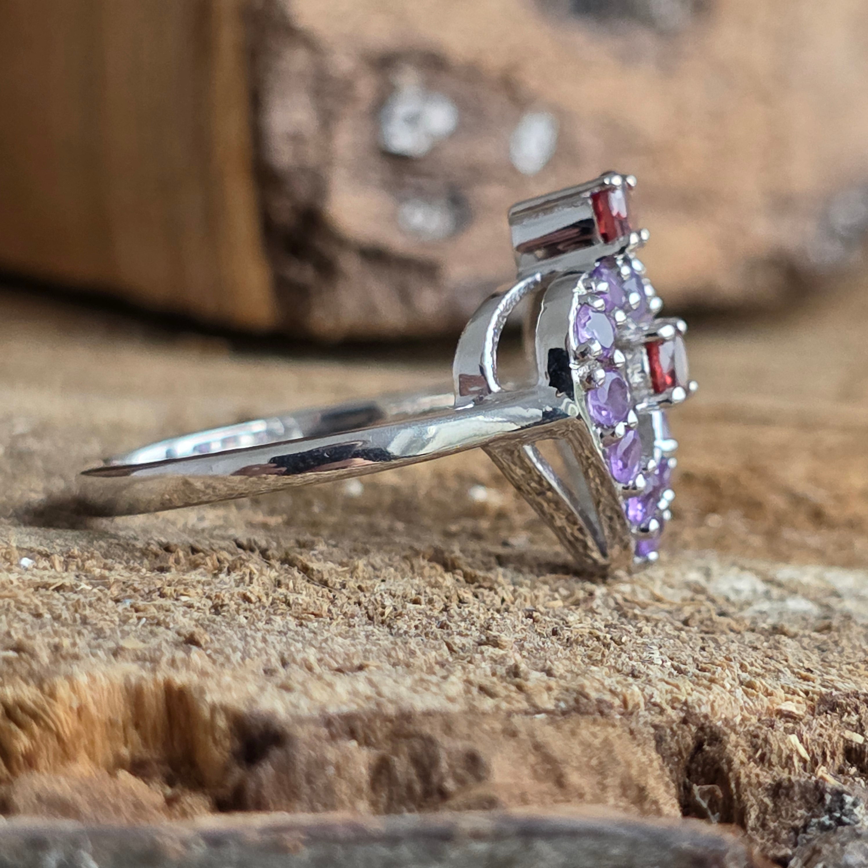 Un inel care vorbește despre iubire, echilibru și energie vie. Ametistul aduce claritate și liniște, iar Granatul aprinde pasiunea și curajul – împreună, ele creează o armonie perfectă între inimă și minte.