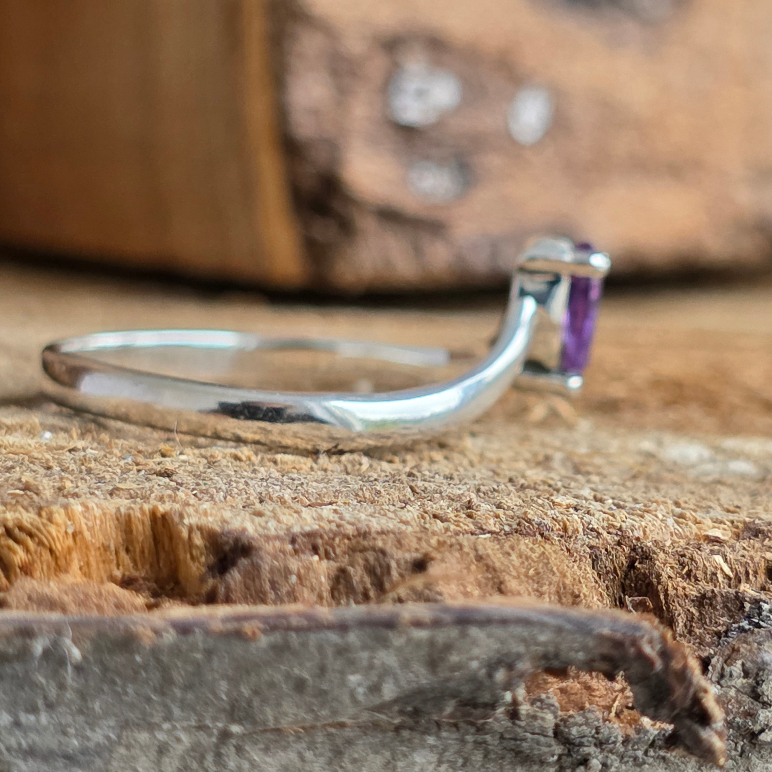 Simplu, dar plin de grație, acest inel din argint 925 pune în valoare claritatea și lumina ametistului natural, piatra echilibrului și a liniștii interioare.