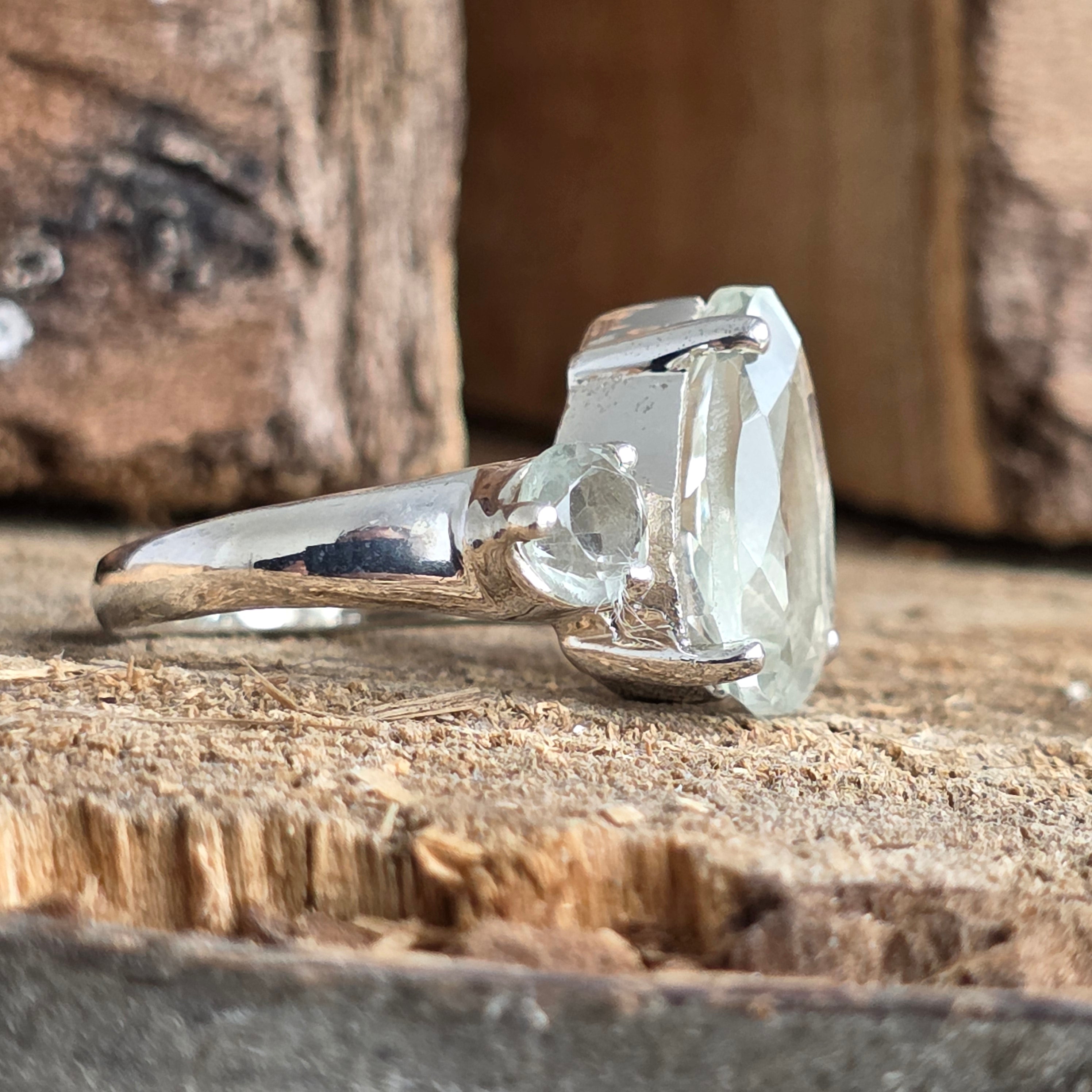 Un inel care respiră echilibru și prospețime — Green Amethyst, sau prasiolitul, aduce o notă subtilă de lumină și calm interior. În montura elegantă din argint 925, piatra își dezvăluie nuanțele pale de verde cristal, amintind de roua dimineții și de claritatea unei minți liniștite.