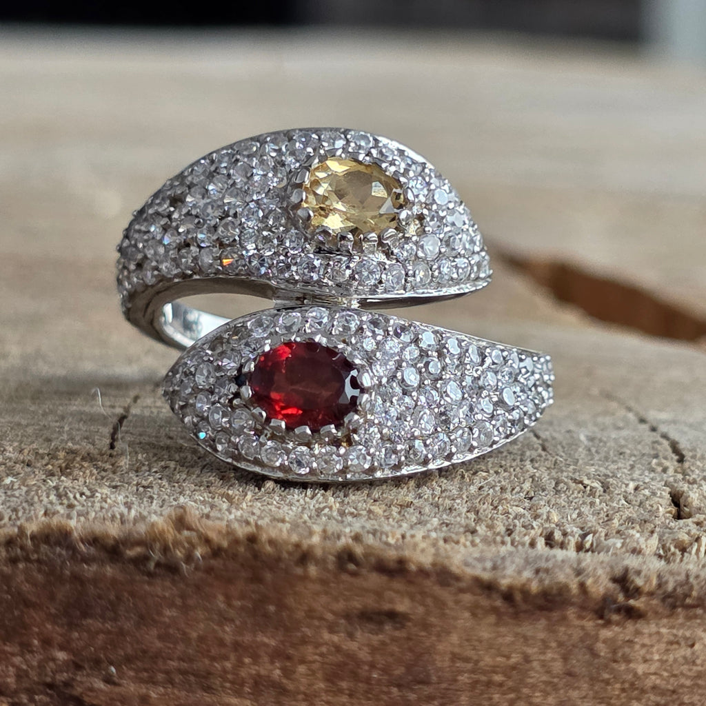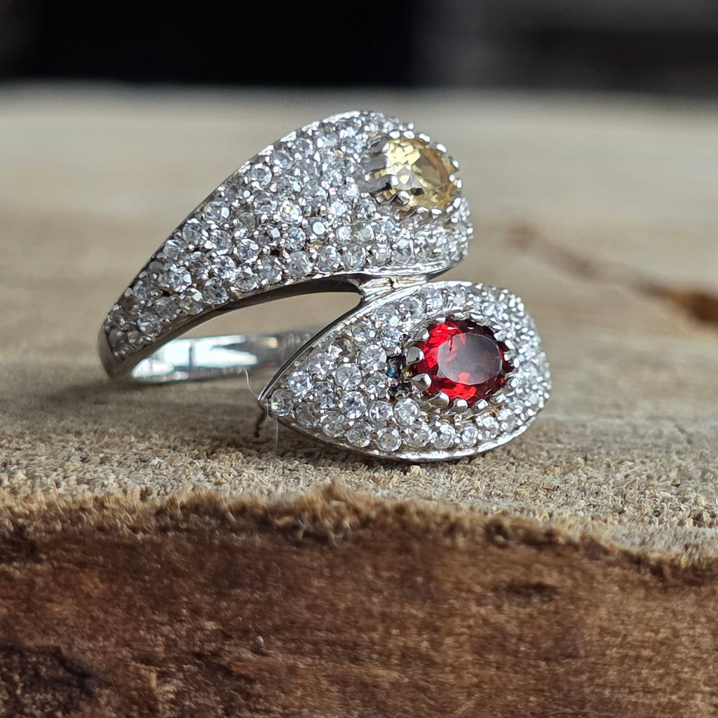 Description - Inel argint citrin, granat, zirconiu | TRIO