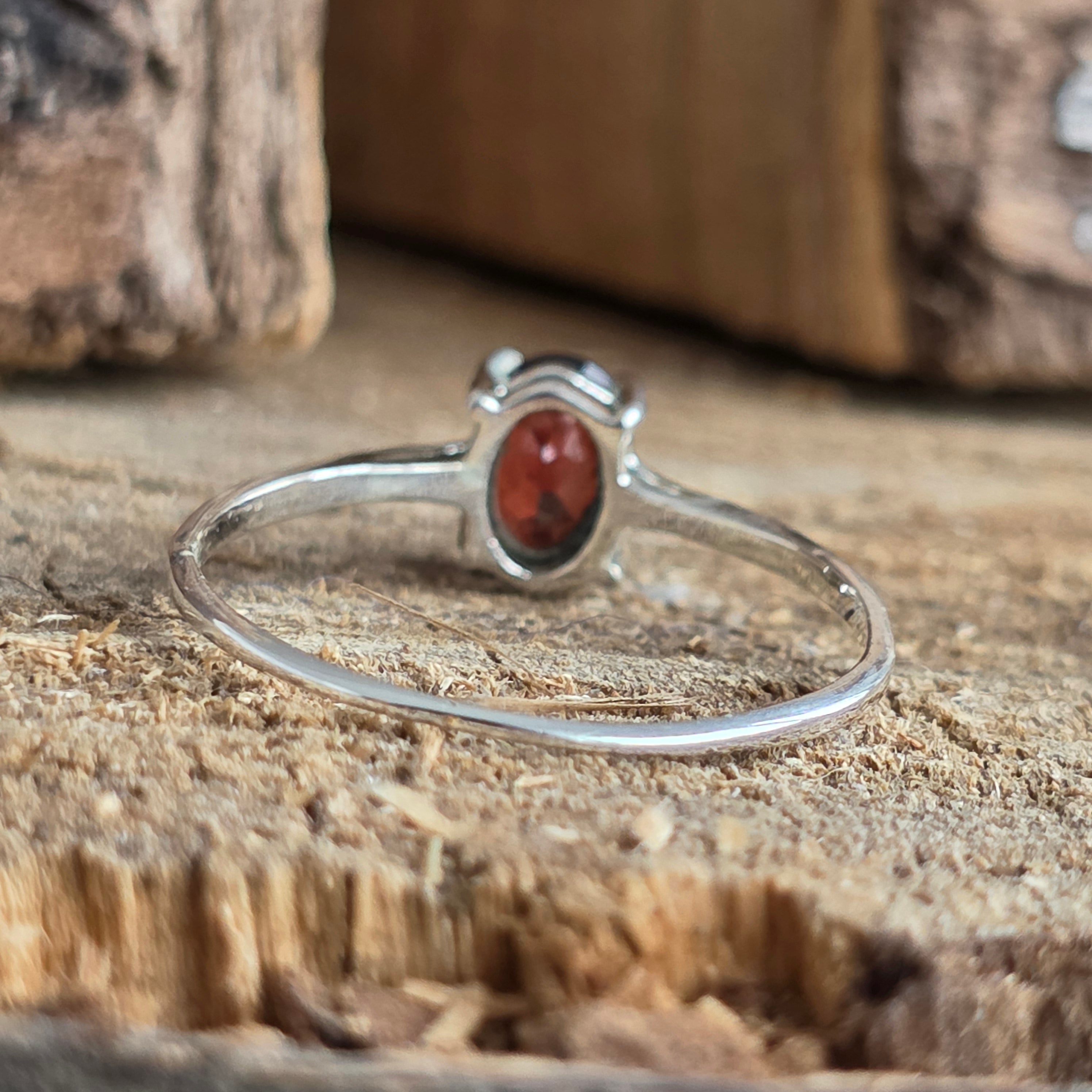 Cu o strălucire rubinie și o energie caldă, acest inel din argint 925 scoate în evidență intensitatea granatului natural, piatra pasiunii și a vitalității.