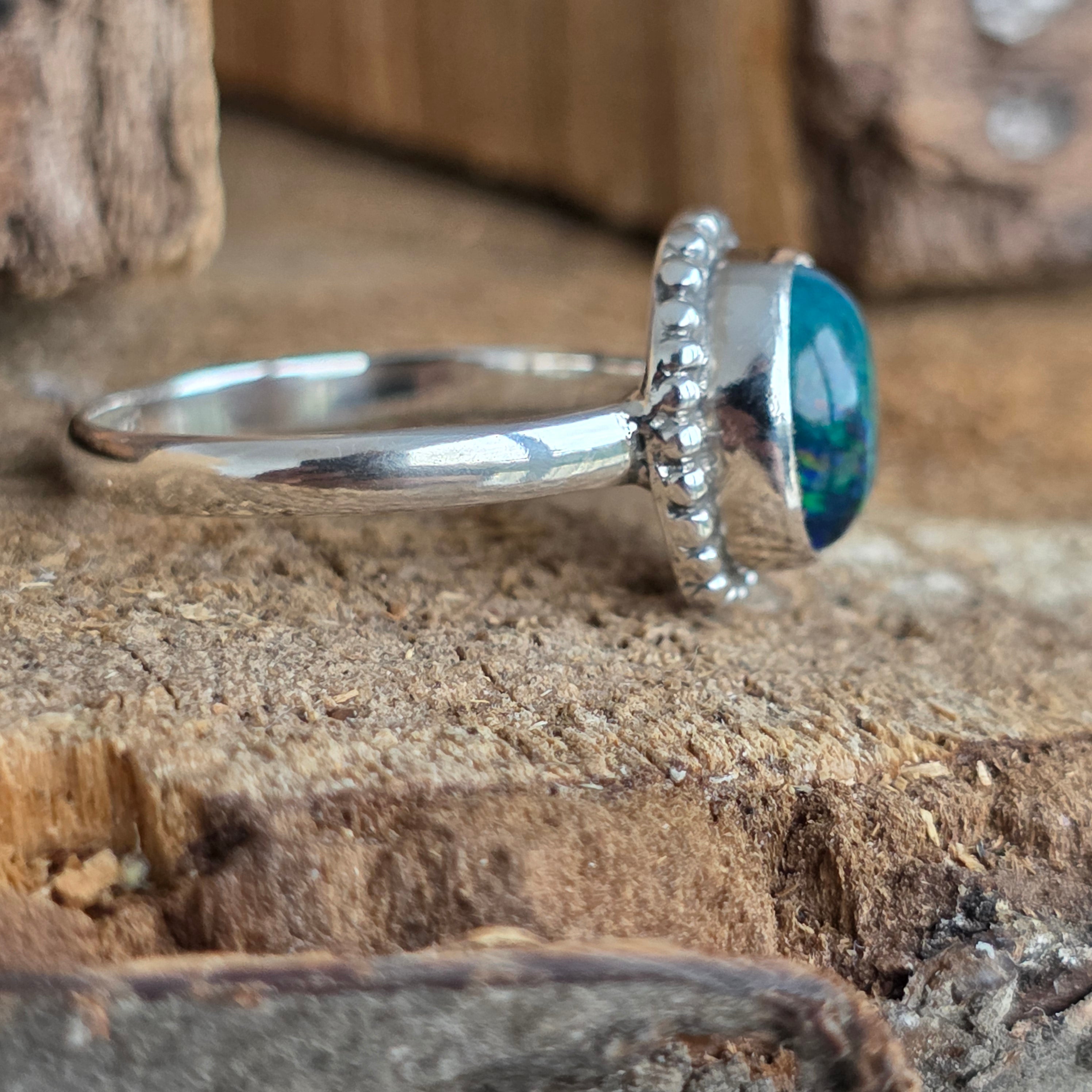 • Piatra: opal etiopian natural, tăietură ovală (oval shape) -model unicat. veti primi exact produsul prezentat în imagini.