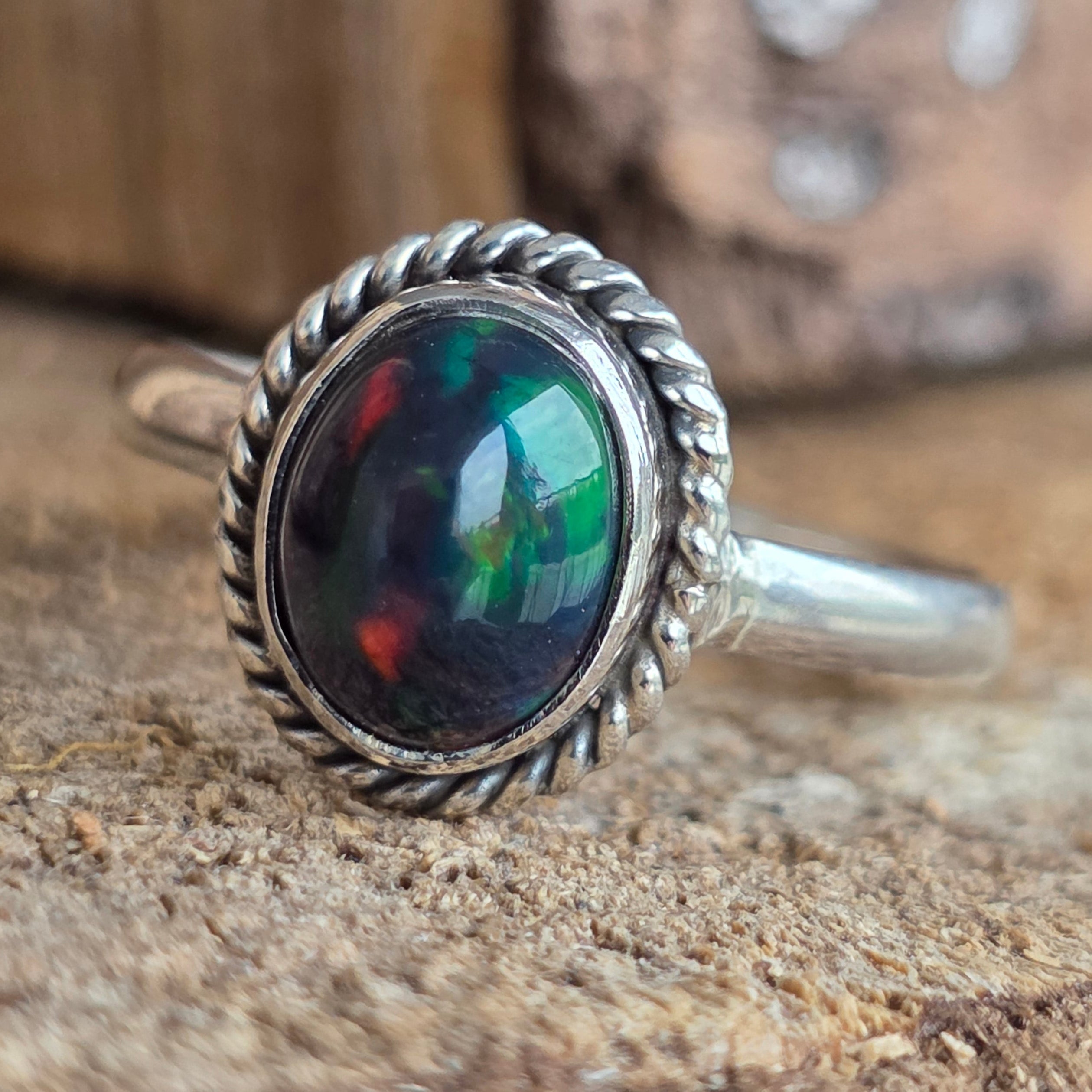 • Piatra: opal etiopian natural, tăietură ovală (oval shape) -model unicat. veti primi exact produsul prezentat în imagini.