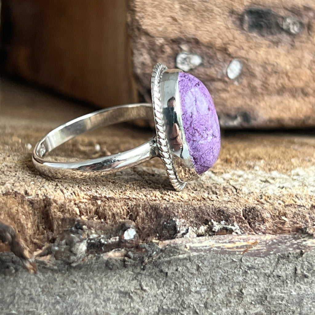 Un inel rafinat din argint 925, cu o piatră naturală de Purpurit, în nuanțe vibrante de violet cu incluziuni pământii ce subliniază originea sa naturală. Modelul twisted wire conferă bijuteriei o eleganță atemporală, potrivită atât pentru purtare zilnică, cât și pentru ocazii speciale.