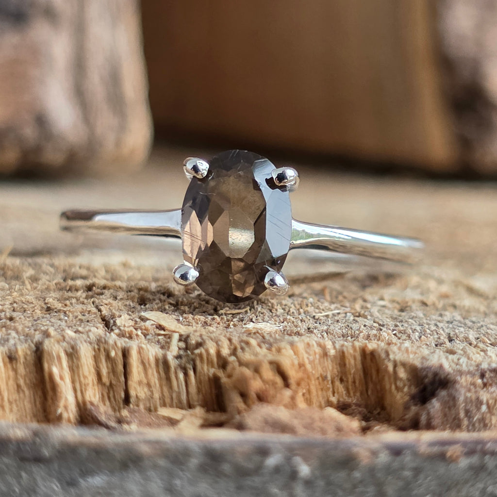 Elegant și misterios, acest inel din argint 925 pune în valoare profunzimea translucidă a topazului fumuriu, piatra ancorării și a înțelepciunii interioare.
