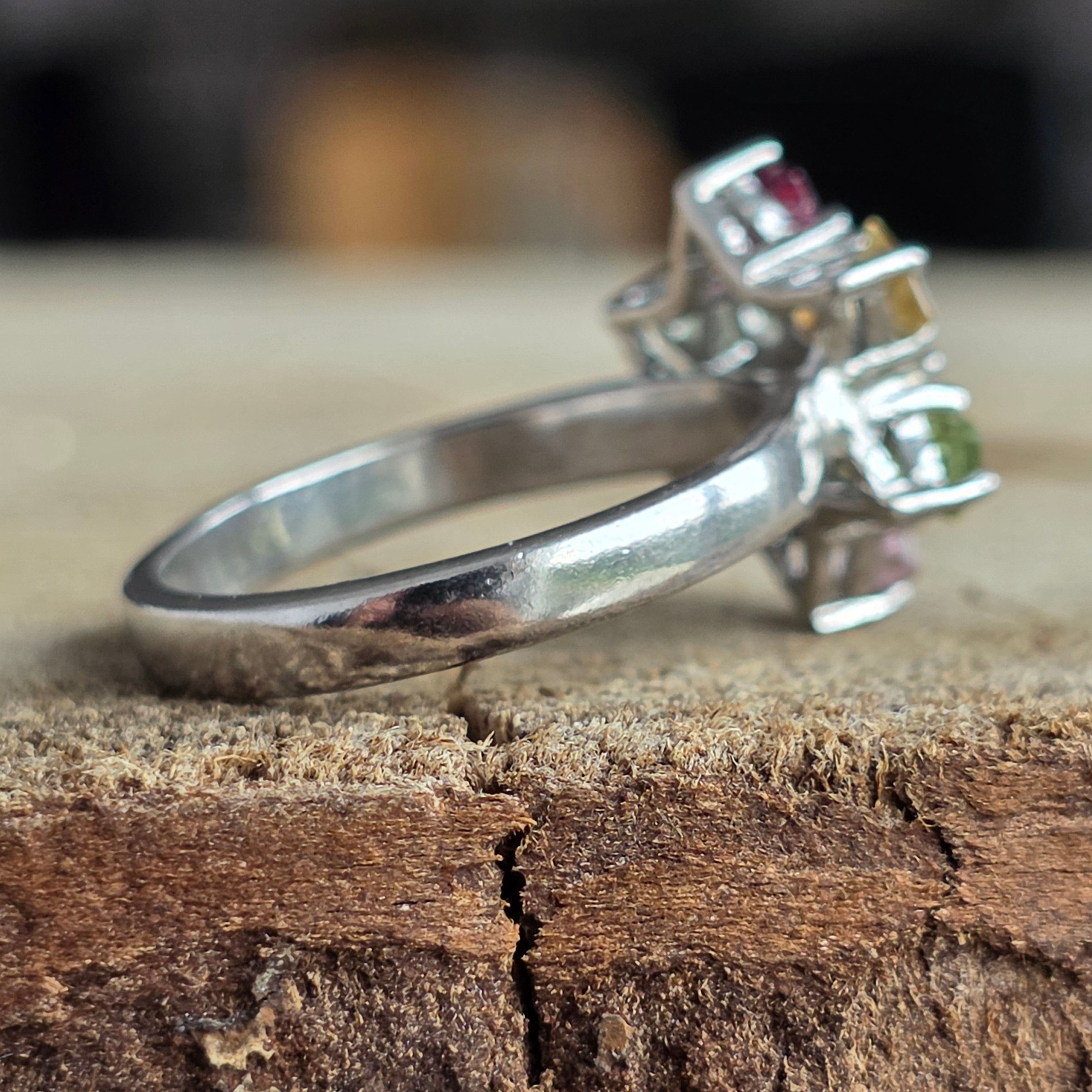 • Pietre: turmalină naturală multicoloră, tăieturi rotunde și trillion, fațetate