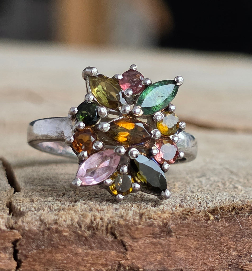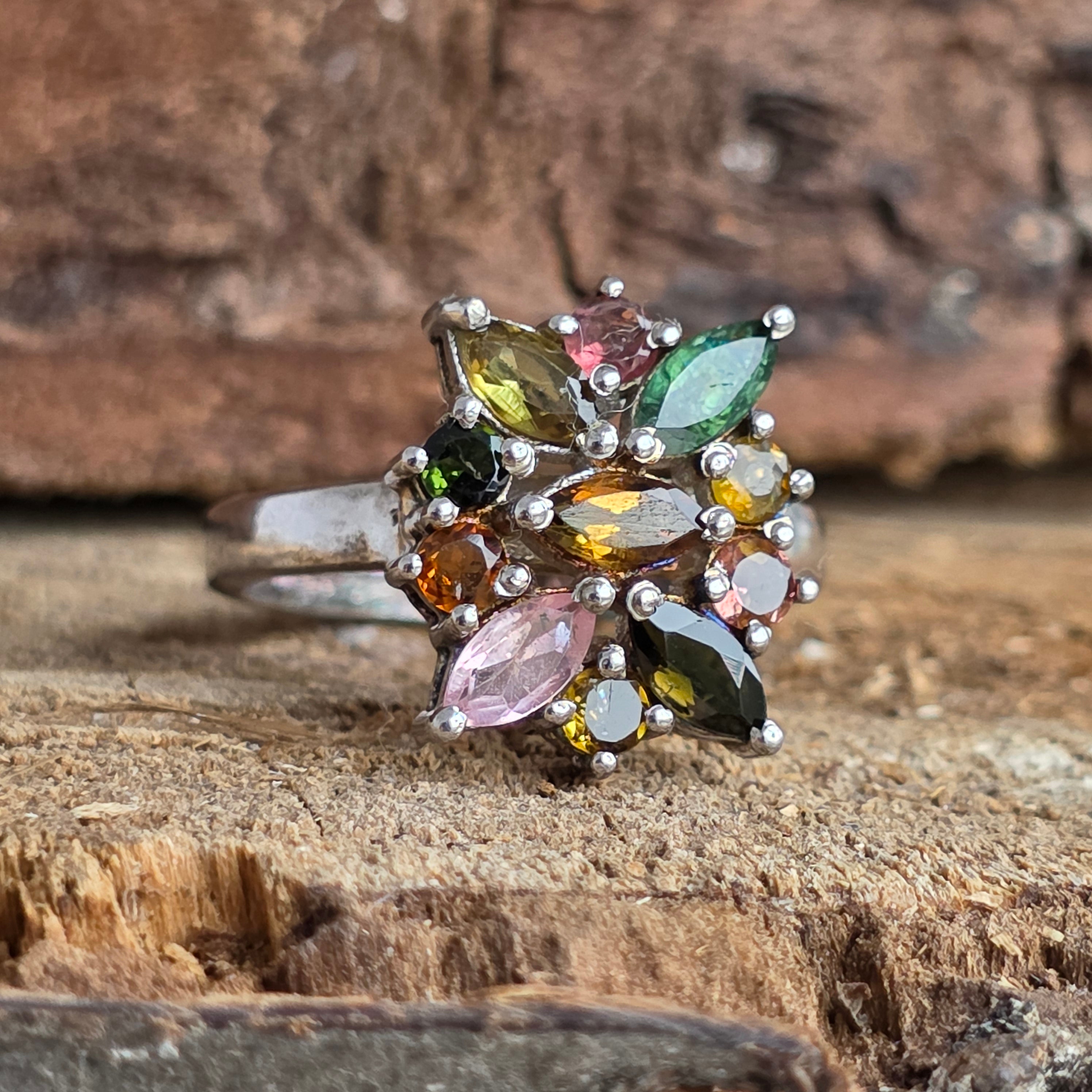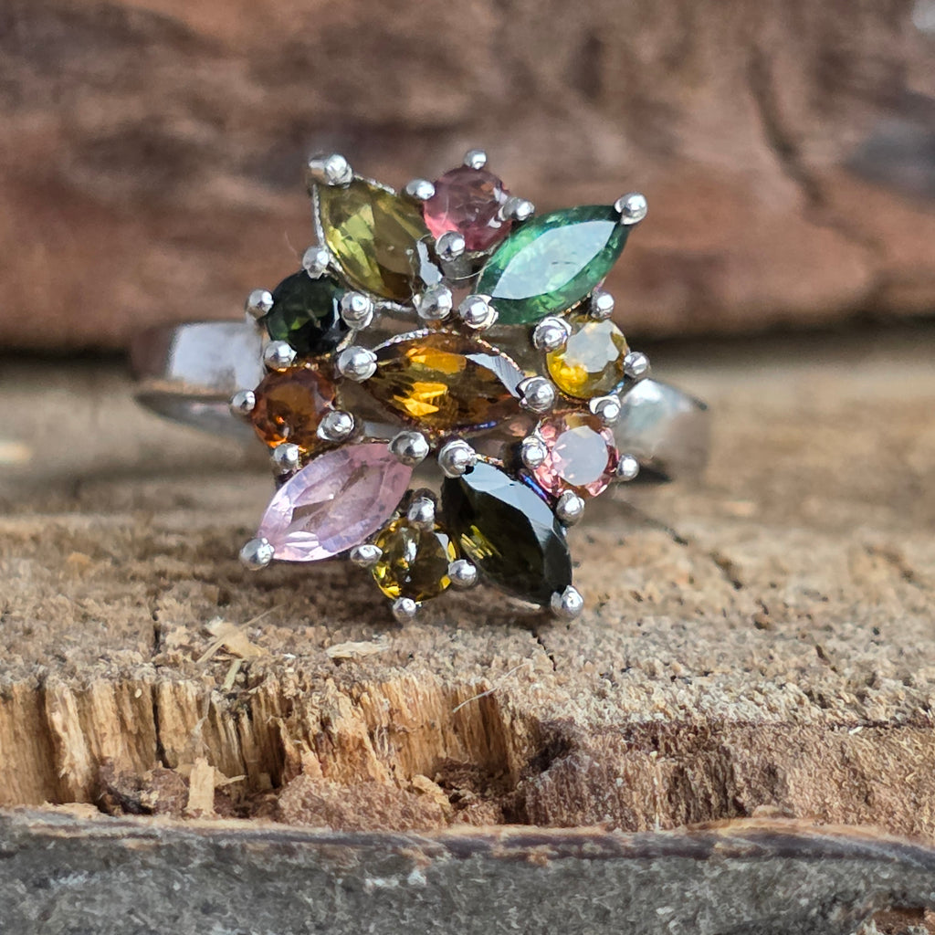 Inel argint turmalina mix | FLOWER 3