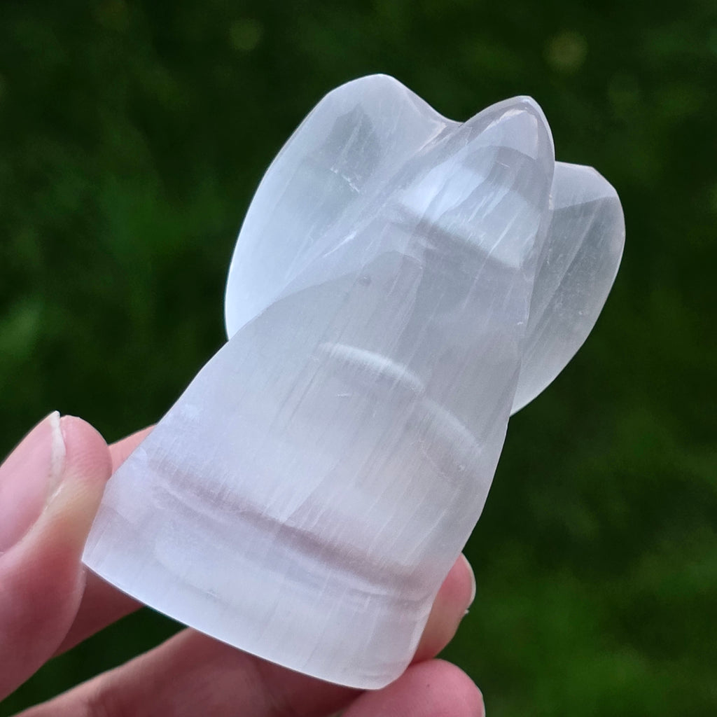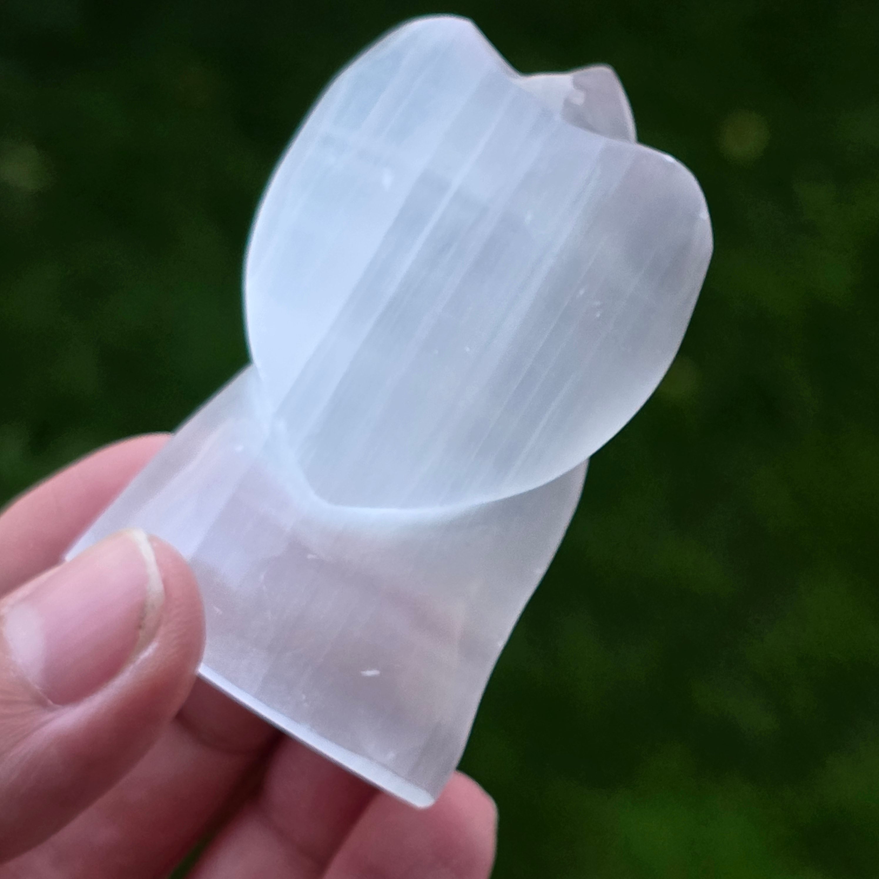 Îngerul din Selenit este una dintre cele mai delicate și luminoase sculpturi ce pot fi adăugate într-o colecție de minerale. Selenitul, cunoscut pentru strălucirea sa filigranată, aproape eterică, este un cristal care pare mereu să păstreze în interior o fărâmă de lumină. În această formă de înger, piatra devine mai mult decât un mineral: devine un simbol al protecției, al clarității și al păcii interioare.