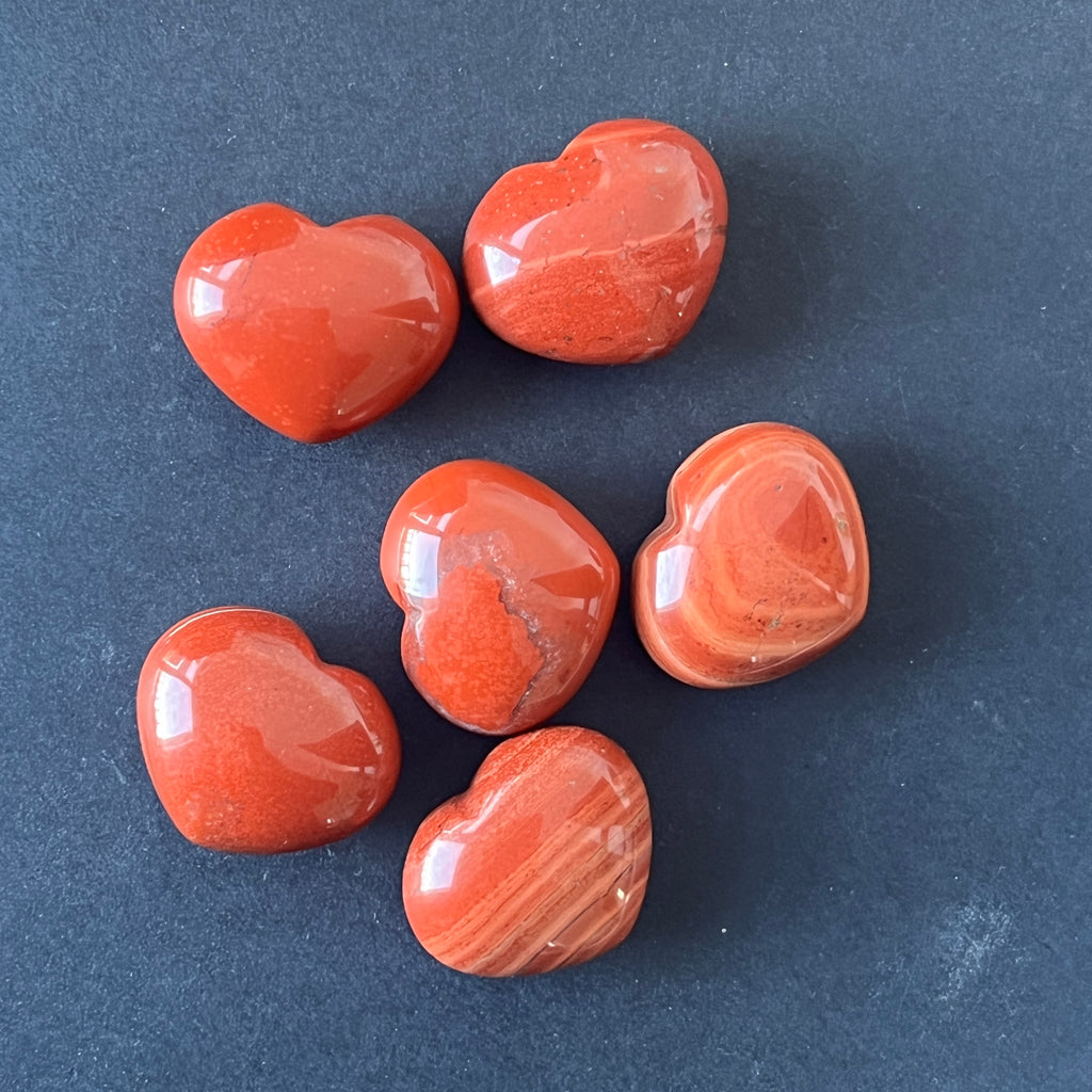 Inima din Jasp roșu este un simbol al stabilității, al pasiunii și al curajului blând. Nuanțele sale profunde de roșu, cu reflexe calde de pământ, amintesc de forța tăcută a rădăcinilor și de pulsul constant al vieții. Fiecare inimă este o creație unică a naturii, o piatră care pare să fi fost sculptată direct din inima planetei.