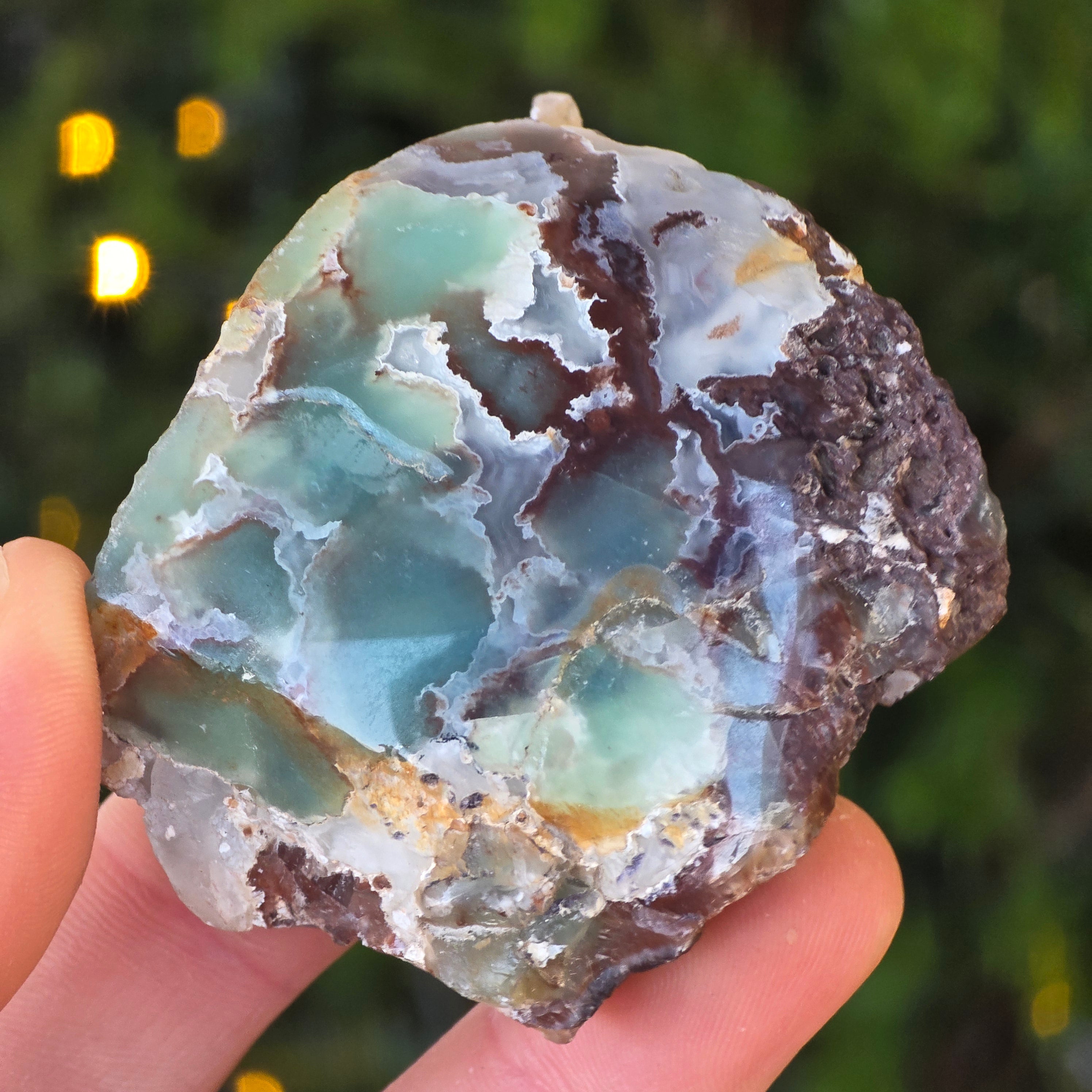 La pierre en polystage brute sur une face de calcedonie avec du chrome bleu-vert du Zimbabwe | Modèle 1