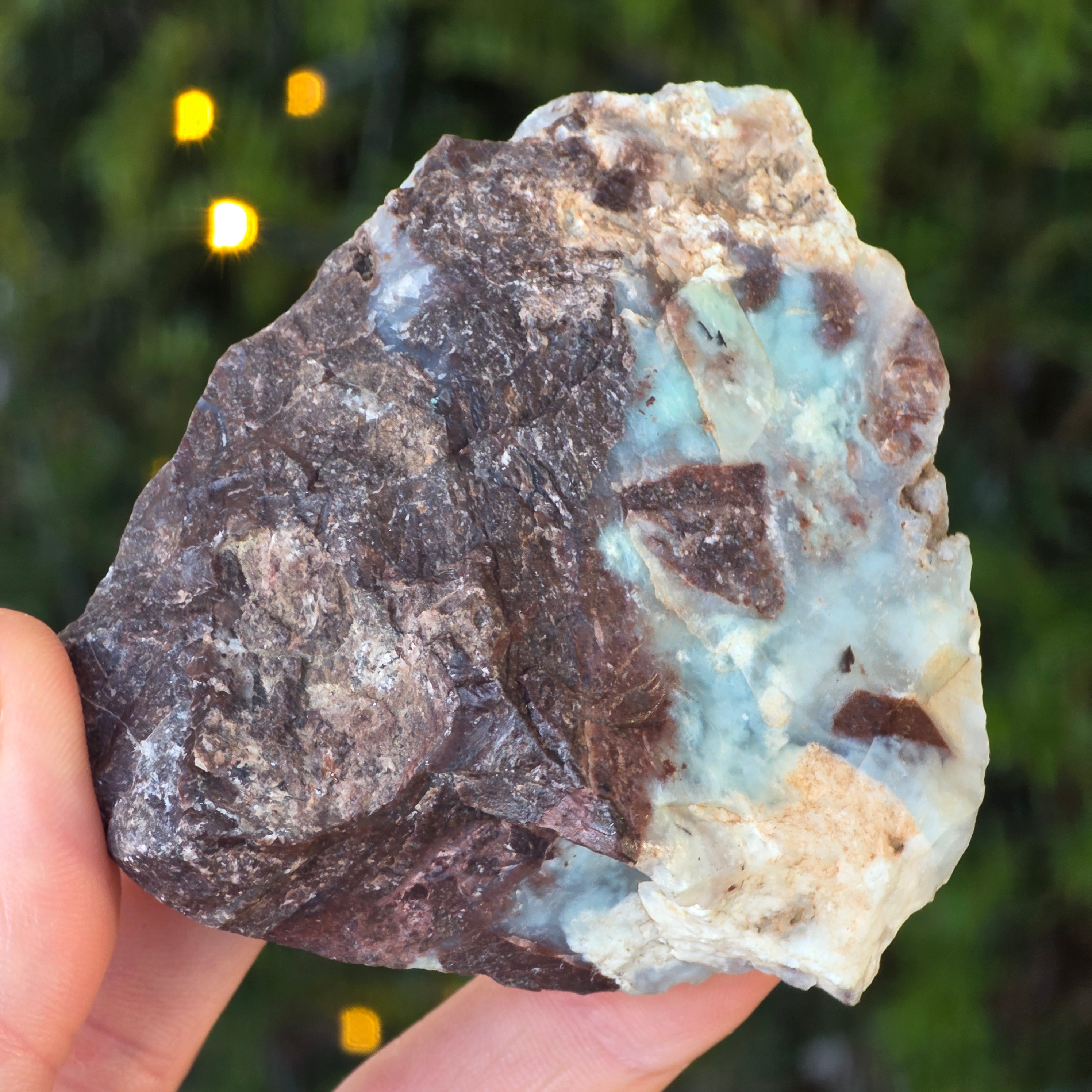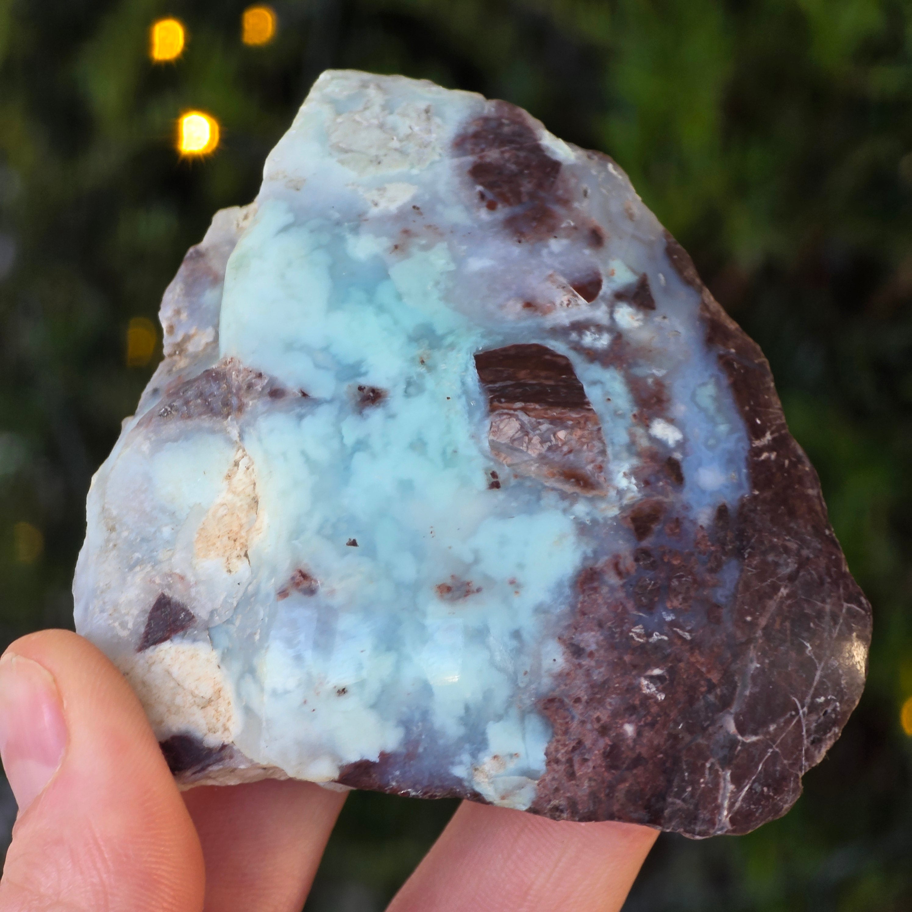 La pierre en polystage brute sur une face de calcedonie avec du chrome bleu-vert du Zimbabwe | Modèle 6