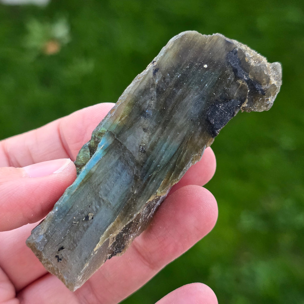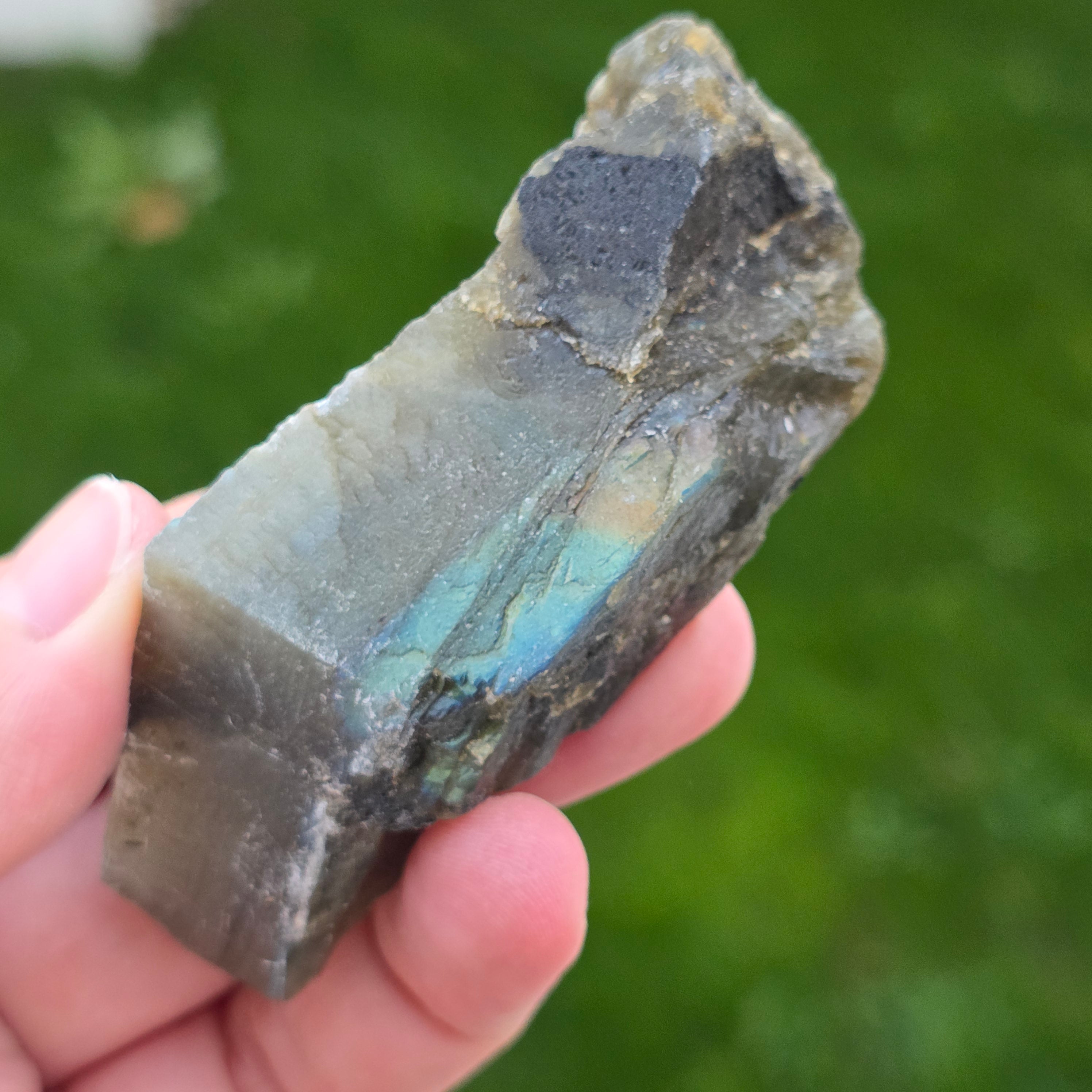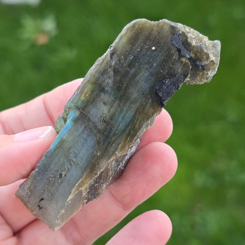 La labradorite est une pierre semi-précieuse avec des jeux de couleurs qui changent en fonction de l’angle de vue.