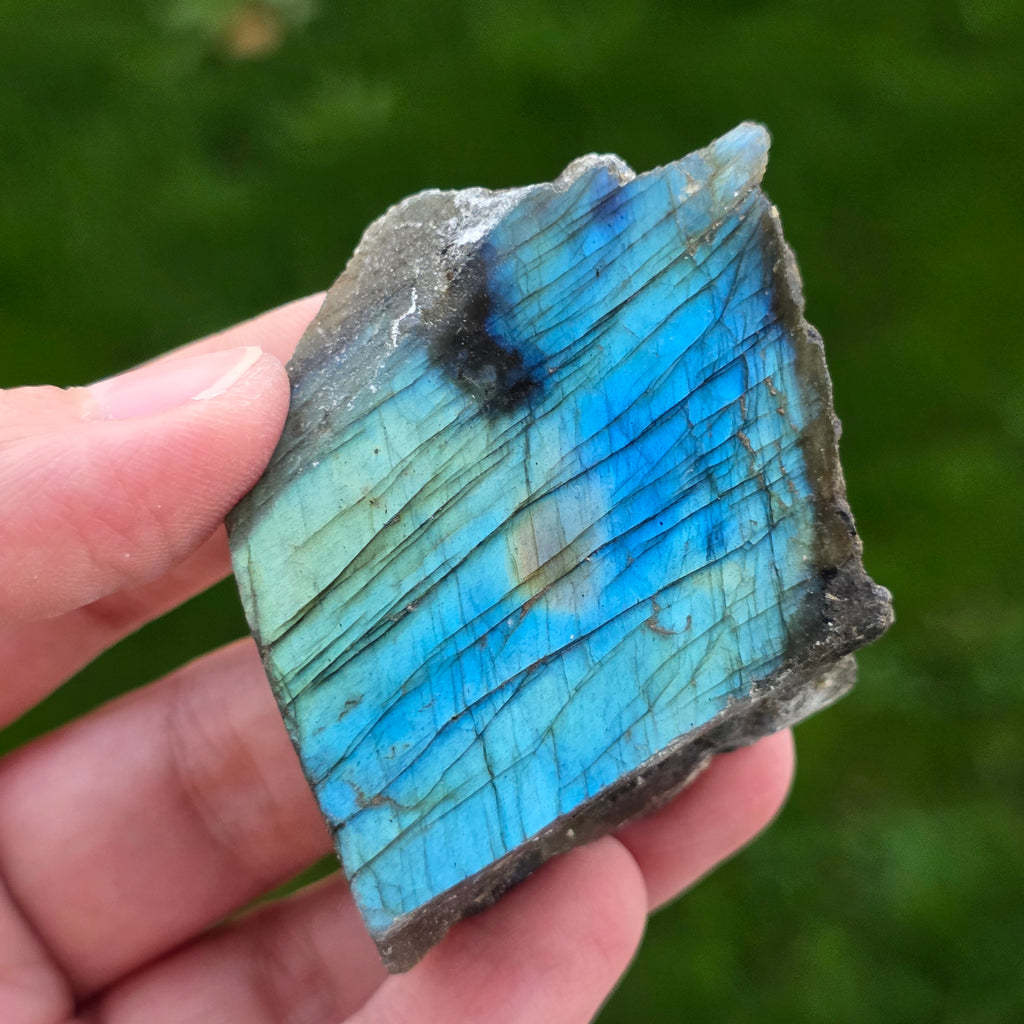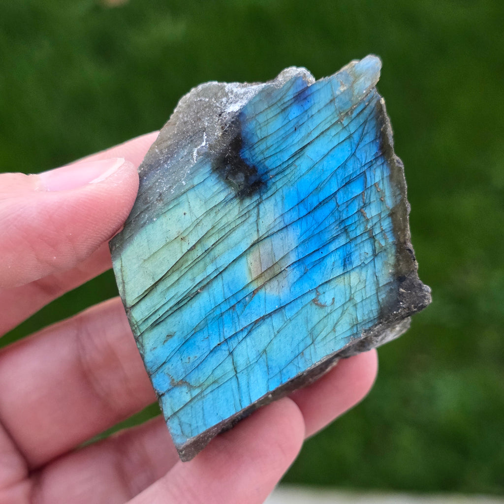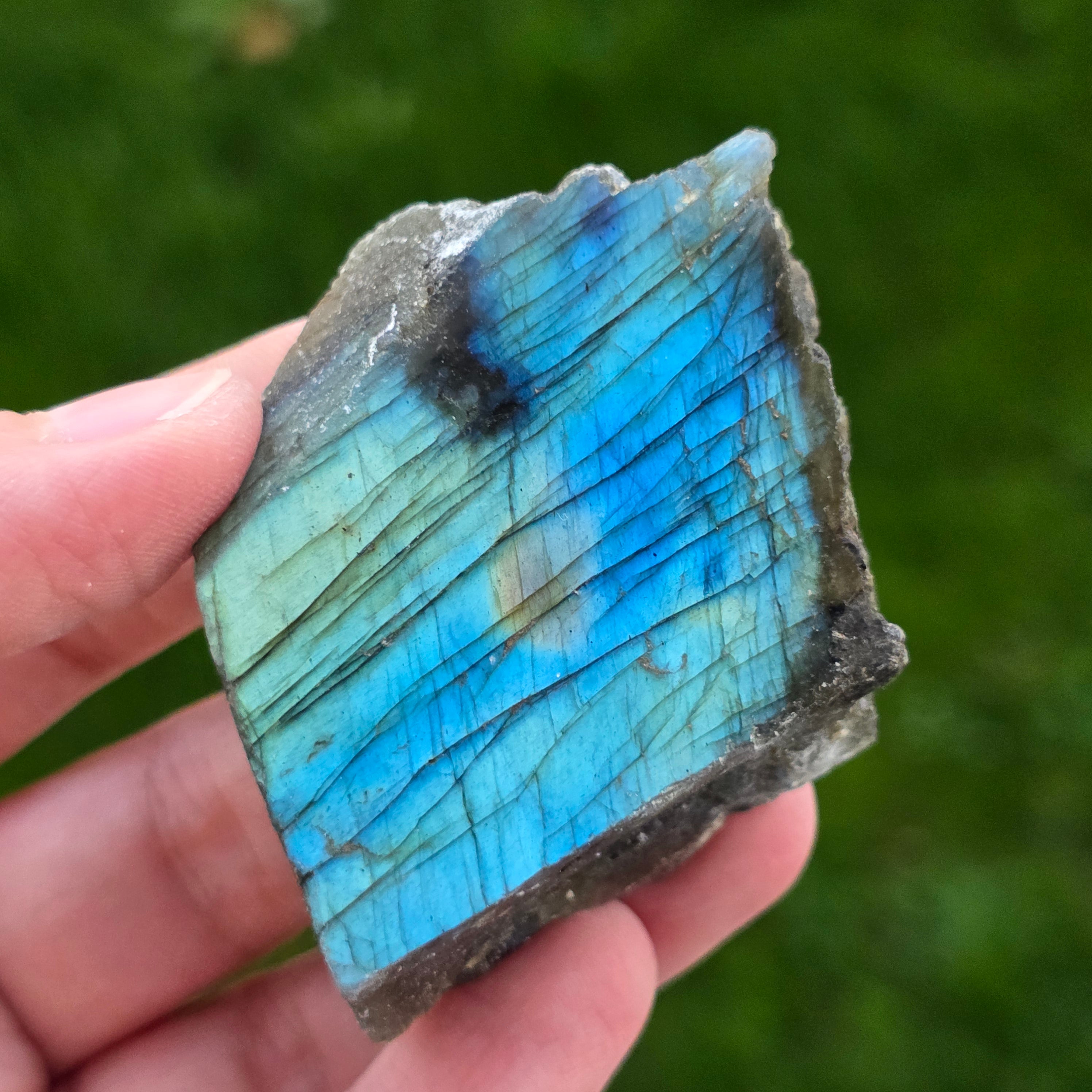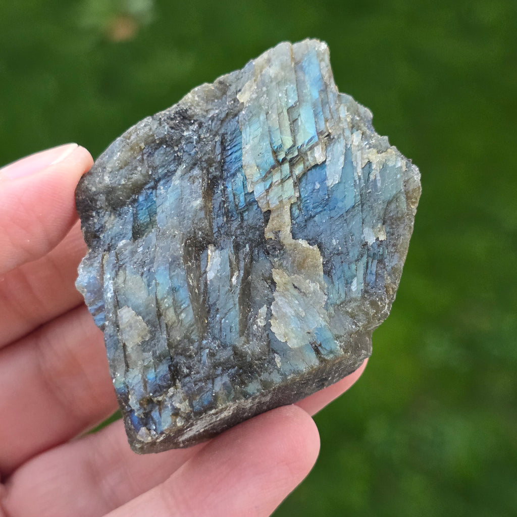 La labradorite est une pierre semi-précieuse avec des jeux de couleurs qui changent en fonction de l’angle de vue.