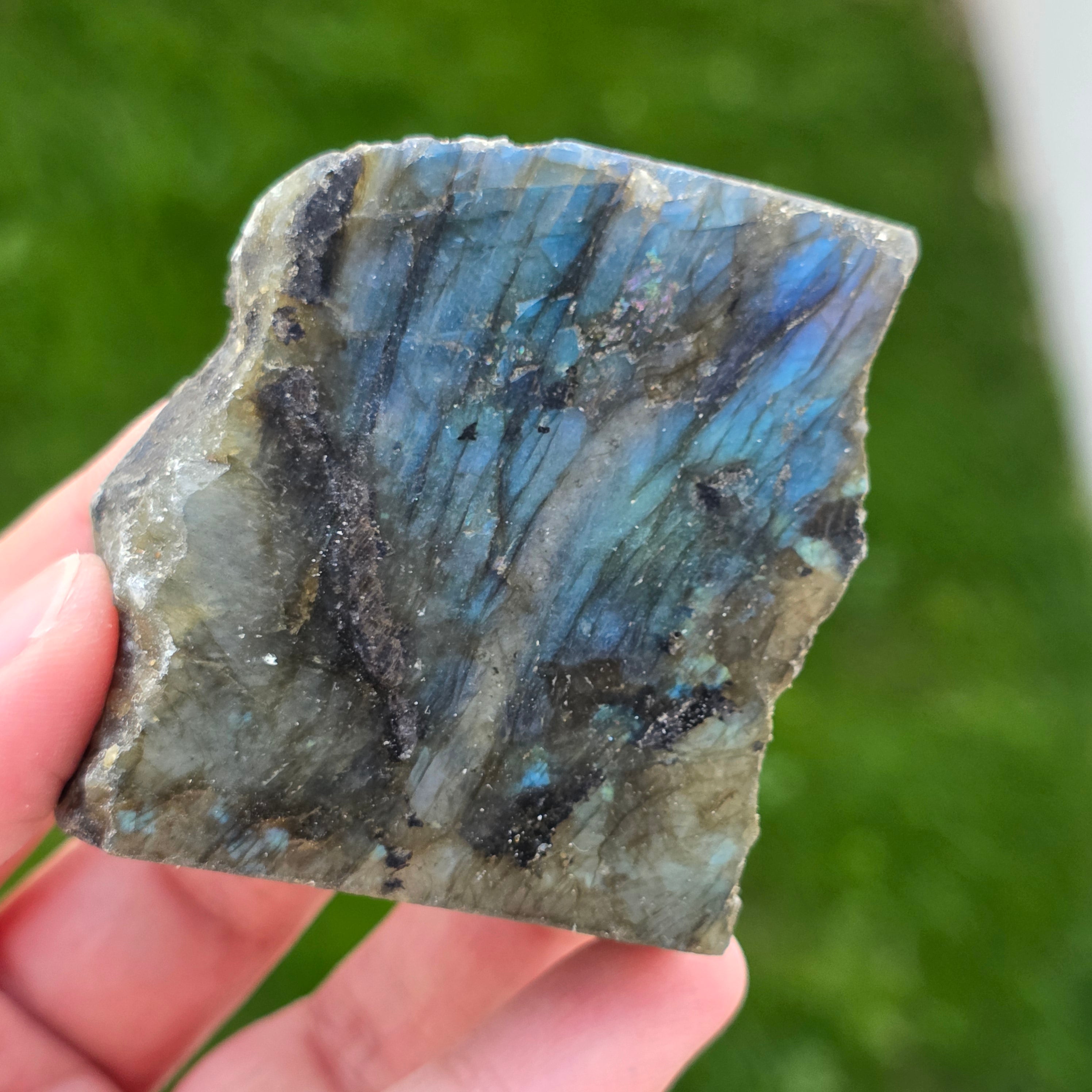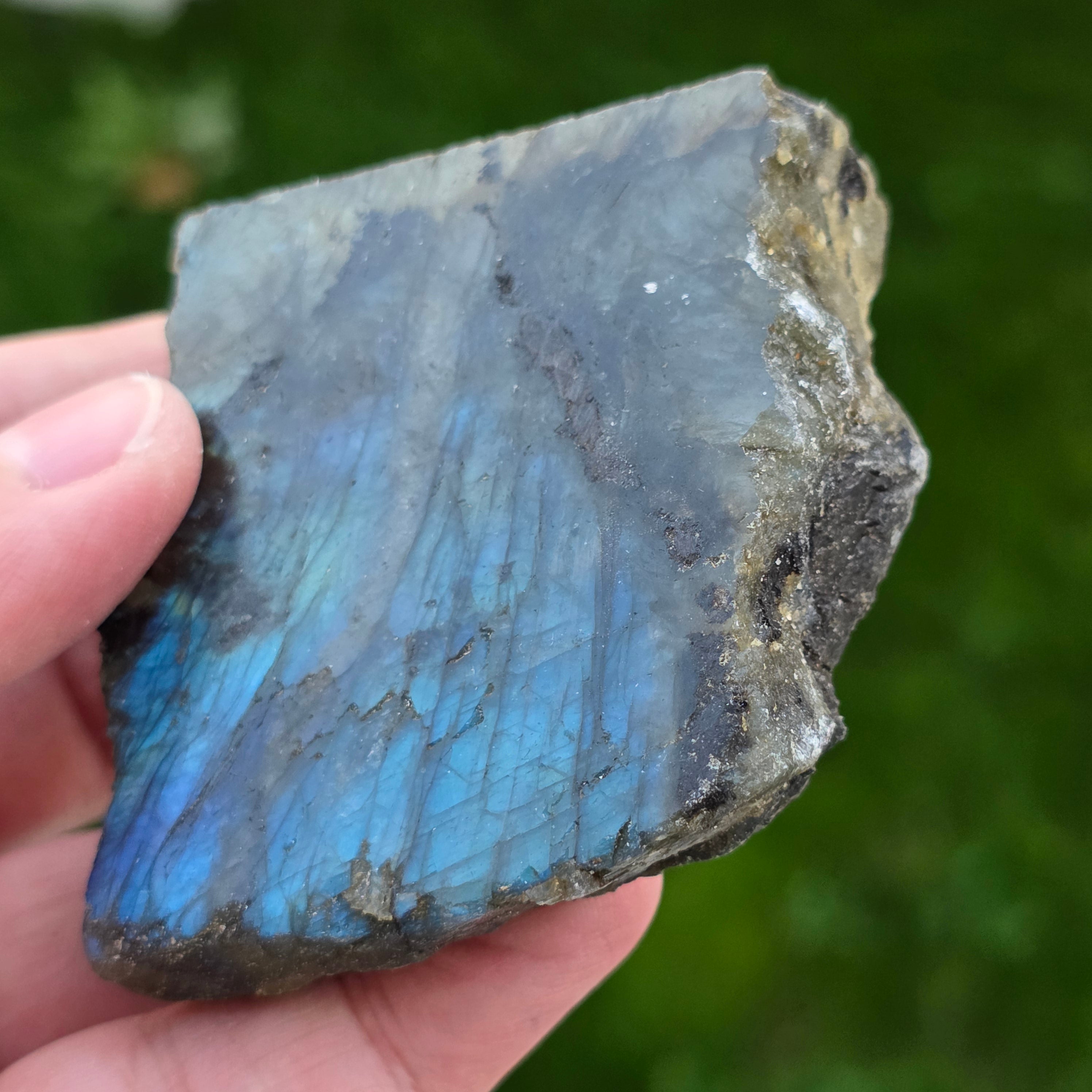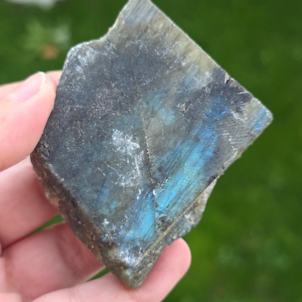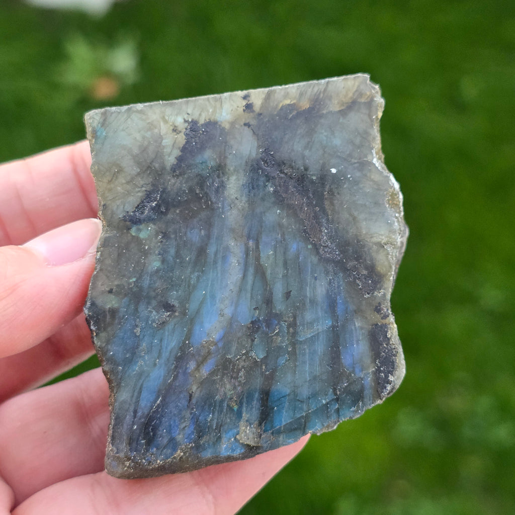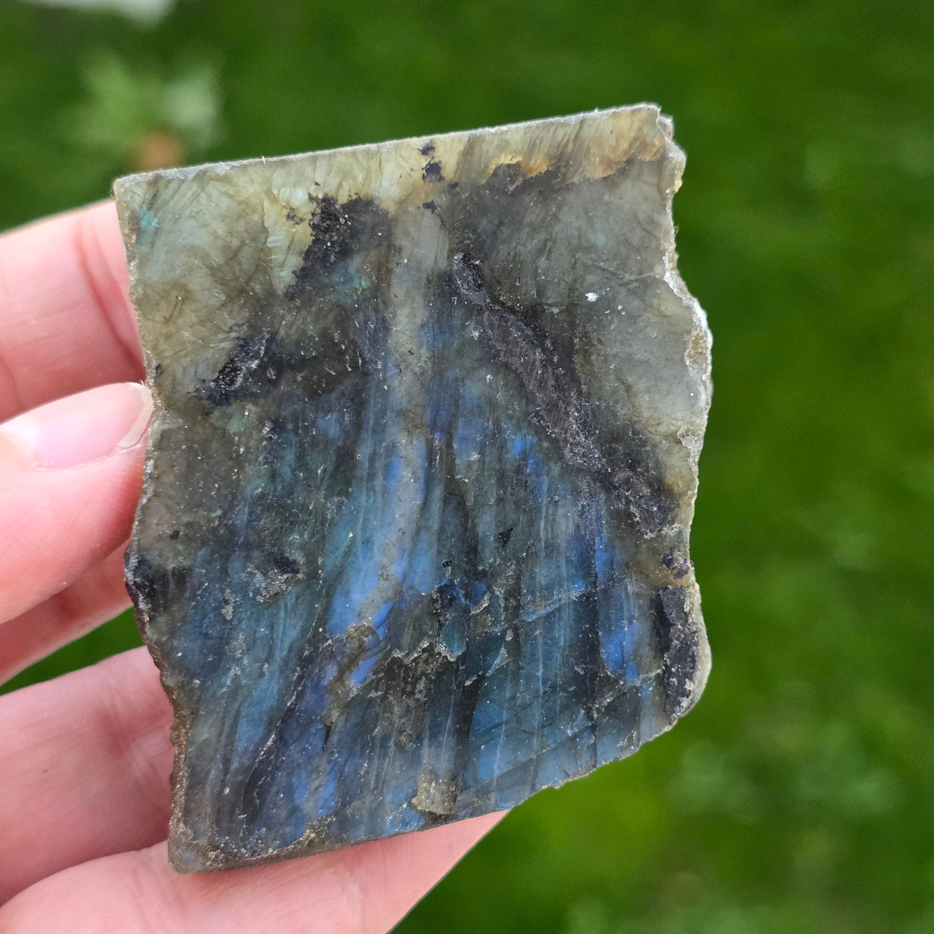 La labradorite est une pierre semi-précieuse avec des jeux de couleurs qui changent en fonction de l’angle de vue.