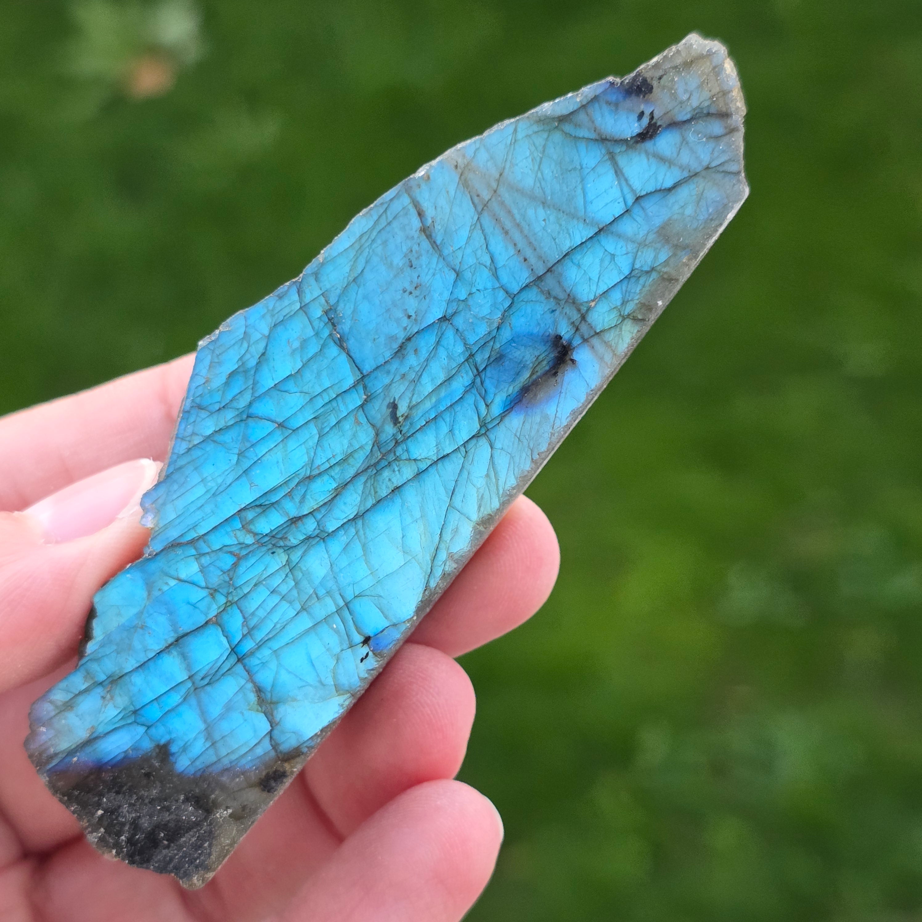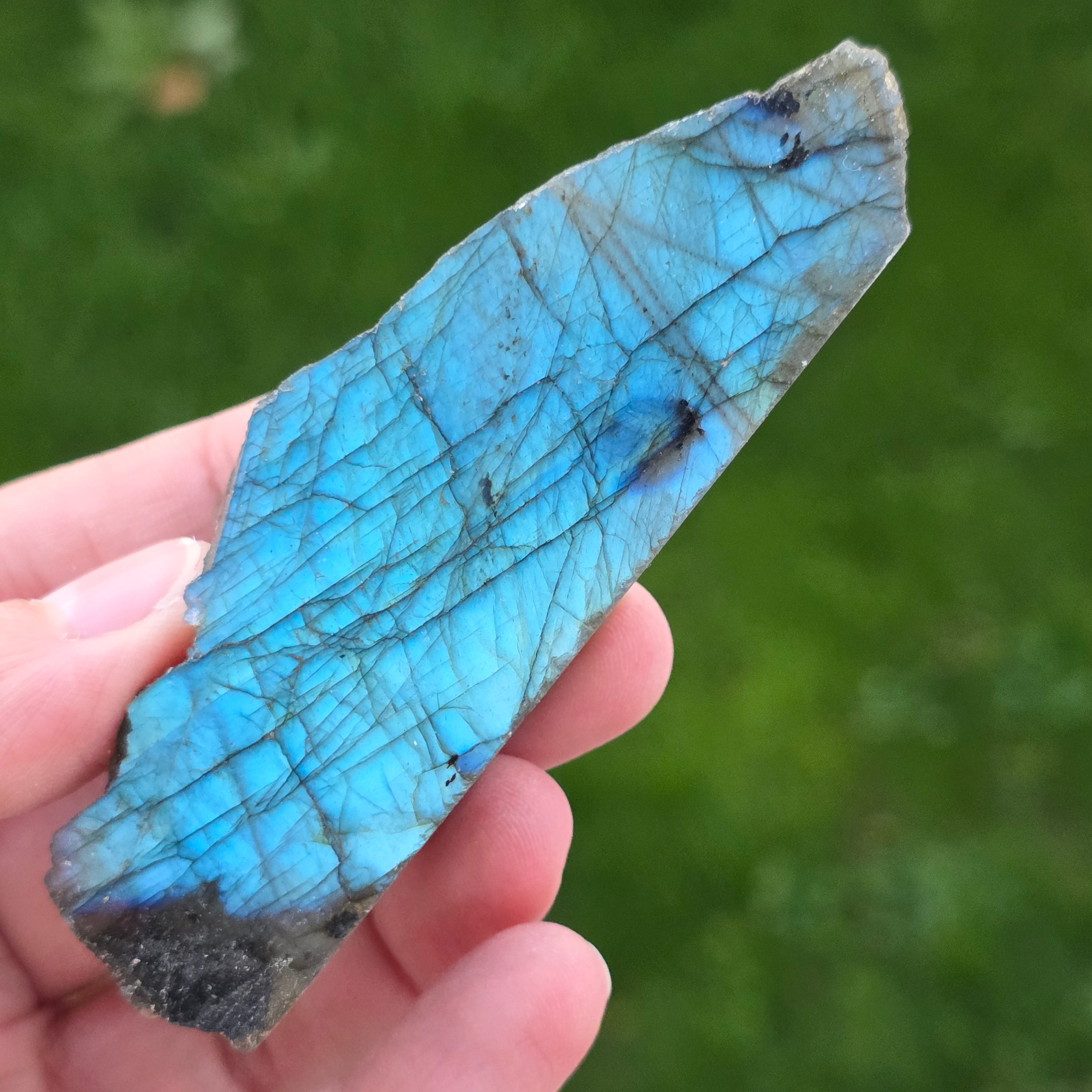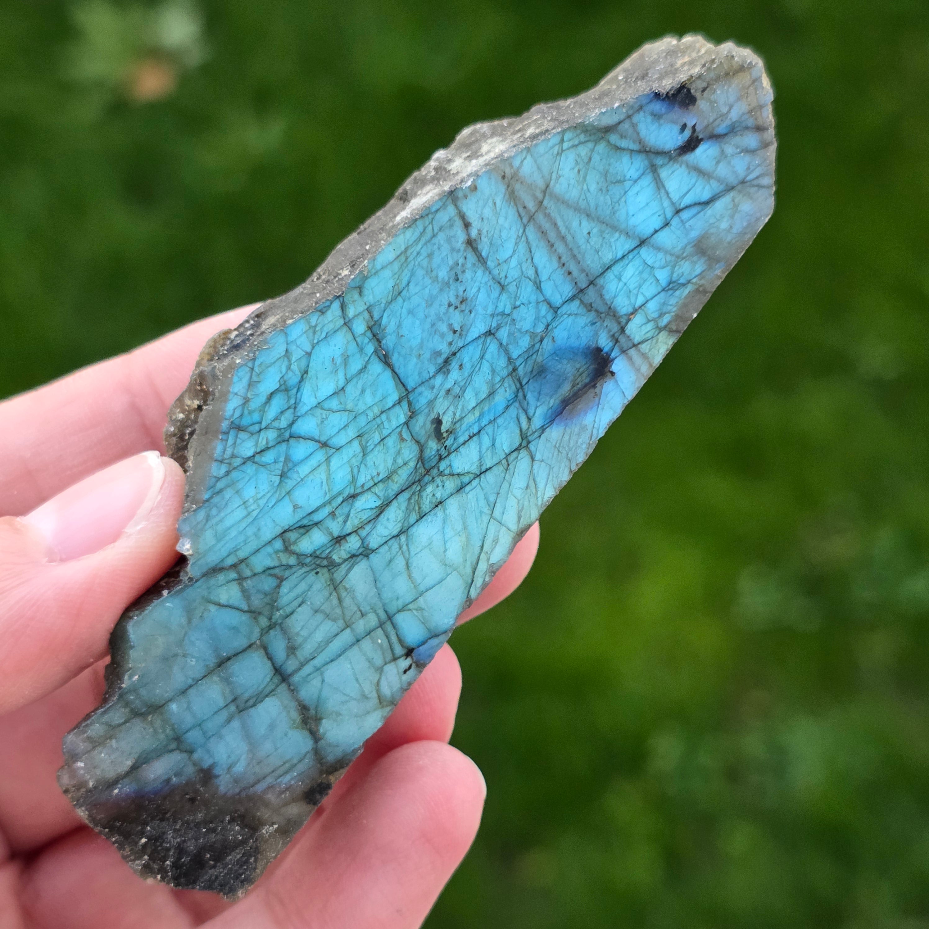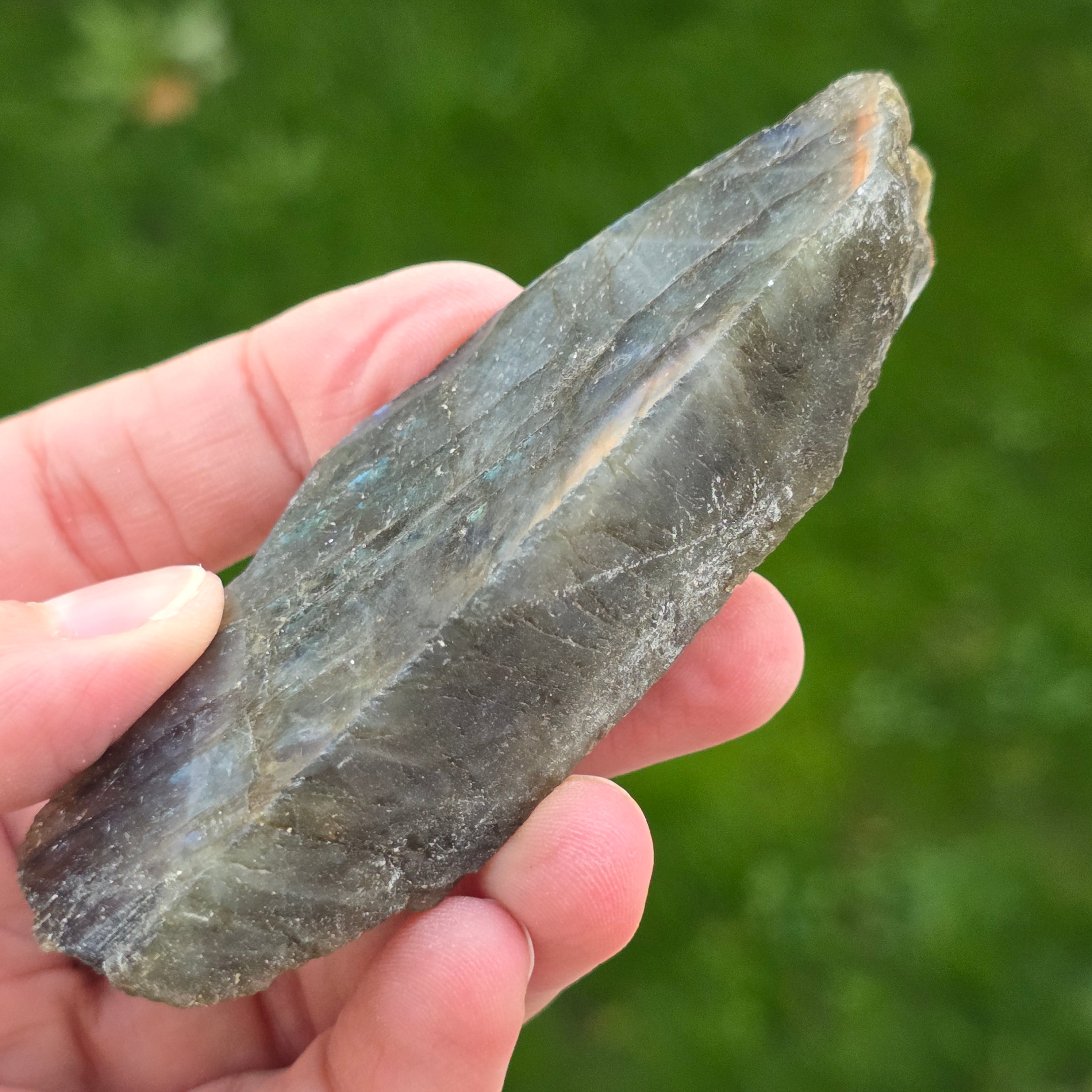 La labradorite est une pierre semi-précieuse avec des jeux de couleurs qui changent en fonction de l’angle de vue.