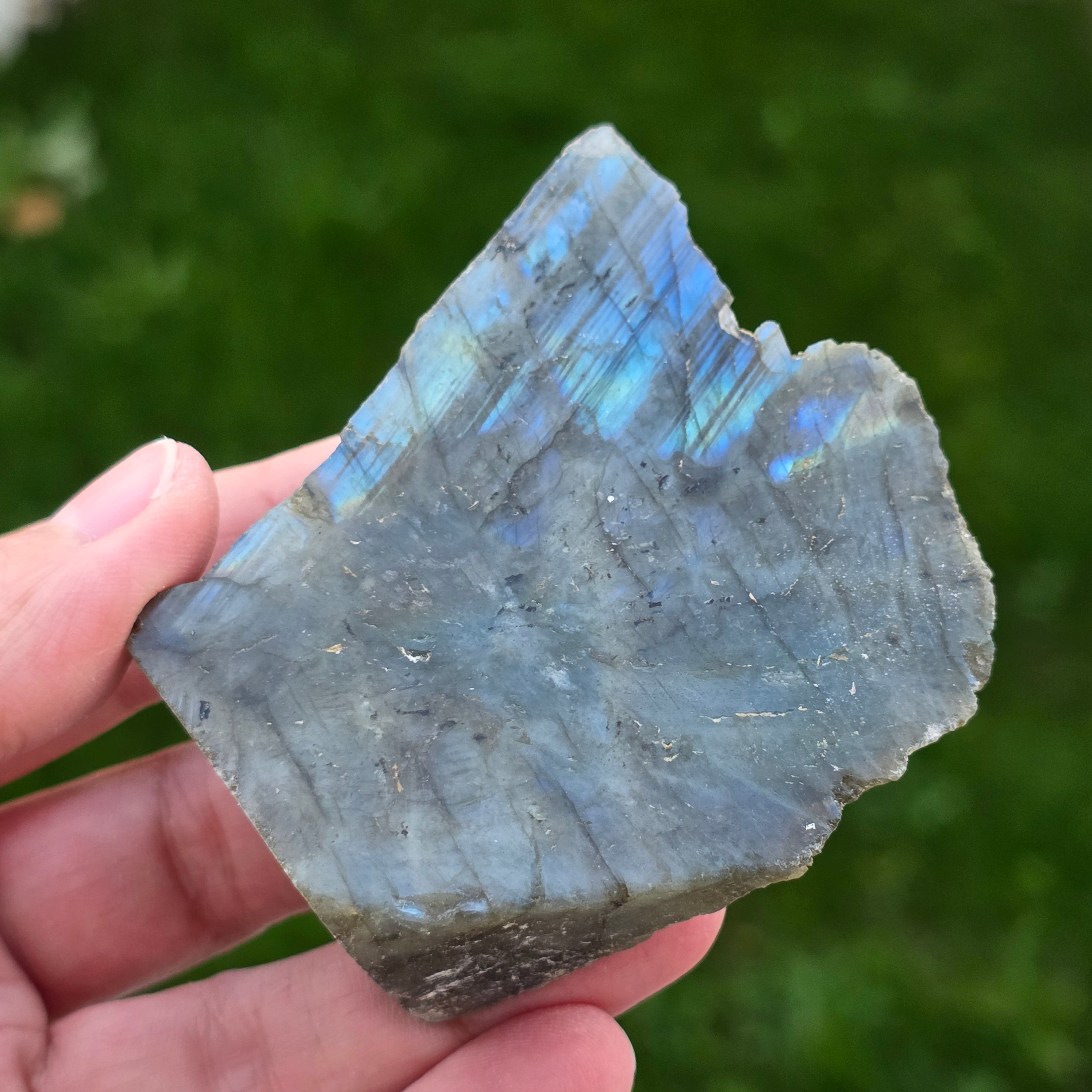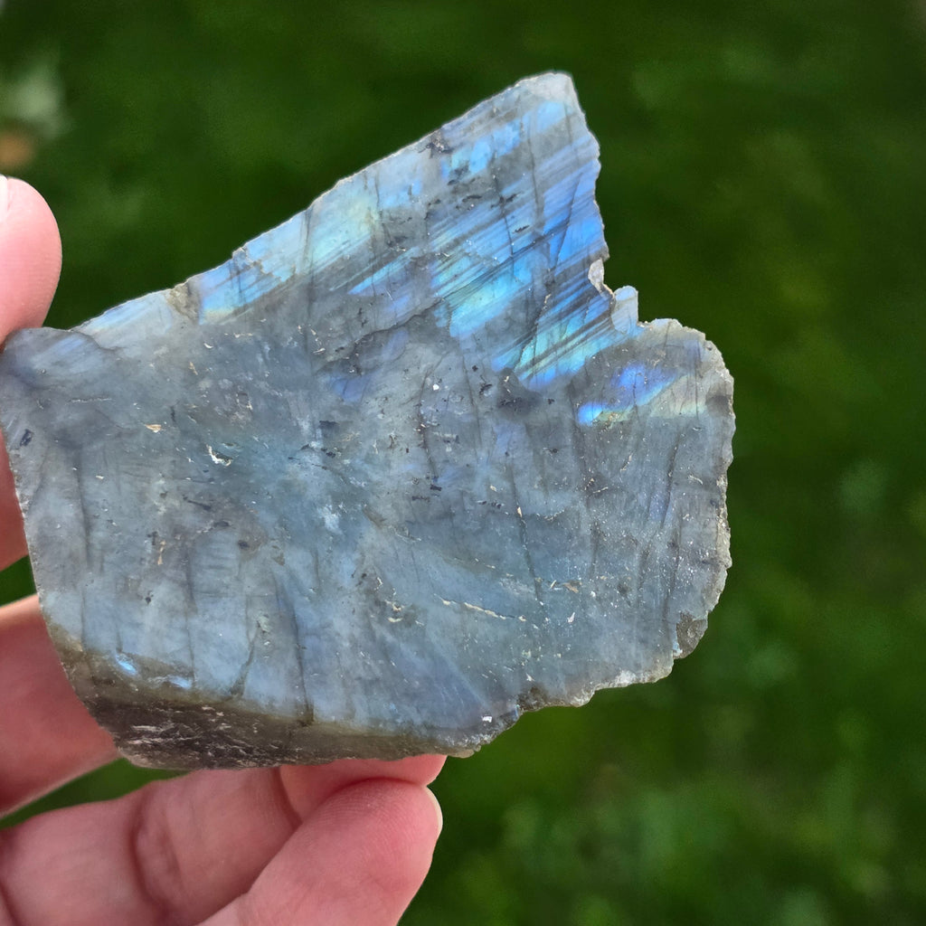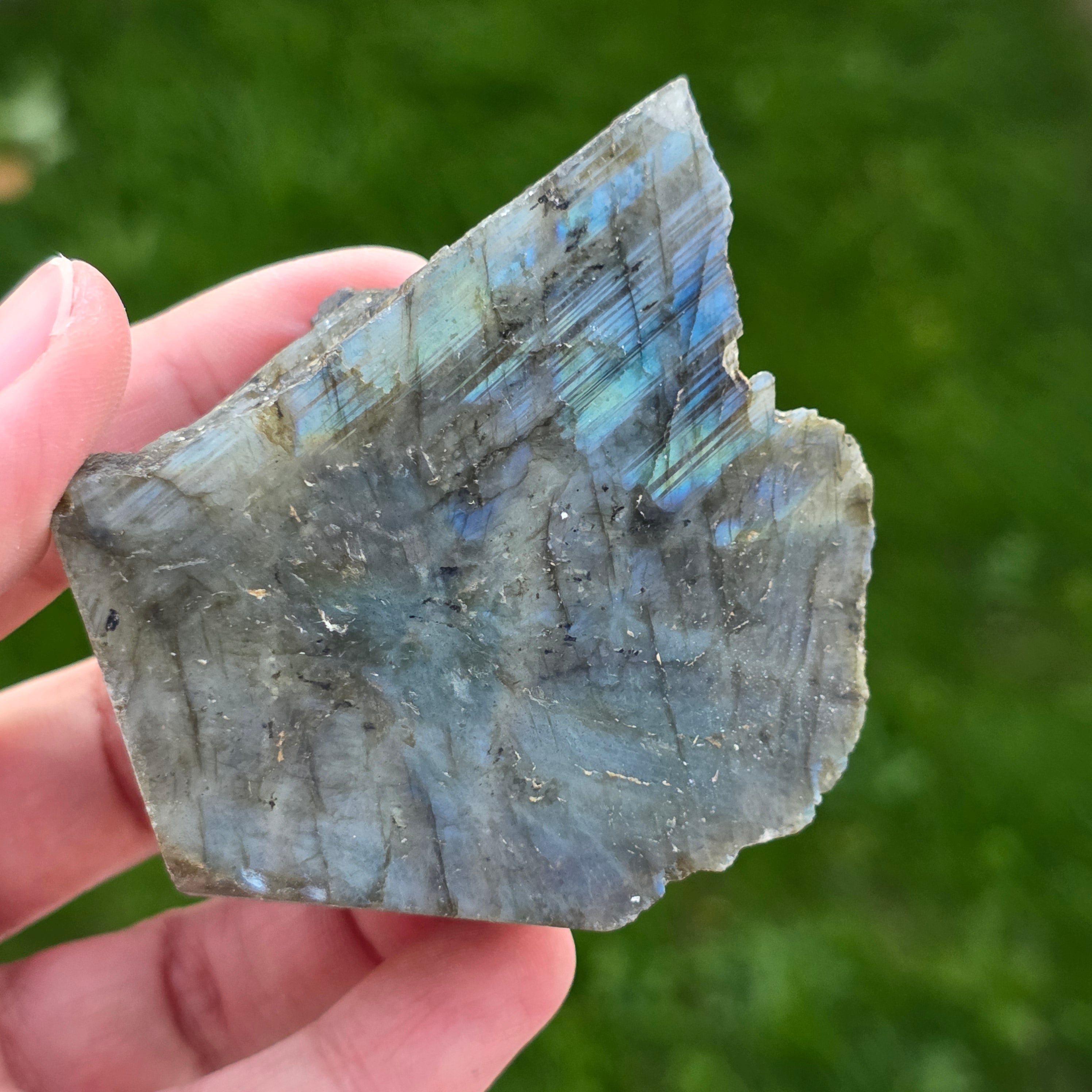La labradorite est une pierre semi-précieuse avec des jeux de couleurs qui changent en fonction de l’angle de vue.