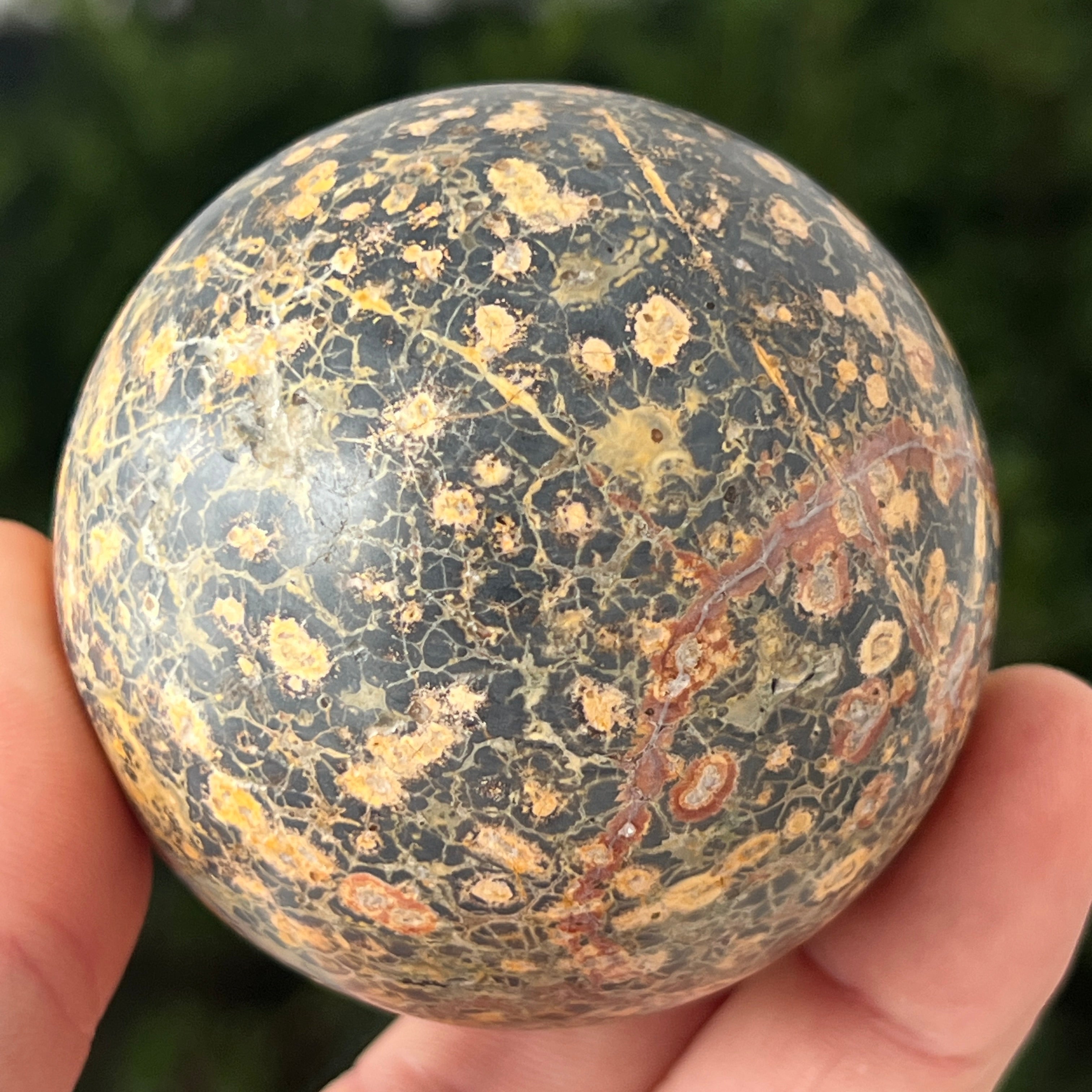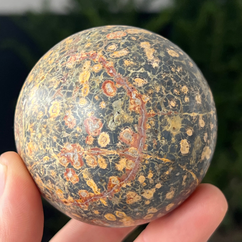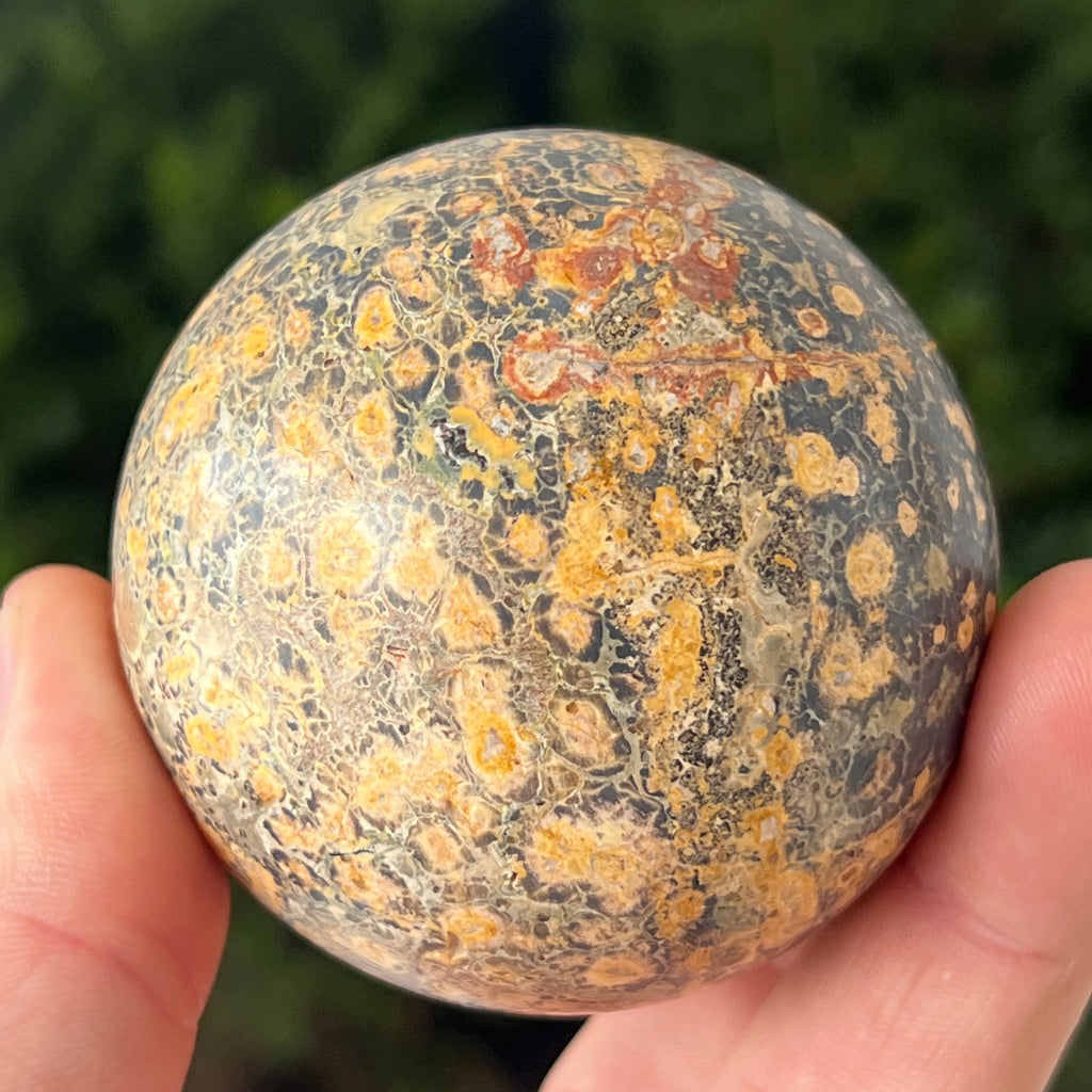 Le léopard en est un type de jaspe avec inclusions de manganèse et oxydes de fer, qui crée des taches brunes, noires ou rouges sur fond jaune, crème ou vert. Sa texture ressemble à la peau d'un animal sauvage, ce qui lui donne un aspect naturel, mais à la fois exotique et attrayant.