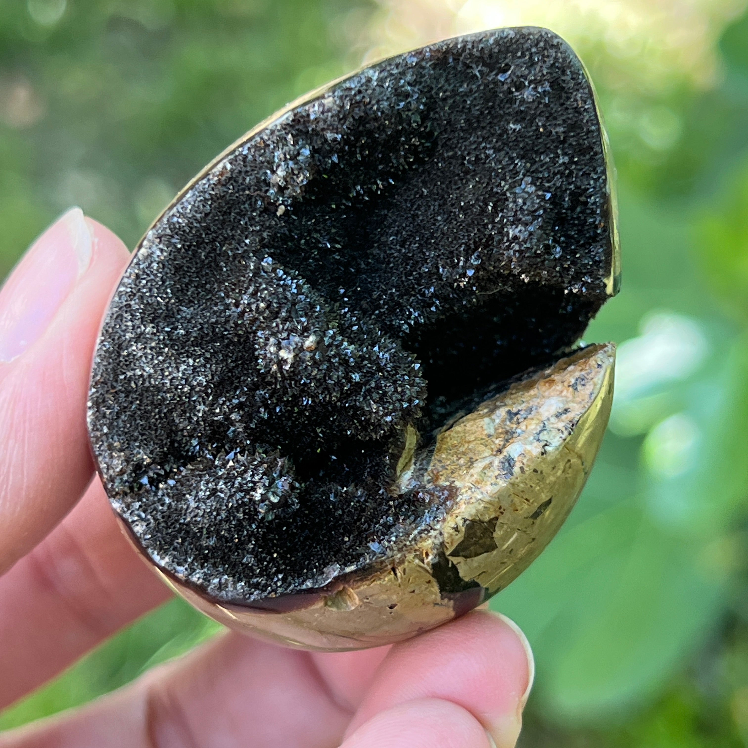 Septaria est considérée comme une pierre qui nous rapproche de l'énergie de la terre, ce qui nous donne la vigueur et la force dont nous avons besoin. Il est utilisé dans les méditations pour nous rappeler qui nous sommes, quels sont nos pouvoirs et pour nous libérer des traumatismes émotionnels.
