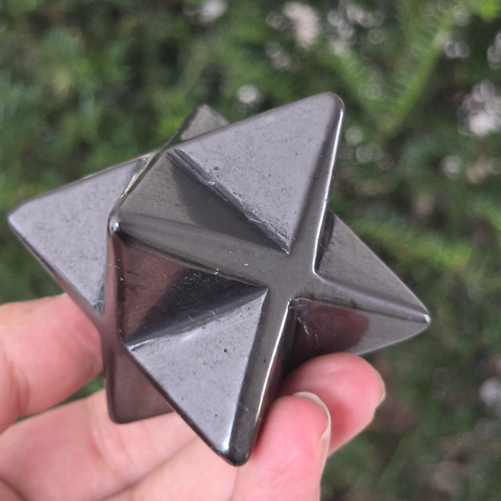 Merkaba din Shungit este o piesă de o forță aparte — o combinație între geometria sacră și energia protectoare a uneia dintre cele mai vechi pietre de pe Pământ. Simbolul Merkaba reprezintă uniunea dintre trup, spirit și lumină, un vehicul energetic care facilitează expansiunea conștiinței și protecția subtilă.