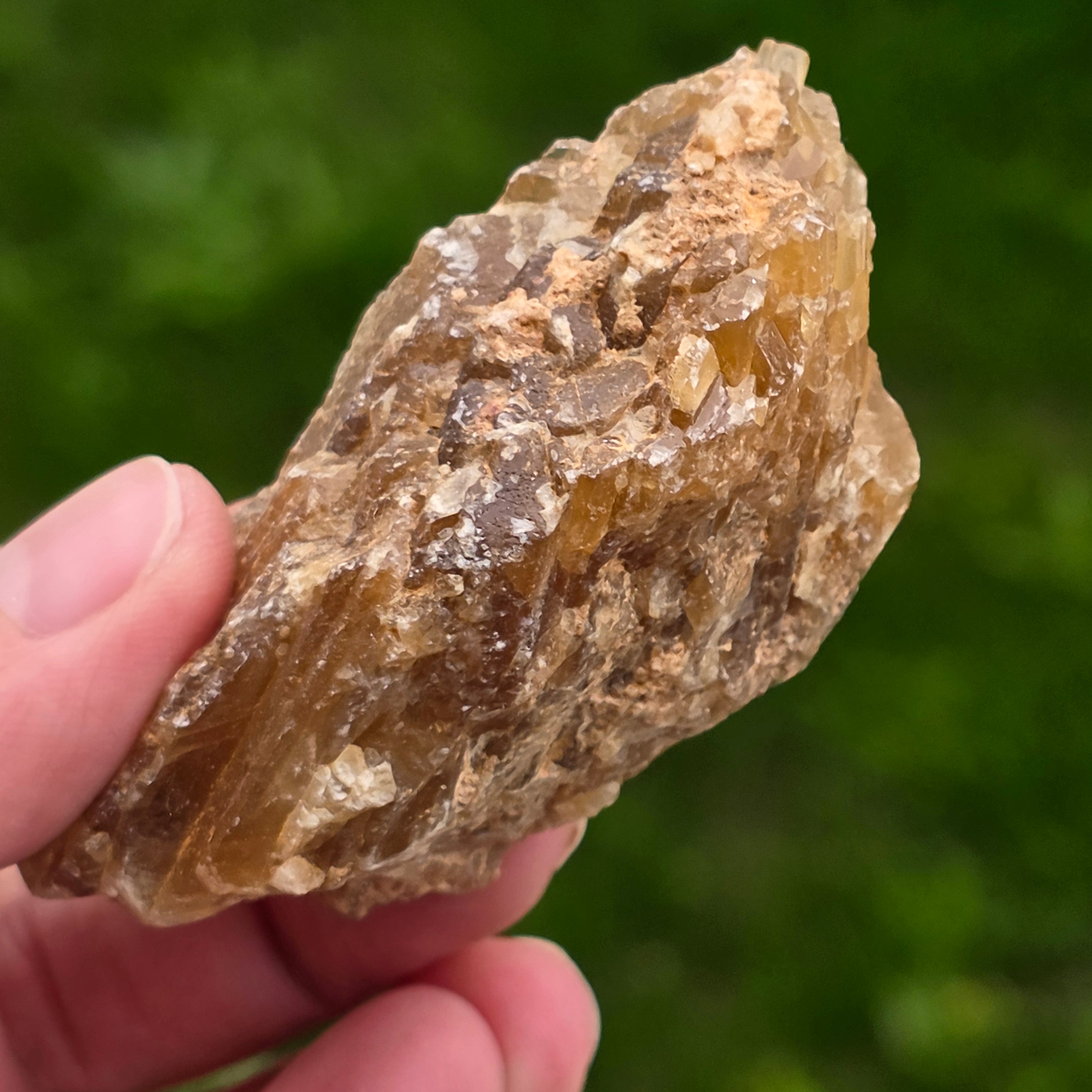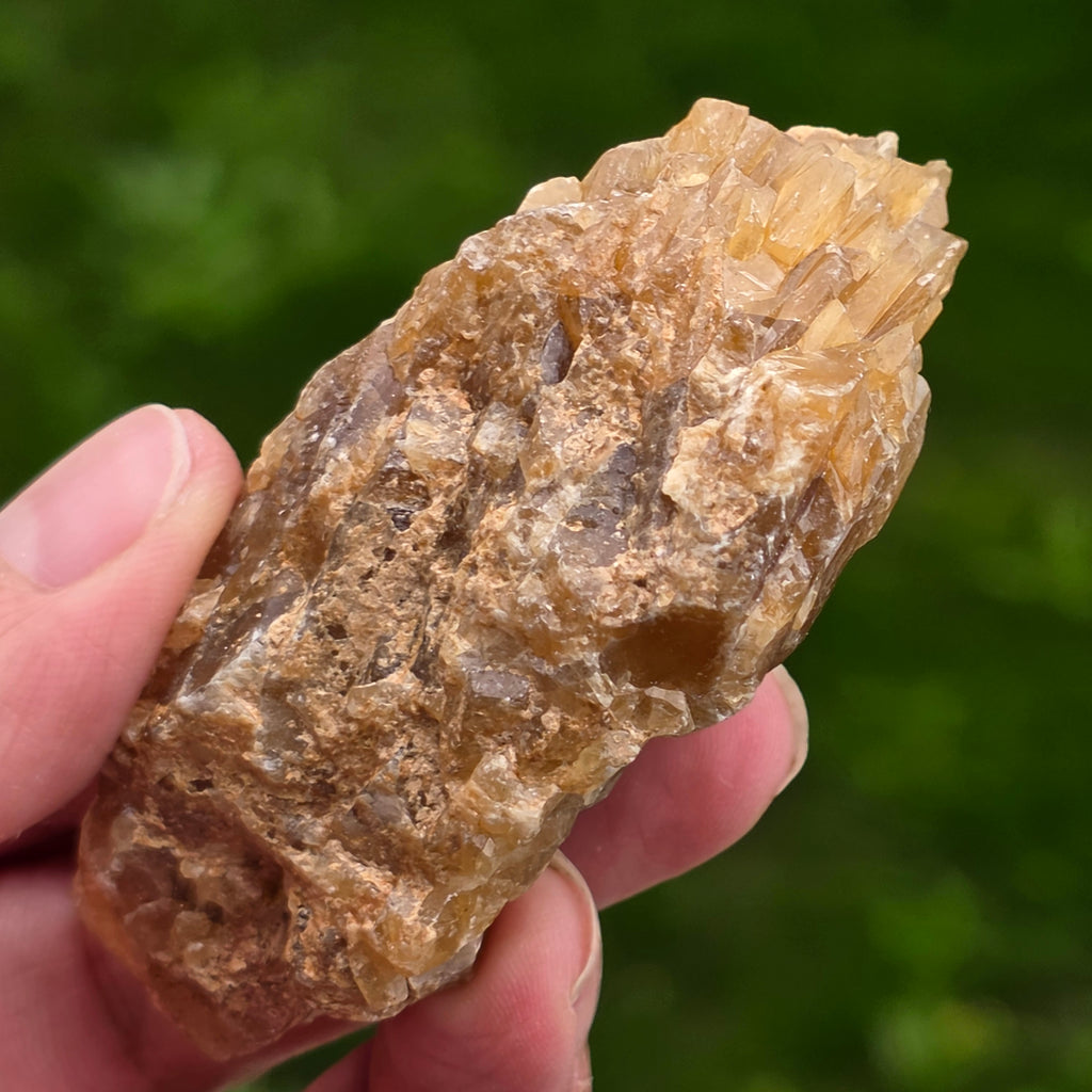 L'aragonite au miel de Namibie est une variété d'aragonite aux nuances chaudes de jaune, d'orange et de brun clair semblables au miel, d'où son nom. L'aragonite est un minéral de la famille des carbonates, ayant une structure cristalline orthorhombique, chimiquement similaire à la calcite, mais différente en termes de cristallisation.
