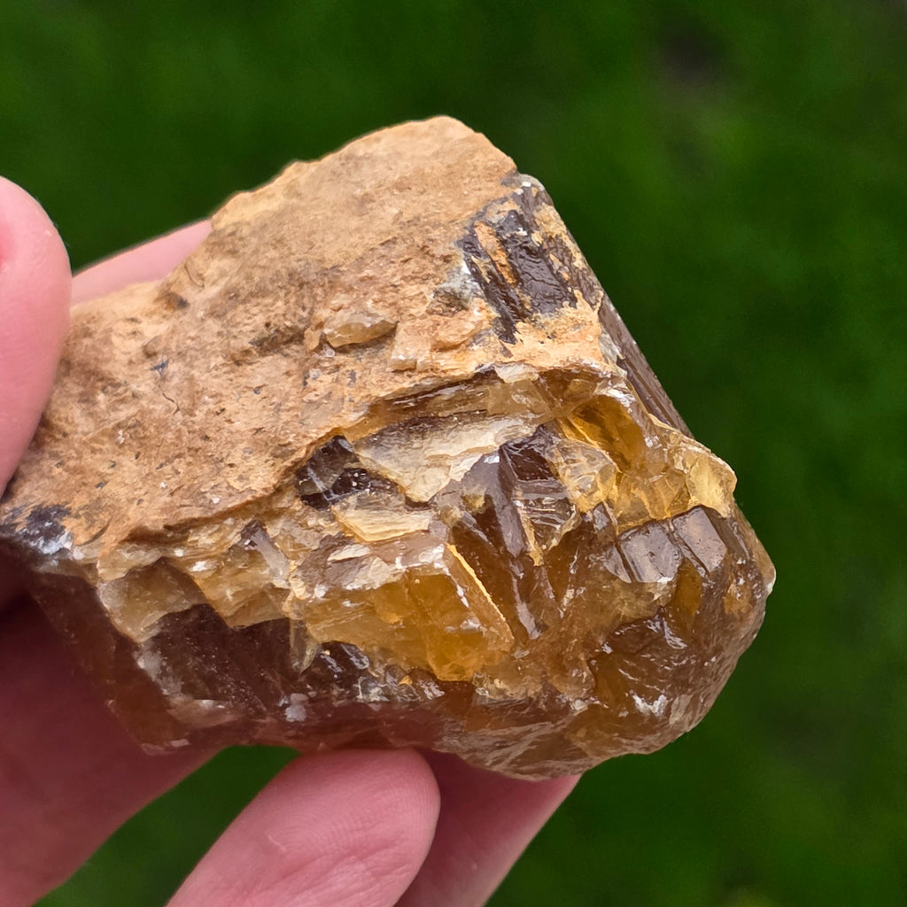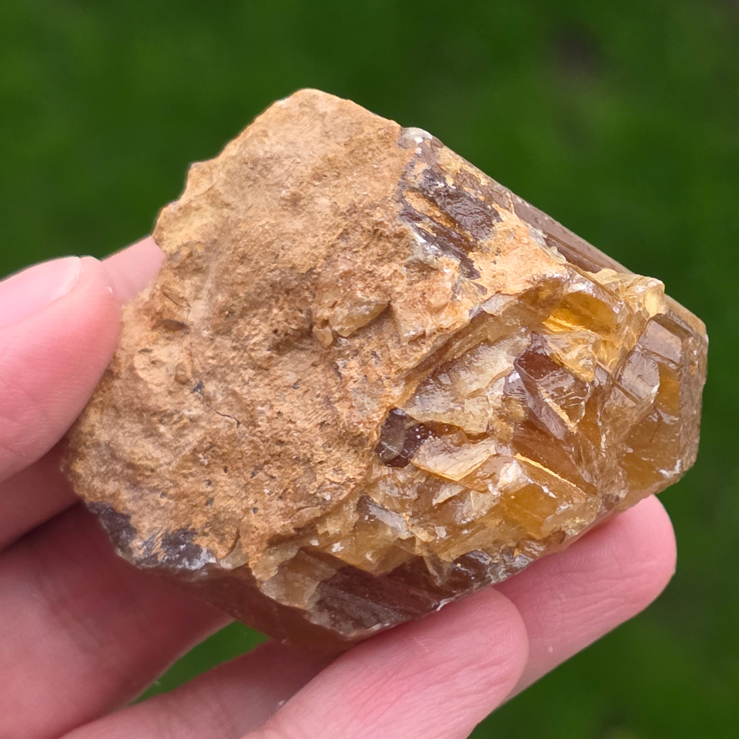 L'aragonite au miel de Namibie est une variété d'aragonite aux nuances chaudes de jaune, d'orange et de brun clair semblables au miel, d'où son nom. L'aragonite est un minéral de la famille des carbonates, ayant une structure cristalline orthorhombique, chimiquement similaire à la calcite, mais différente en termes de cristallisation.