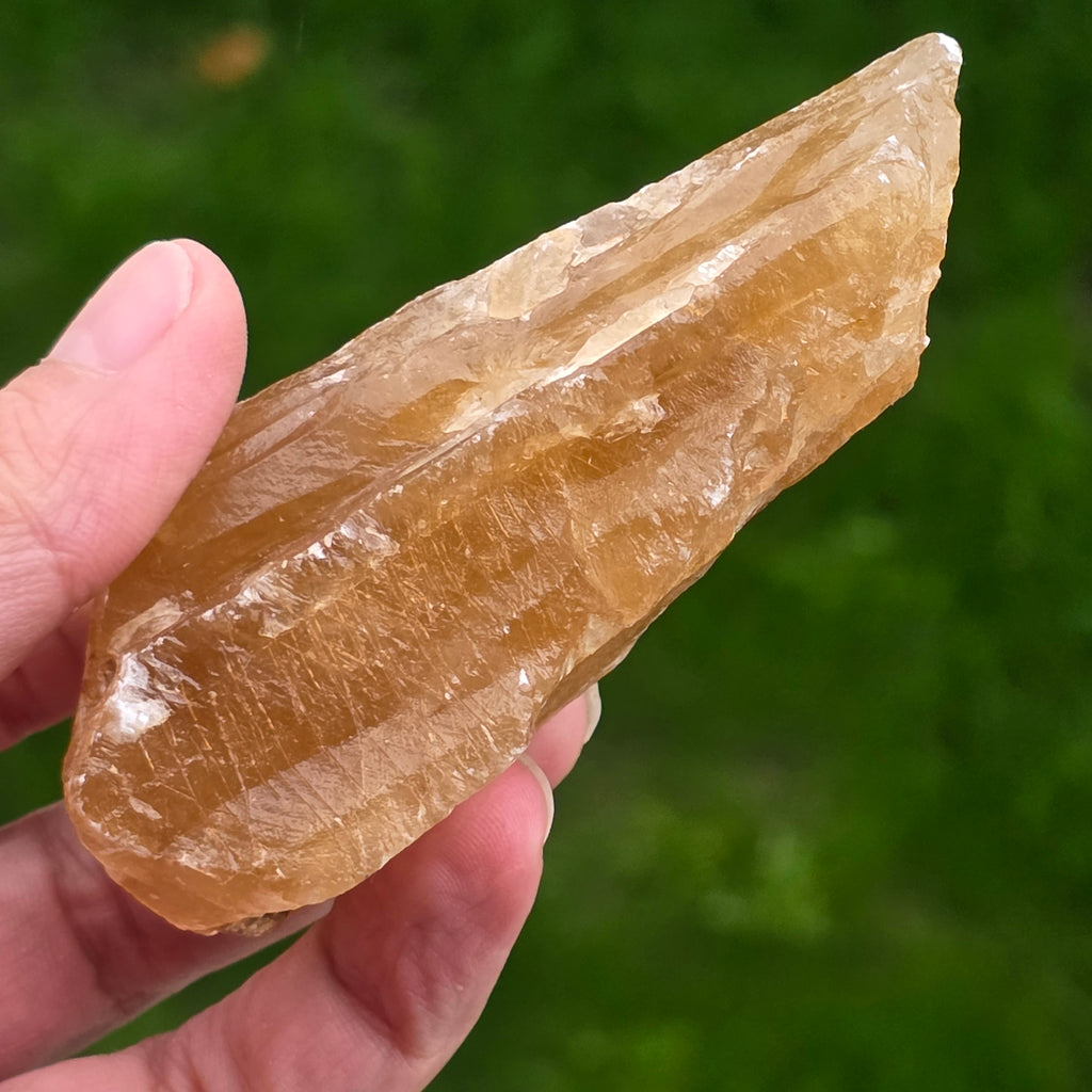 L’aragonite au miel de Namibie est une variété d’aragonite aux nuances chaudes de jaune, d’orange et de brun clair, semblable au miel, d’où son nom. L’aragonite est un minéral de la famille des carbonates, ayant une structure cristalline orthorhombique, étant chimiquement similaire à la calcite, mais différent par cristallisation.
