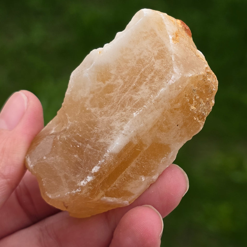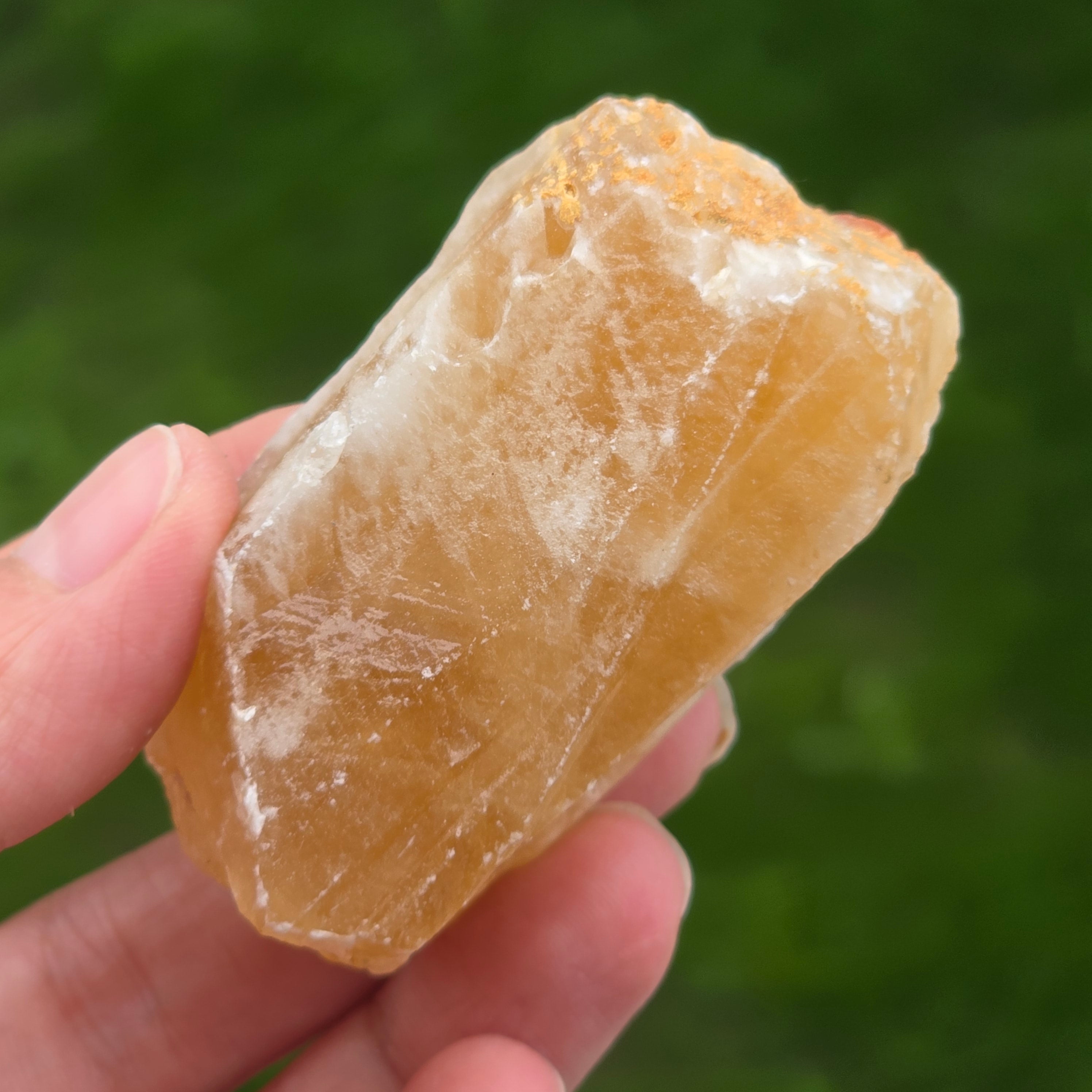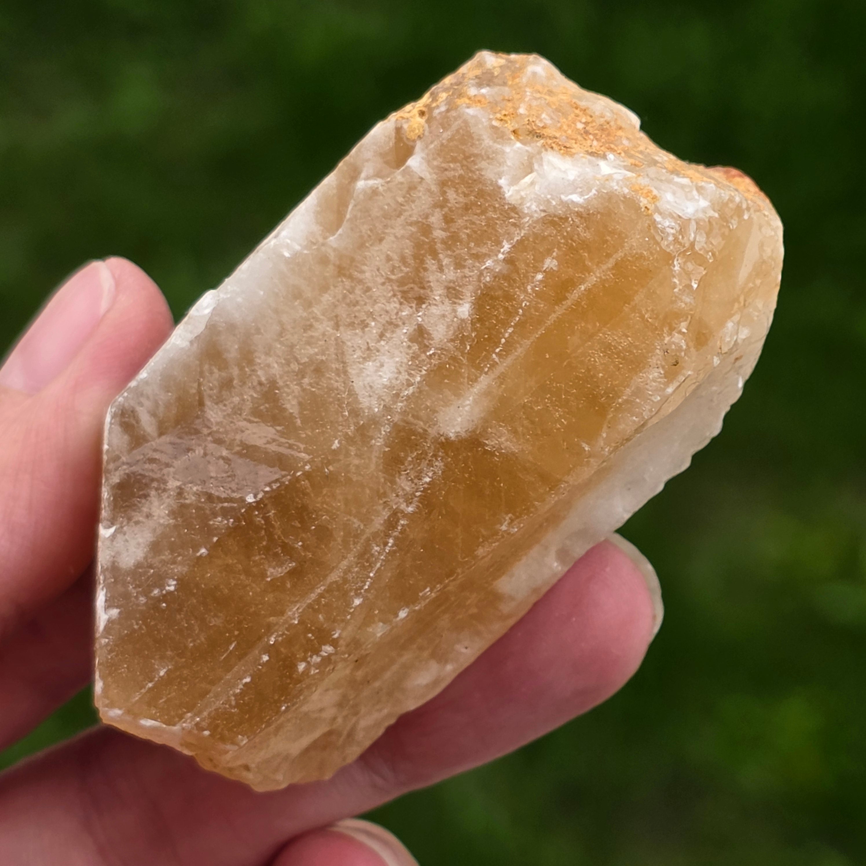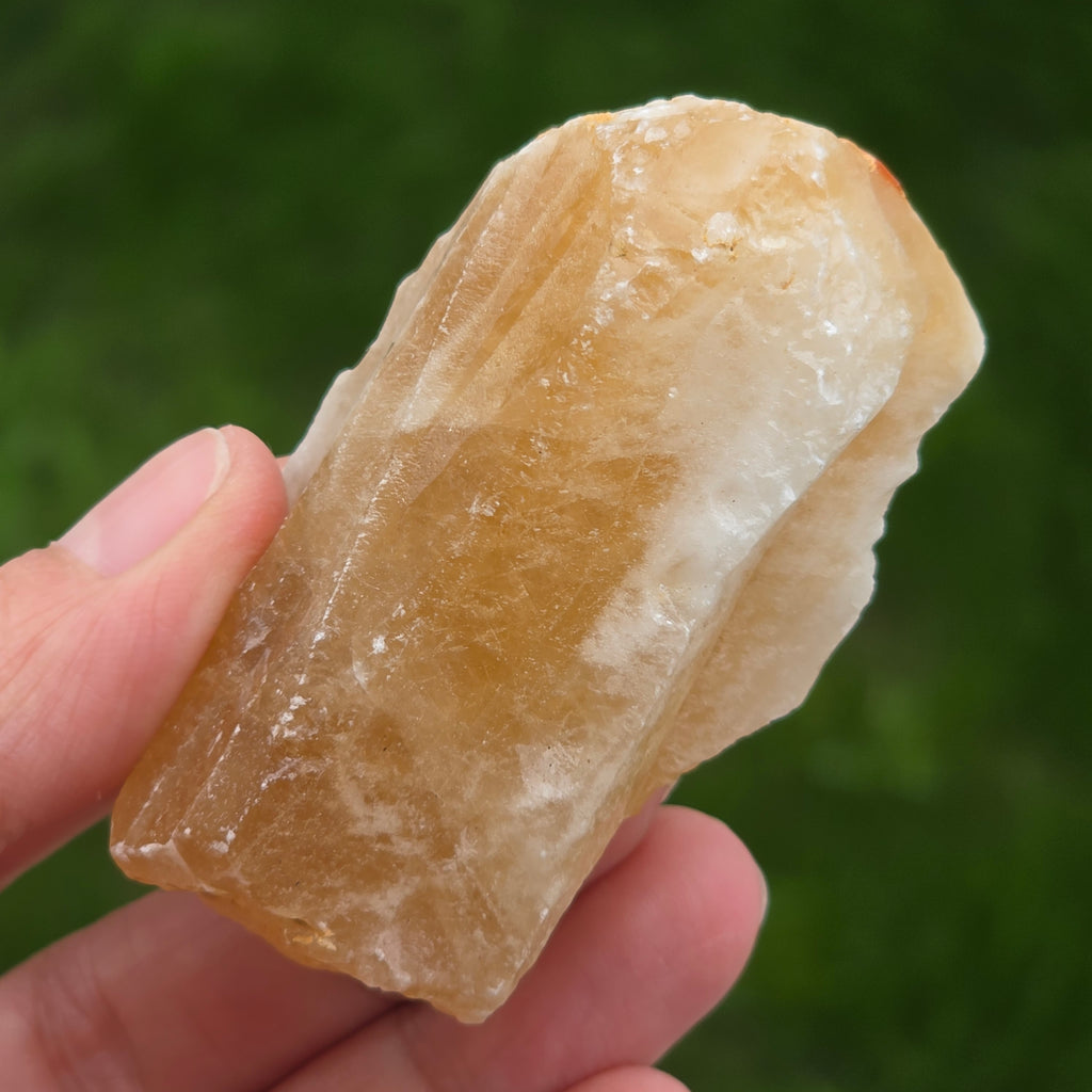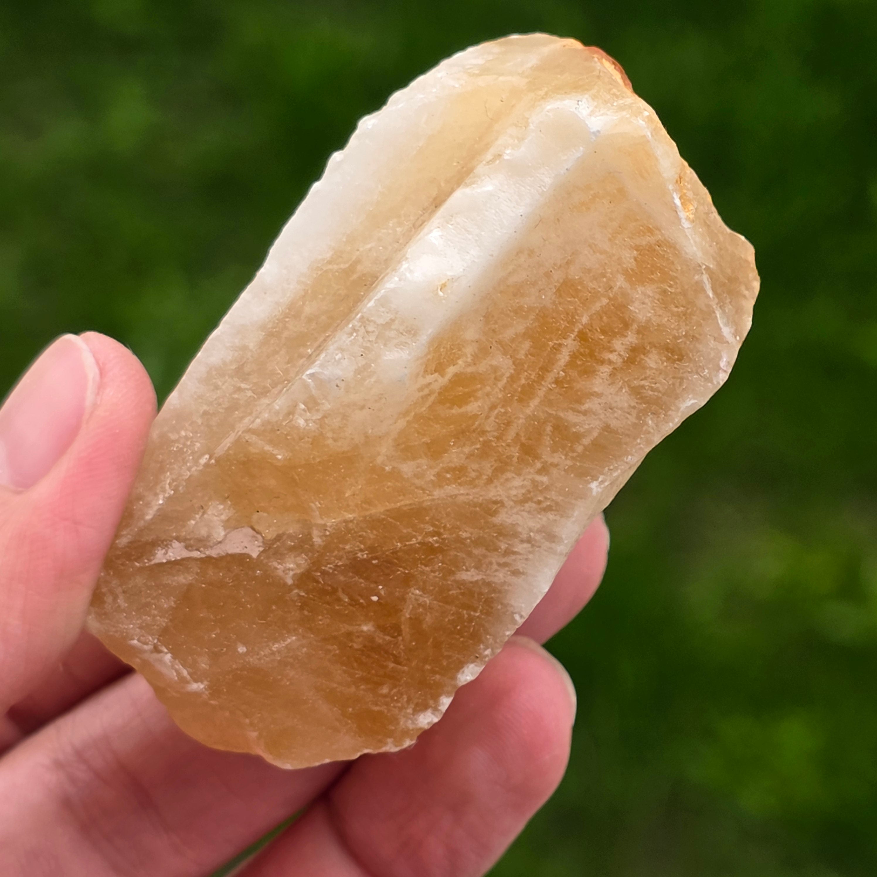 L'aragonite au miel de Namibie est une variété d'aragonite aux nuances chaudes de jaune, d'orange et de brun clair semblables au miel, d'où son nom. L'aragonite est un minéral de la famille des carbonates, ayant une structure cristalline orthorhombique, chimiquement similaire à la calcite, mais différente en termes de cristallisation.